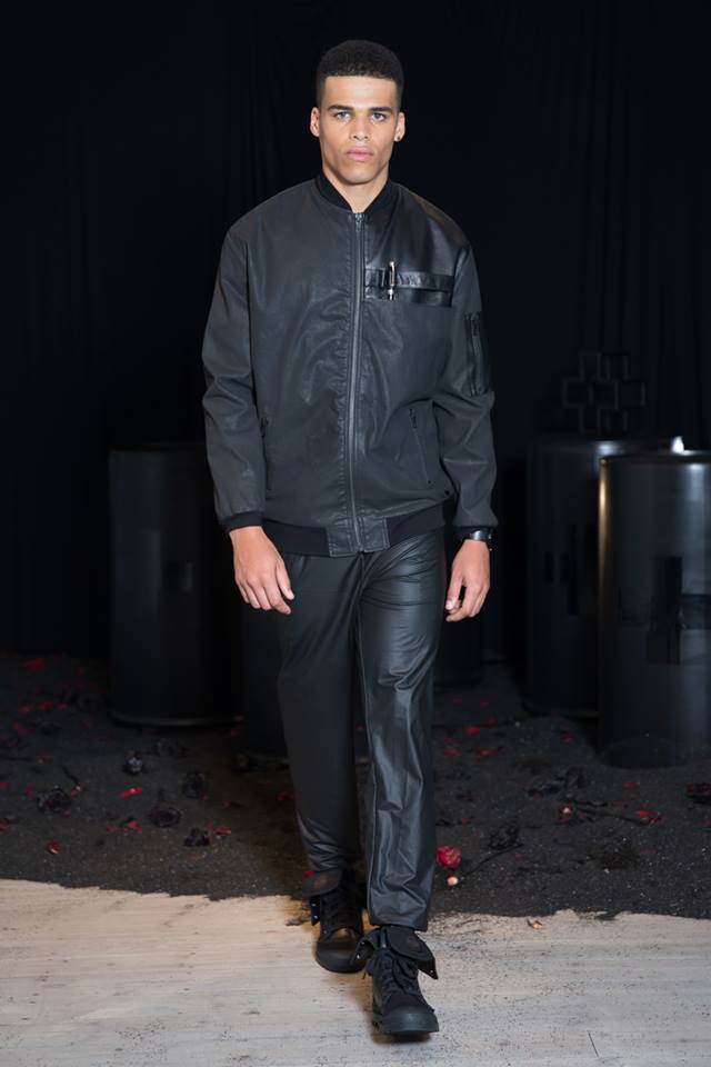 Innovative tech and sustainable fabrics include rubber coated jersey, lamb nappa leather, hand woven organic denim, smooth modal and organic cotton.