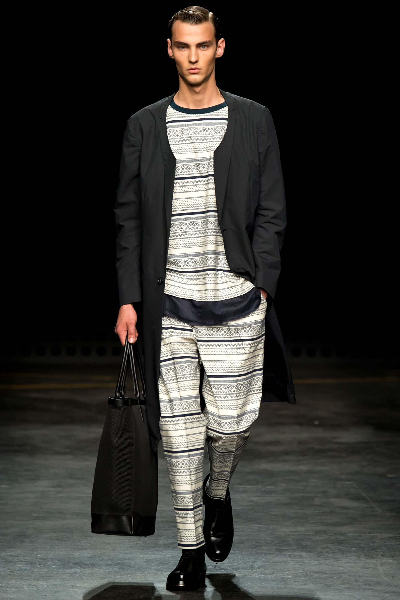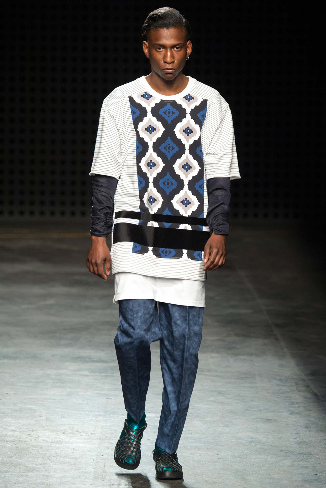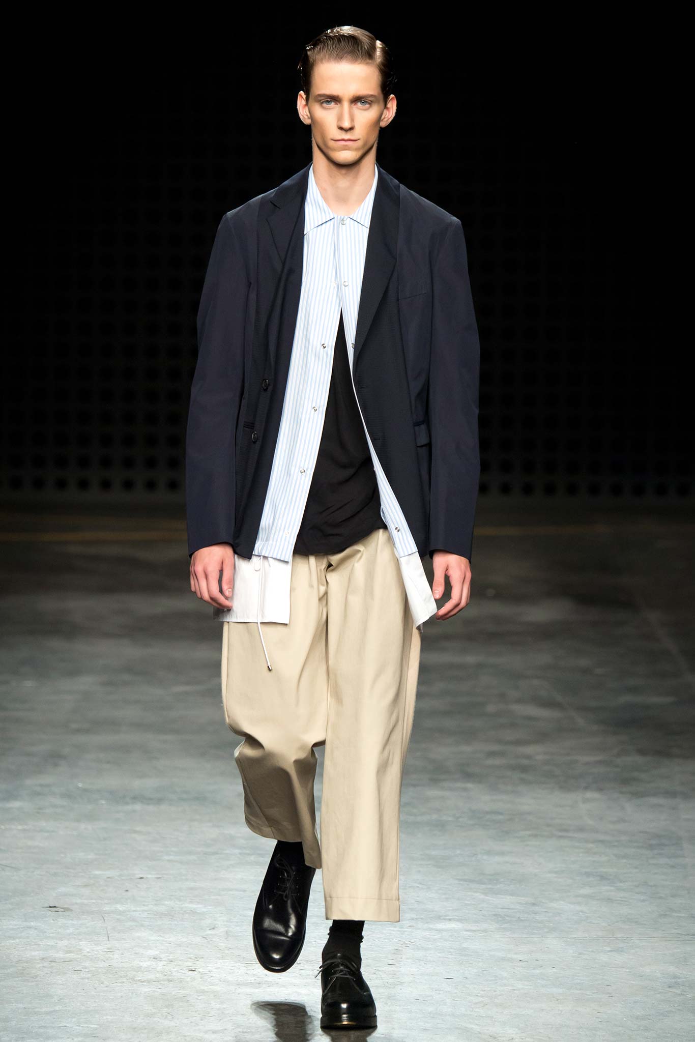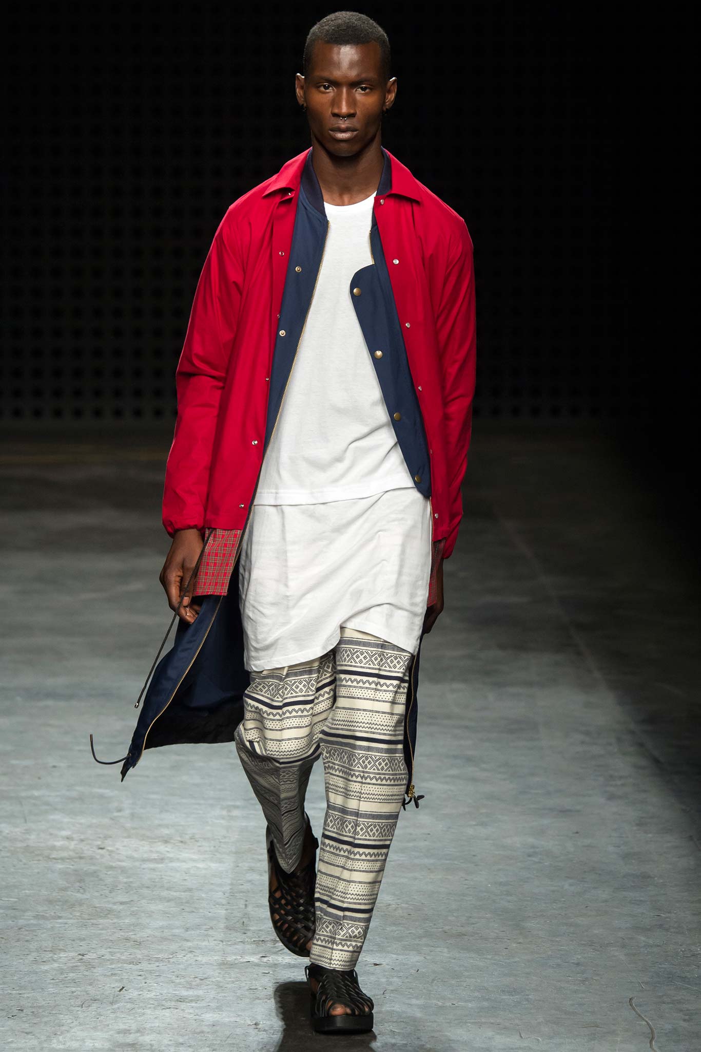 The title of father-and-son team Joe and Charlie Casely-Hayford was nicely apposite for London menswear’s themes as a whole: OF INDETERMINATE ORIGIN. That’s not to say you couldn’t have picked apart all the disparate threads of this, or any other of this week’s shows:Â Nineties hip-hop, Sixties Mod discipline, rave-era Ibiza, Northern Soul, and all the other reference points that have clung round every collection. It’s that all those things have become so melded together, so fused into something familiar yet strange, that the points of origin matter less and less. Instead, they’re elements garbled in translation, warped and stretched into hybrids so far evolved that they’ve become almost entirely separate things.