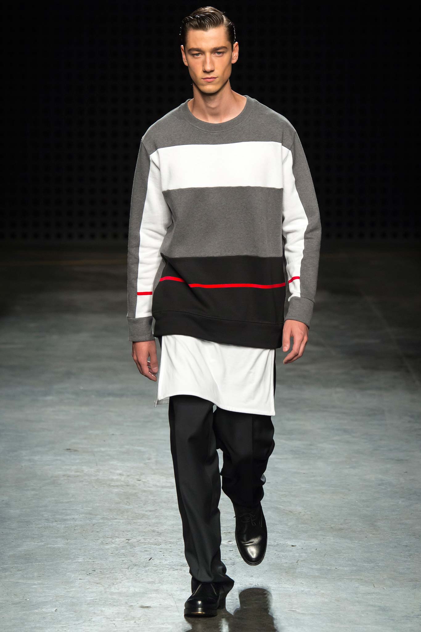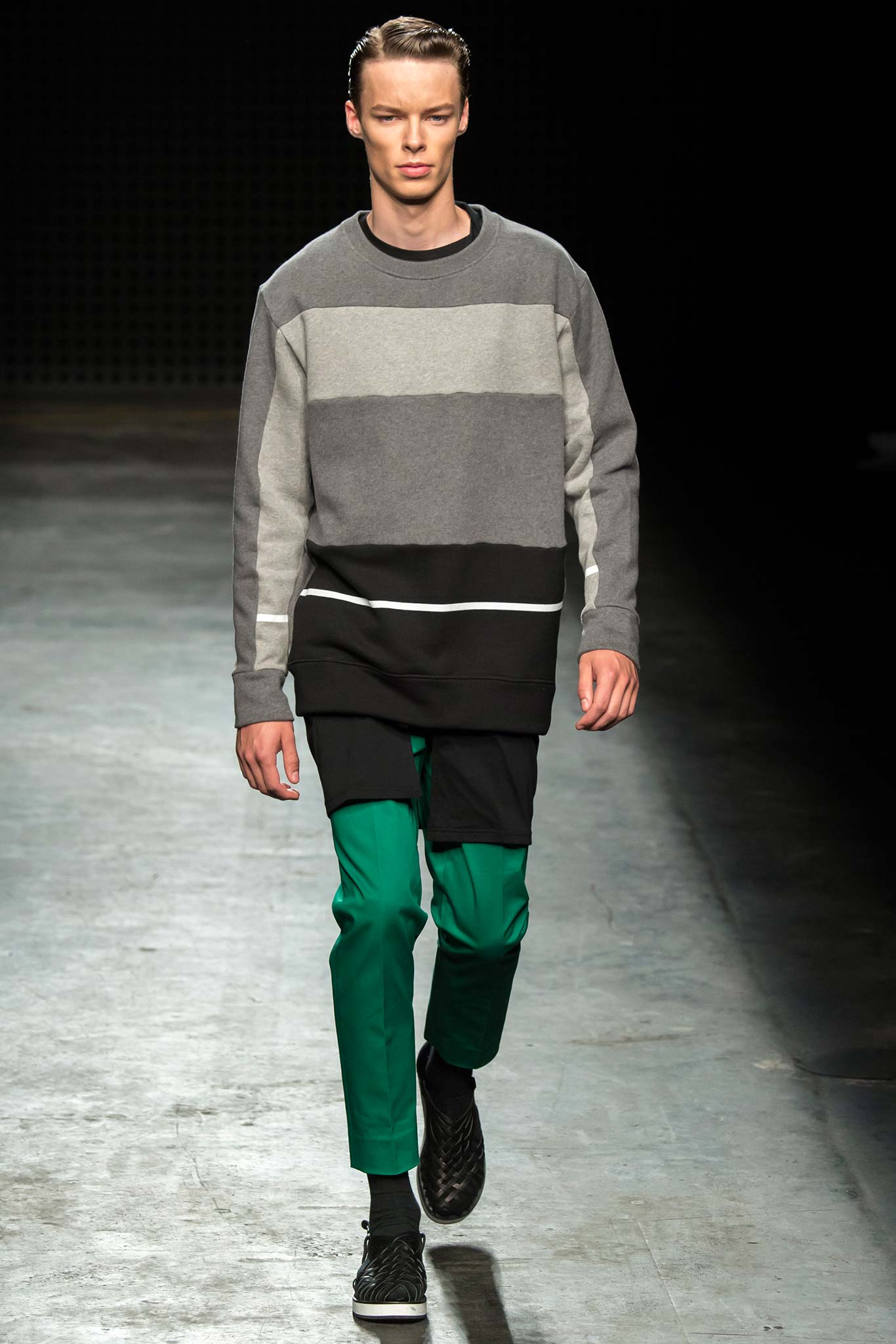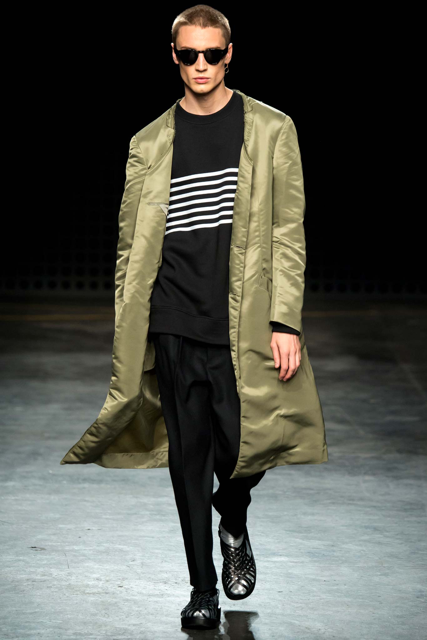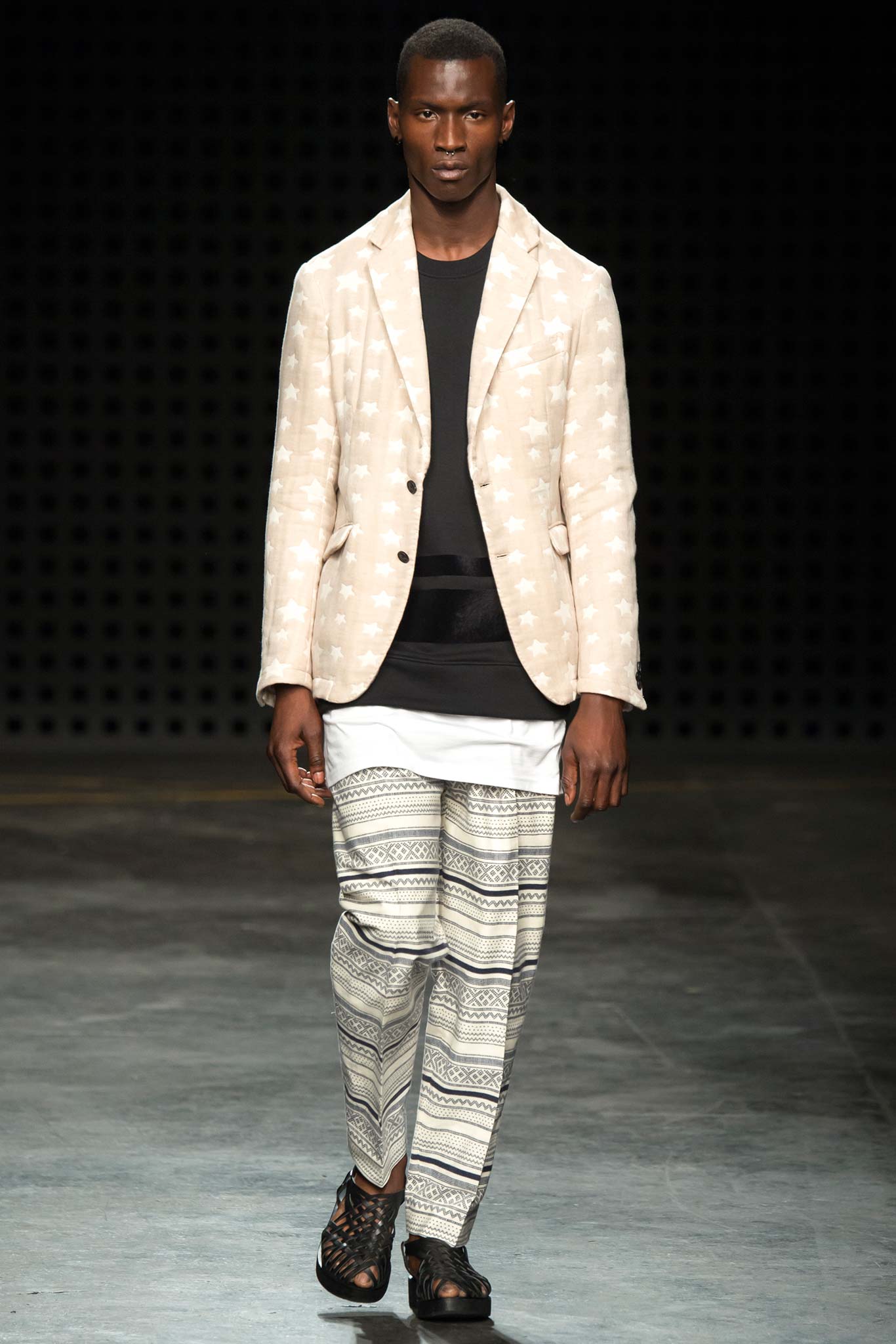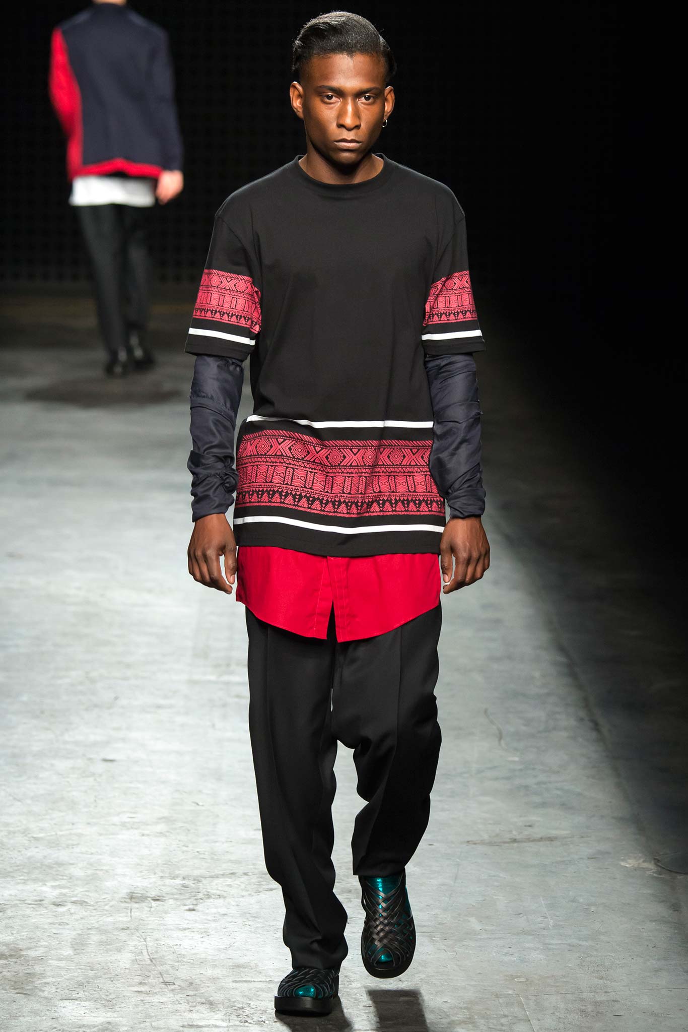 The title of father-and-son team Joe and Charlie Casely-Hayford was nicely apposite for London menswear’s themes as a whole: OF INDETERMINATE ORIGIN. That’s not to say you couldn’t have picked apart all the disparate threads of this, or any other of this week’s shows:Â Nineties hip-hop, Sixties Mod discipline, rave-era Ibiza, Northern Soul, and all the other reference points that have clung round every collection. It’s that all those things have become so melded together, so fused into something familiar yet strange, that the points of origin matter less and less. Instead, they’re elements garbled in translation, warped and stretched into hybrids so far evolved that they’ve become almost entirely separate things.