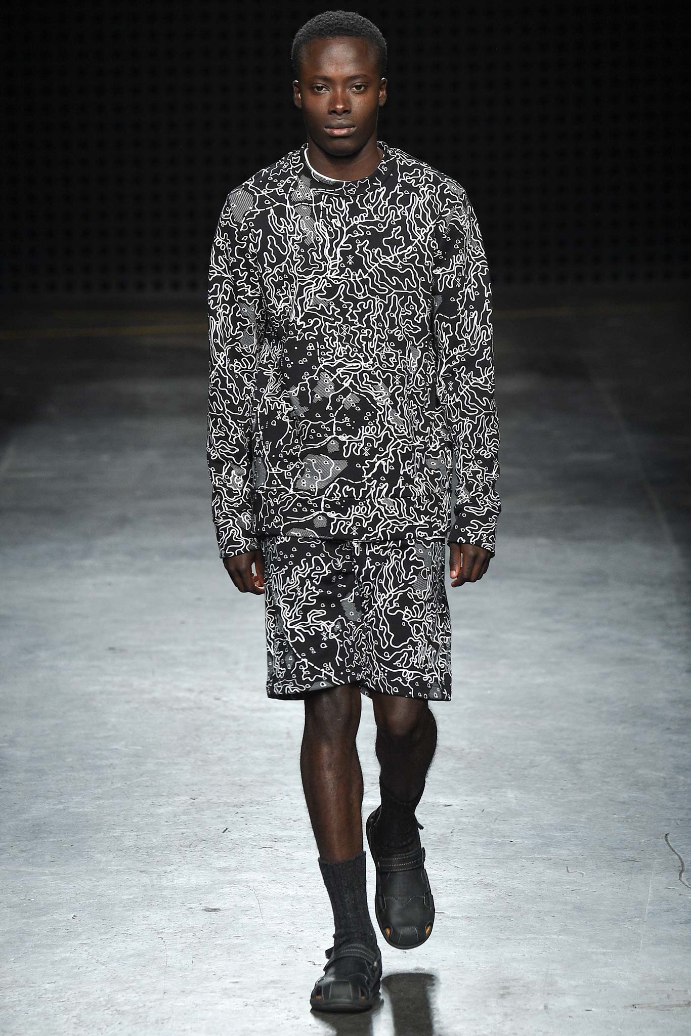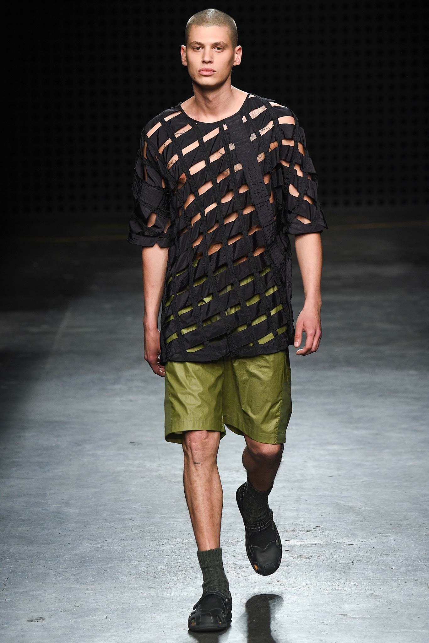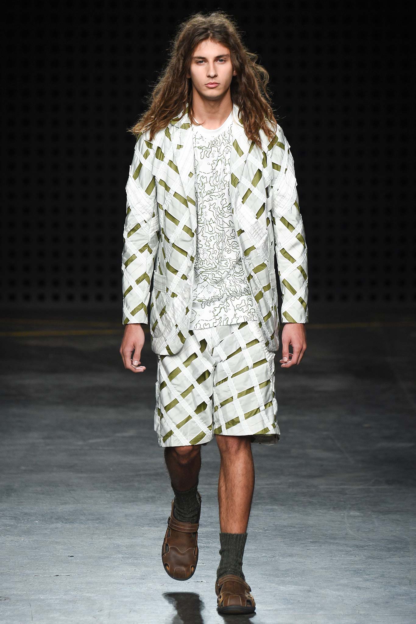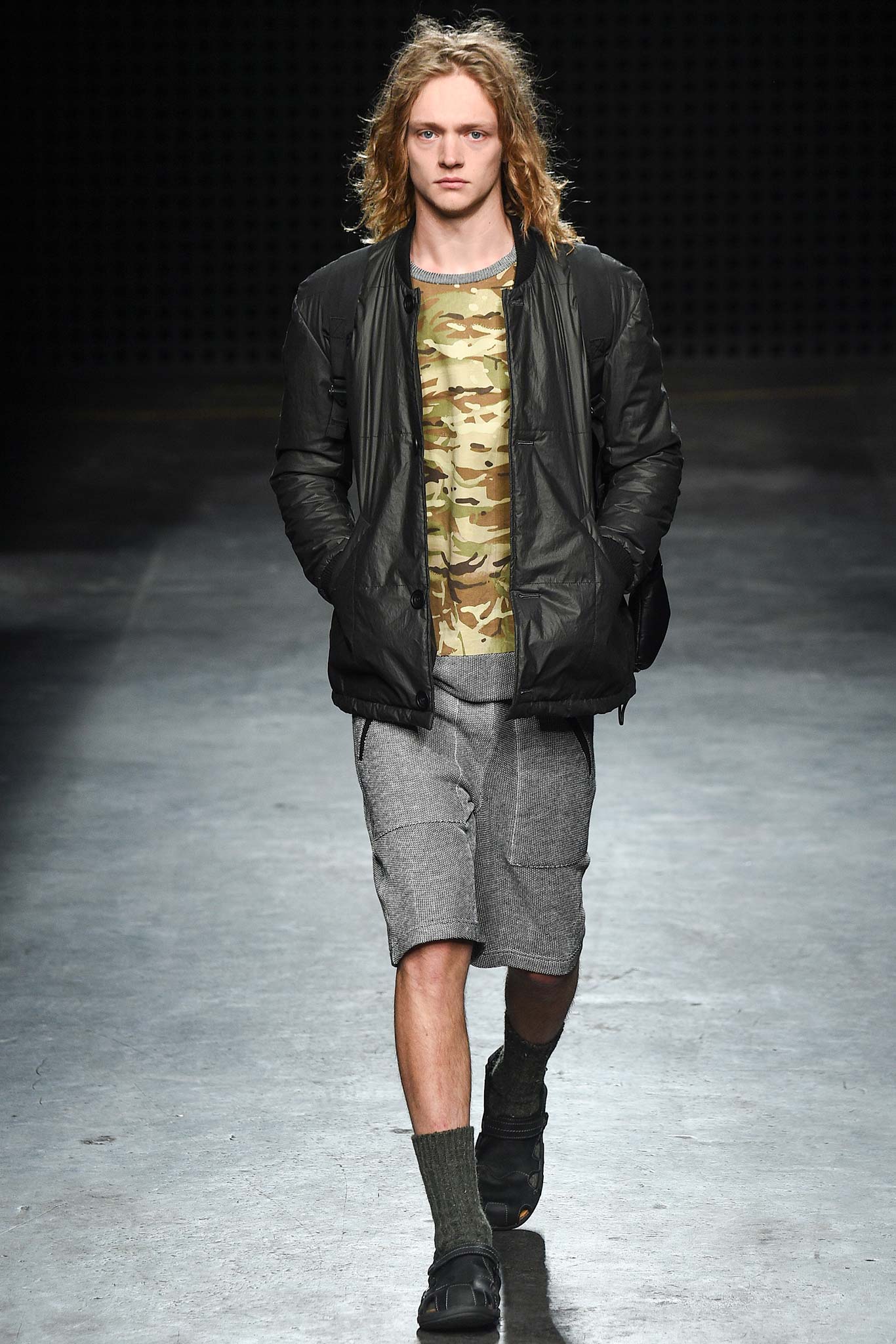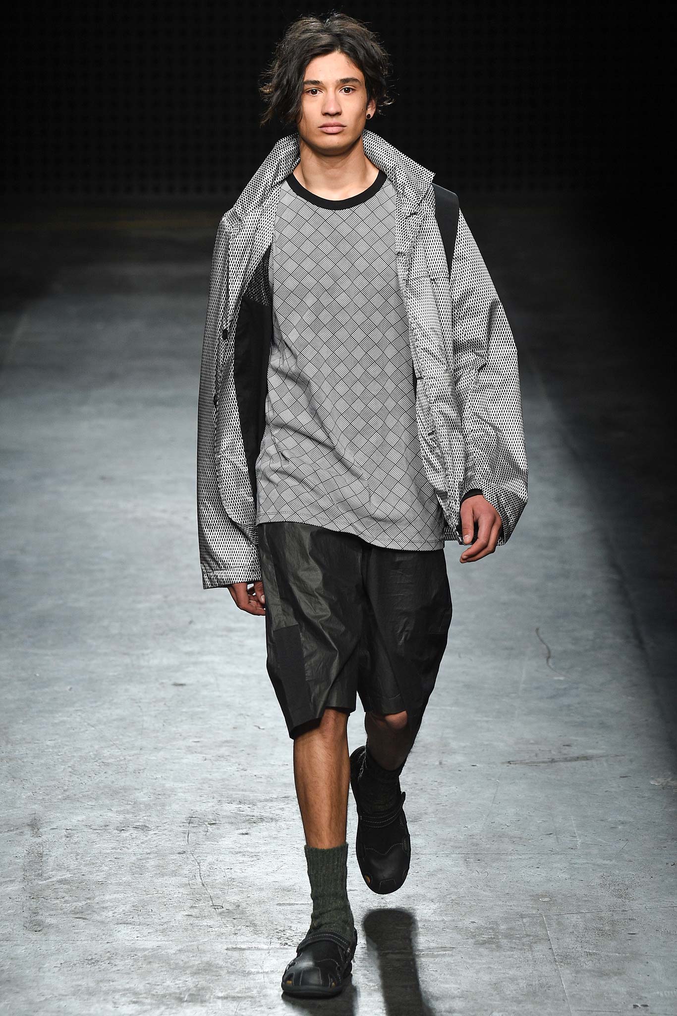 Playing to his strongest suit, Christopher Raeburn dressed his collection for the elements. This time the adventure takes him to the tropical terrains of Borneo in the Southeast Asian Malay Archipelago. The laser cut of the wooden invite set the tone for the technical precision of this season’s collection. Raeburn’s military-grade gear was fashioned after a maverick no less ardent about the outdoors than he is: anthropologist Tom Harrison, famed for his deep explorations into the geographical and cultural unknowns across the globe.