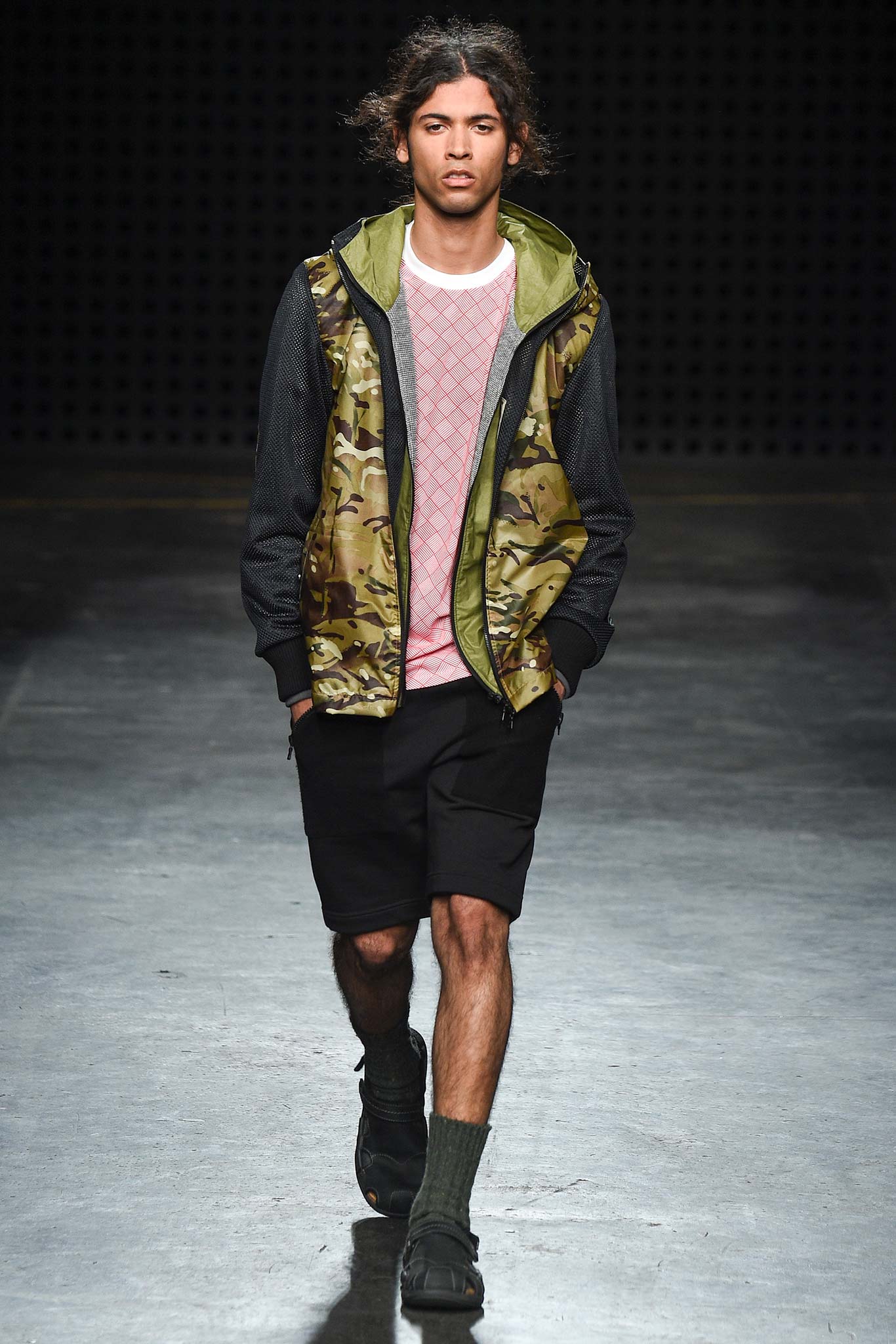 Playing to his strongest suit, Christopher Raeburn dressed his collection for the elements. This time the adventure takes him to the tropical terrains of Borneo in the Southeast Asian Malay Archipelago. The laser cut of the wooden invite set the tone for the technical precision of this season’s collection. Raeburn’s military-grade gear was fashioned after a maverick no less ardent about the outdoors than he is: anthropologist Tom Harrison, famed for his deep explorations into the geographical and cultural unknowns across the globe.
