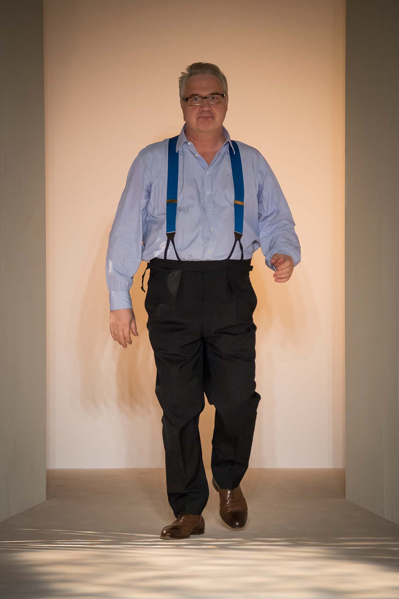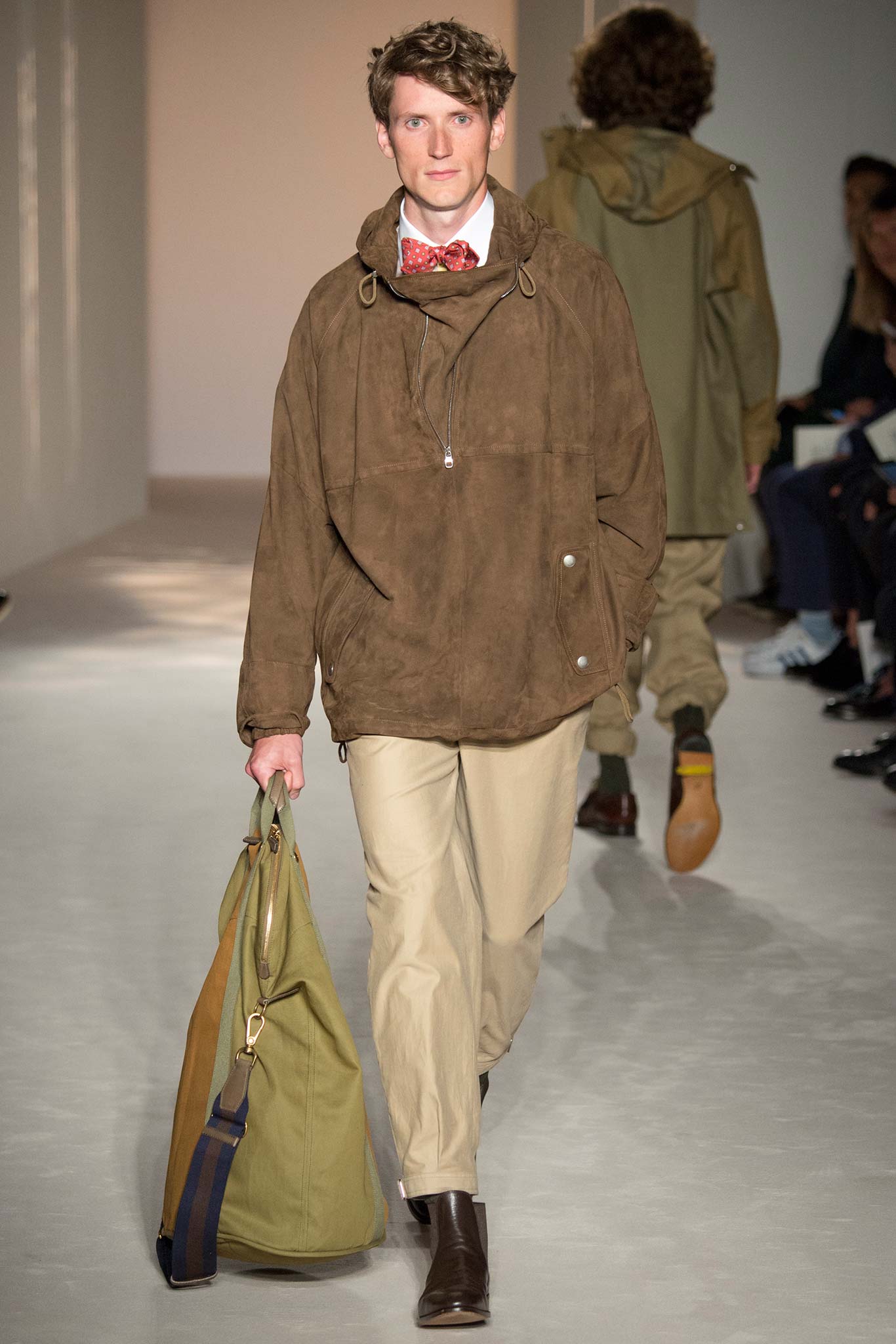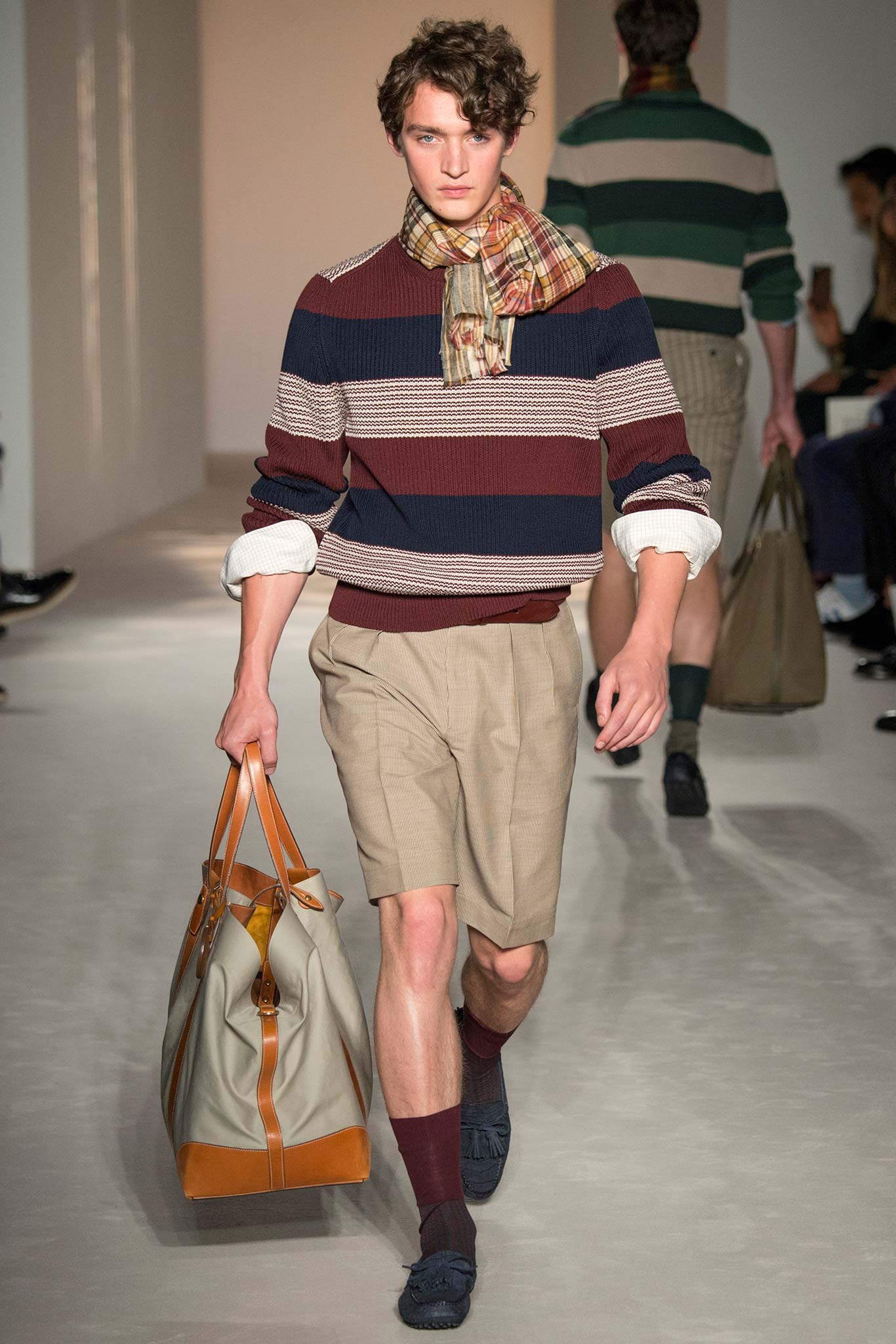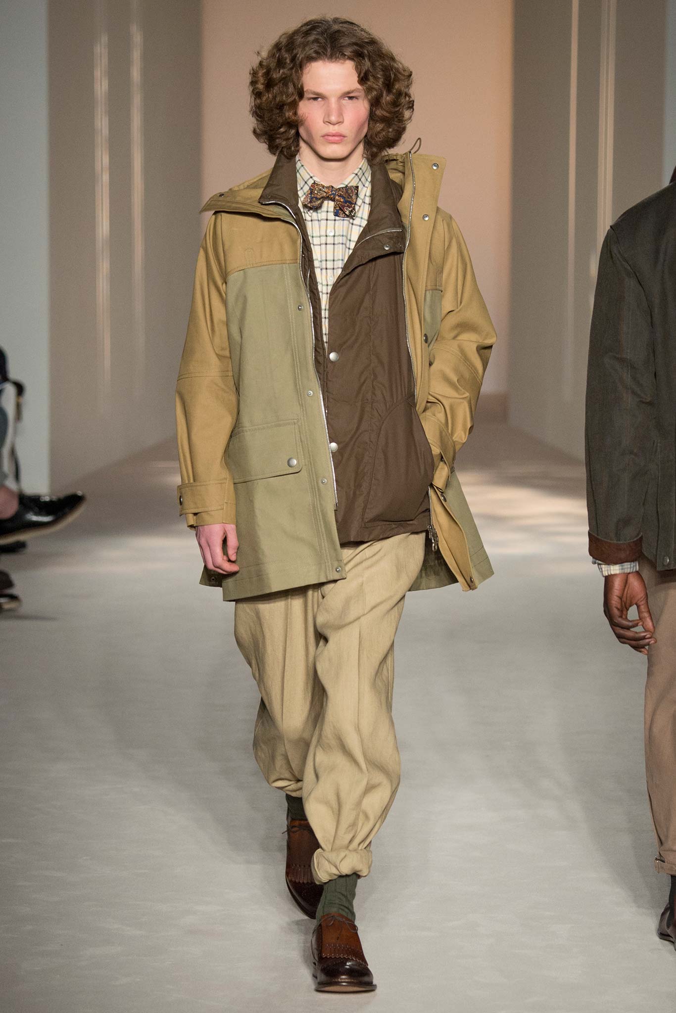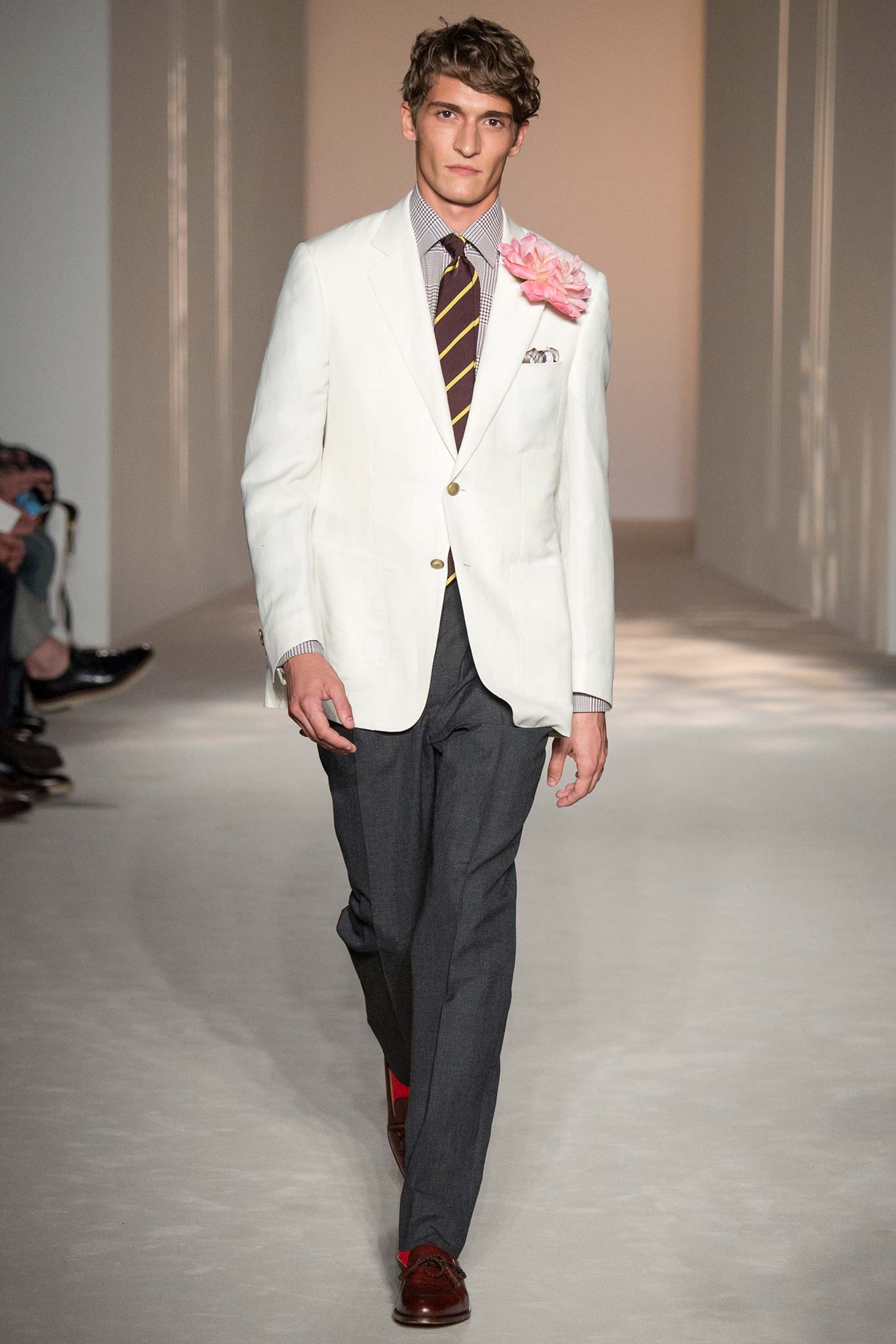 “It’s about British classicness, town and country, and Edward VIII. I didn’t want it to be super-styled,” said Ray, whose lineup spanned generations, seasons and times of day. There were morning suits and top hats, jaunty V-neck sweaters layered under plaid jackets – think Eddie Redmayne at Cambridge – and hunting jackets, all of which could easily transform the nouveau riche into lords — or, at the very least, clubbable members of the upper classes.