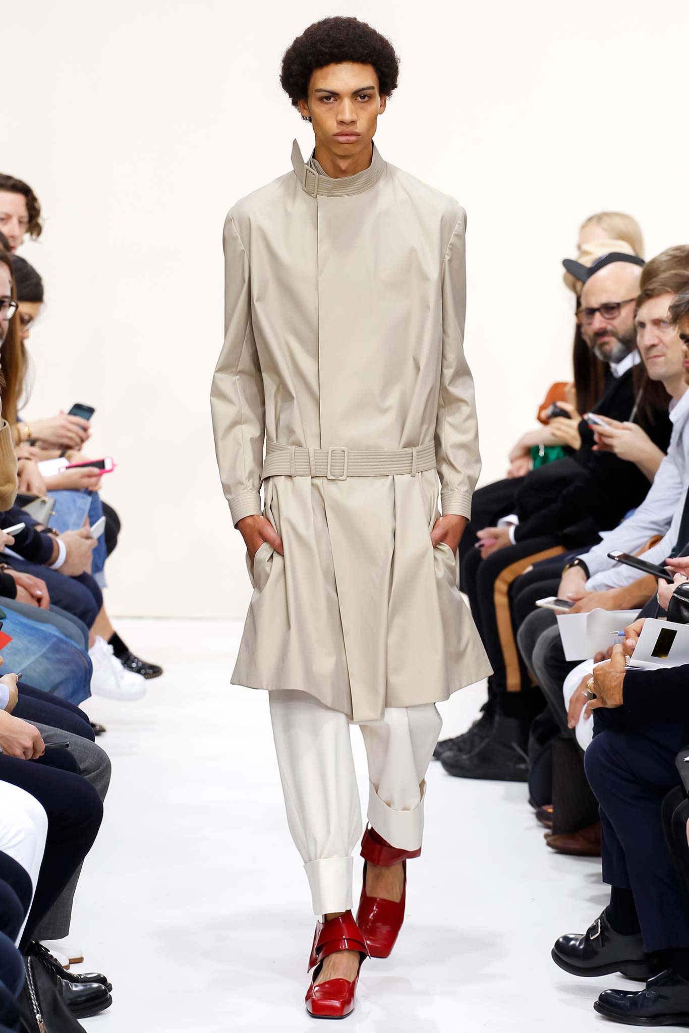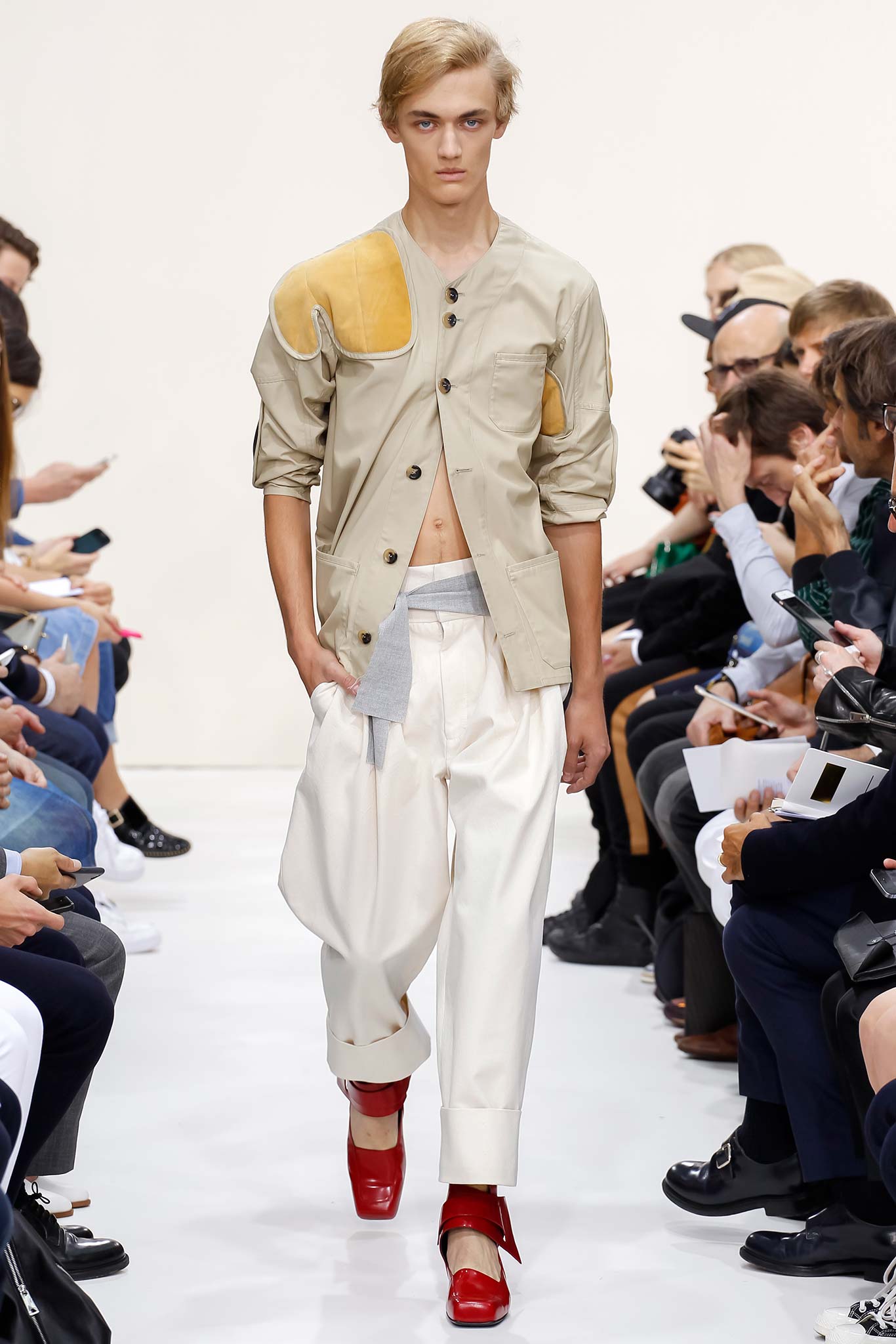 In his typically cryptic style, J.W. Anderson treated the audience to a show that we have yet to understand – a peek into the confluence of #pastpresentfuture, as the designer put it on social media. Few designers blatantly disregard the common themes on other runways, but Anderson’s march down the unbeaten track is an unwavering one. Having been on the jury at the most recent LVMH Prize, Anderson’s status has surpassed just being the dark horse on the LCM roster. He is now the sole proprietor of his own domain. His consistently purist visual codes, as seen today, establish his oeuvre as something deeply personal that could possibly be best described as self-portraiture.