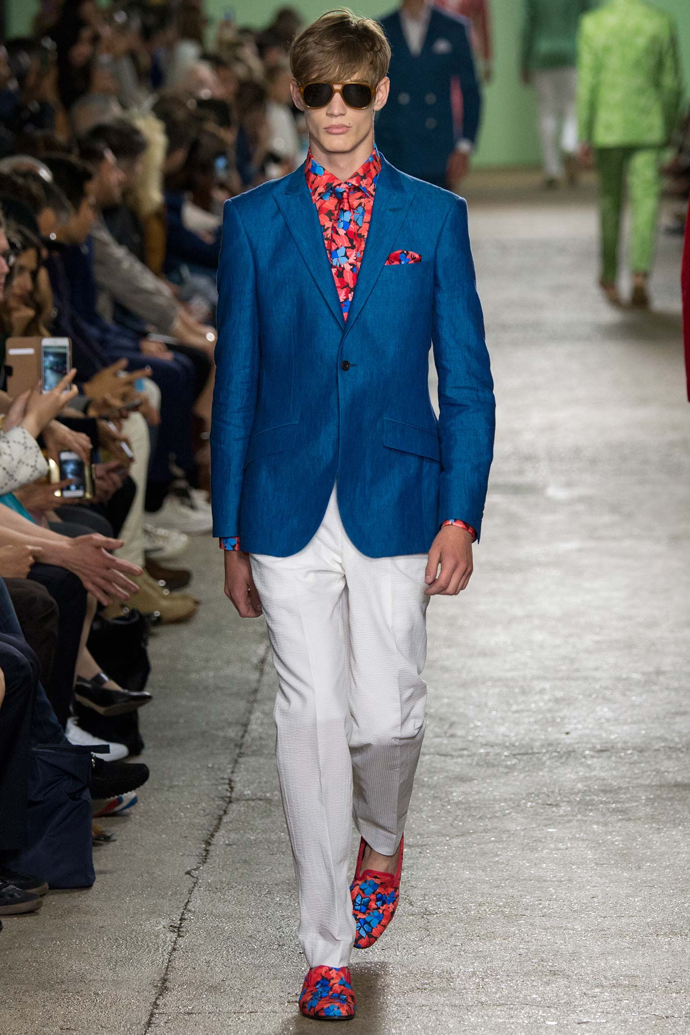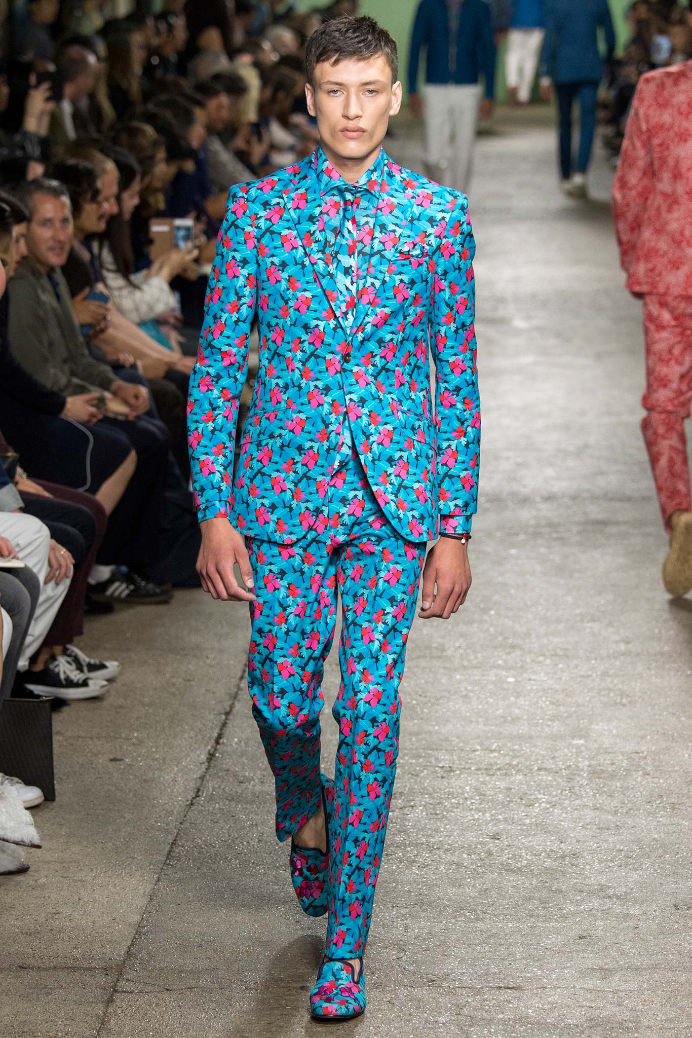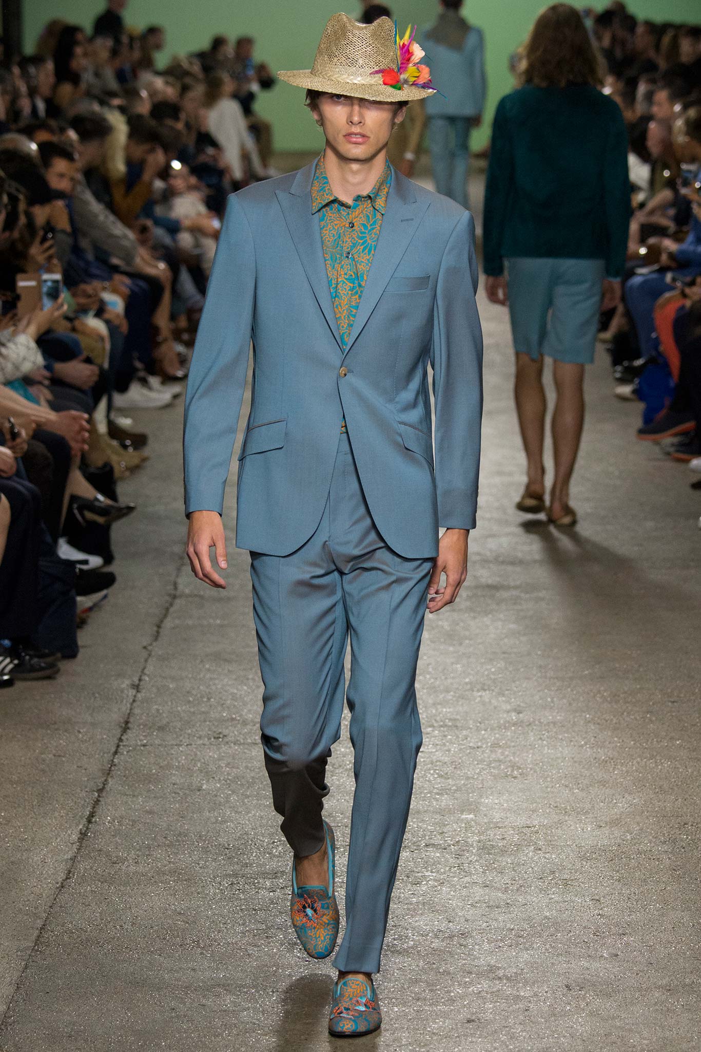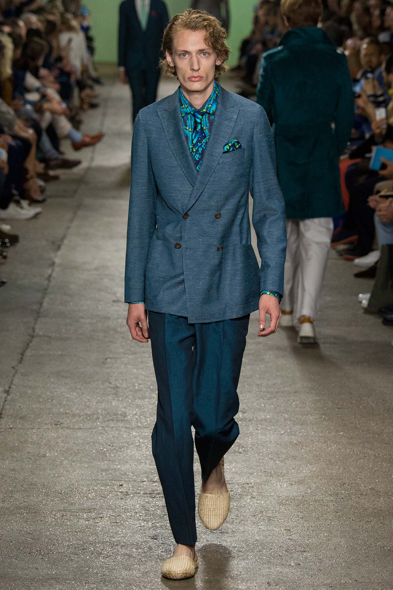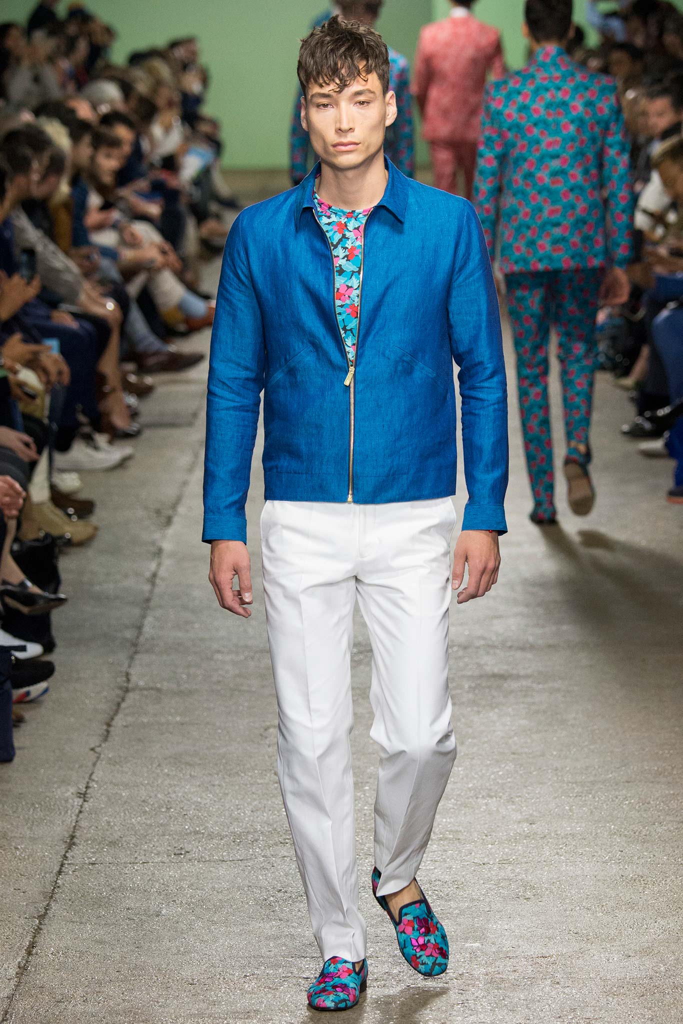 The bulk of the schedule’s menswear shows are based around the Old Sorting Office in Holborn, a strange stretch of mid-town real estate that has little connection to the fashion industry; that all takes place much further east, in the lines of north-south streets that follow the city’s ever-changing frontiers. But walking from Holborn to the Richard James show this morning was a walk back through menswear history – from Covent Garden in the Nineties to Sixties Soho, to pre-war Savile Row and on to Jermyn Street and the gentleman’s clubs of Pall Mall. There, amidst statues of portly Victorian generals and smugly triumphant explorers, Richard James unveiled their latest collection in a long underground space overlooking St. James’ Park.