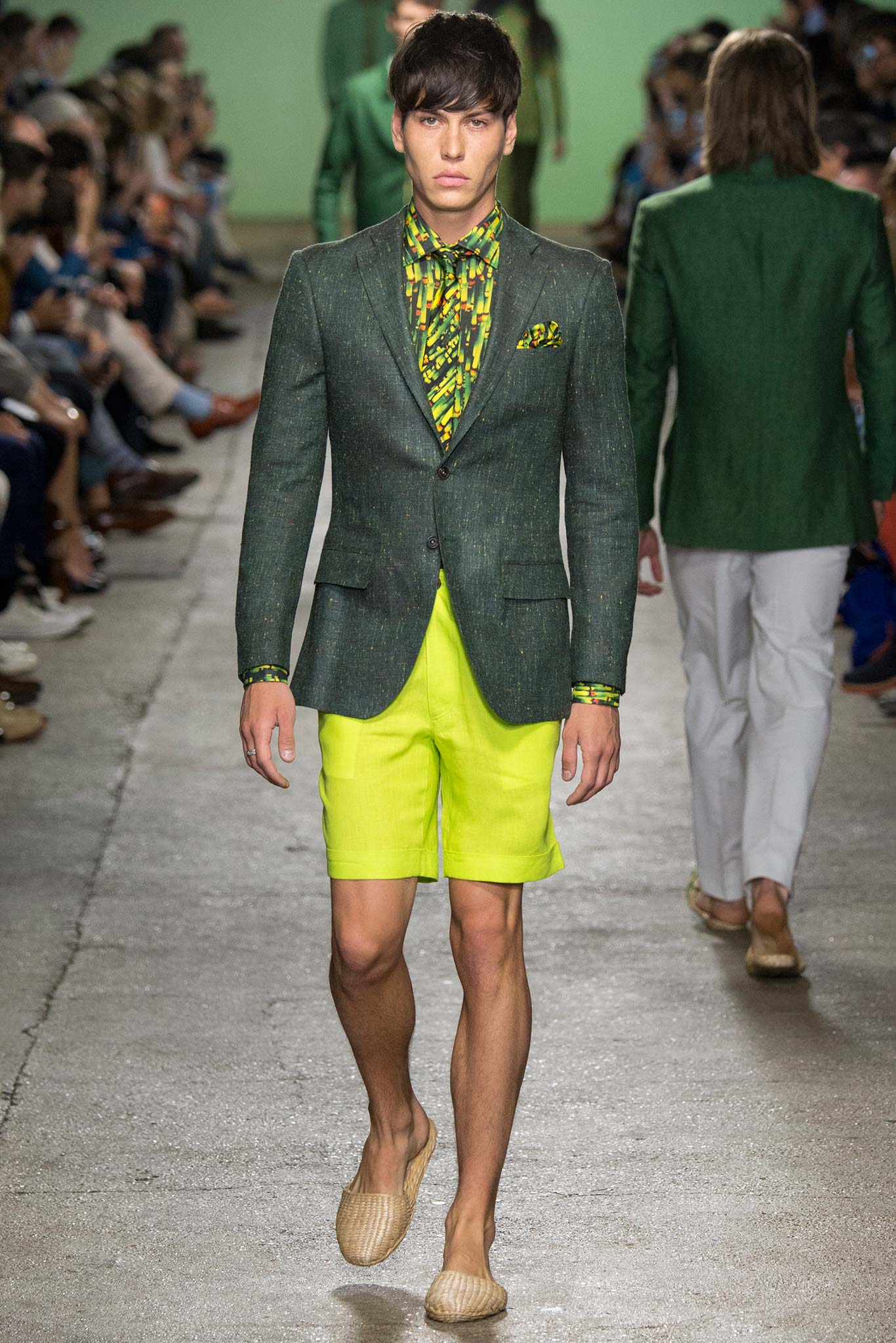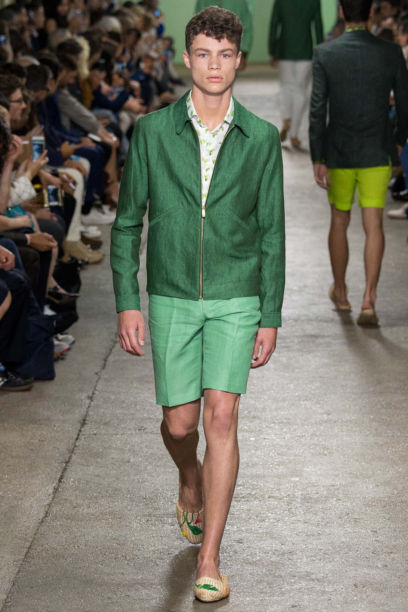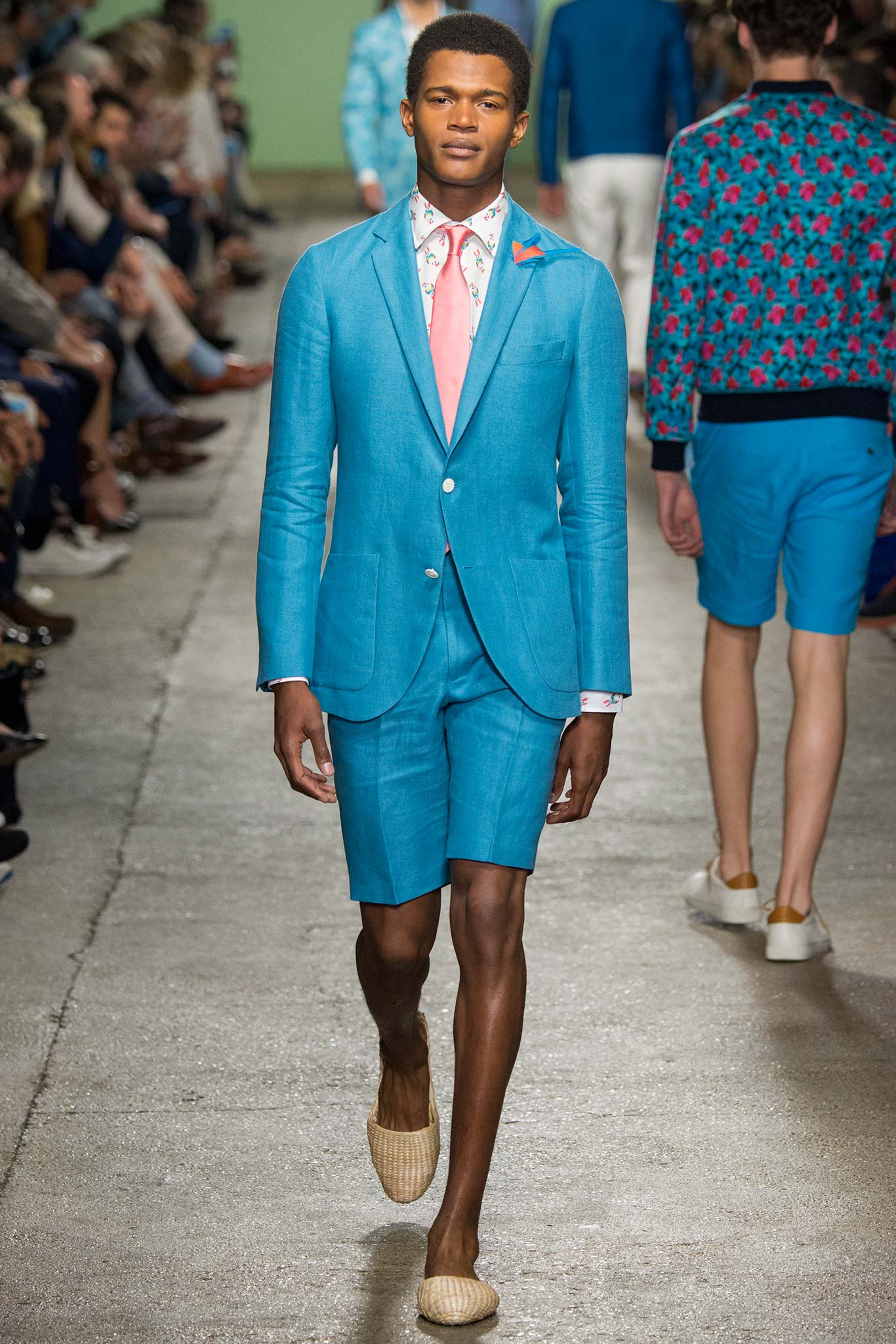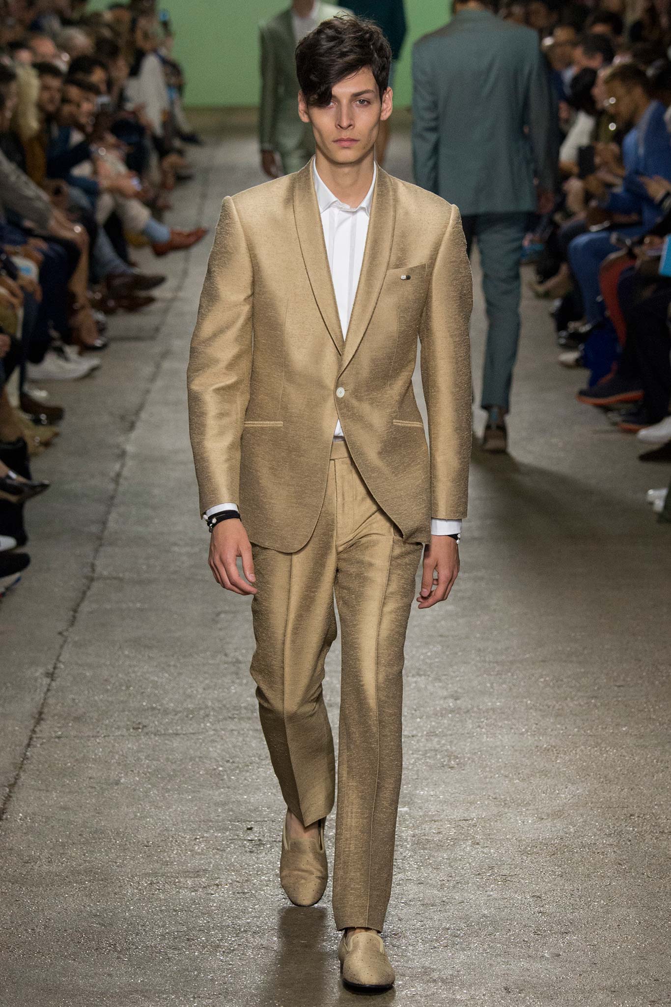 The bulk of the schedule’s menswear shows are based around the Old Sorting Office in Holborn, a strange stretch of mid-town real estate that has little connection to the fashion industry; that all takes place much further east, in the lines of north-south streets that follow the city’s ever-changing frontiers. But walking from Holborn to the Richard James show this morning was a walk back through menswear history – from Covent Garden in the Nineties to Sixties Soho, to pre-war Savile Row and on to Jermyn Street and the gentleman’s clubs of Pall Mall. There, amidst statues of portly Victorian generals and smugly triumphant explorers, Richard James unveiled their latest collection in a long underground space overlooking St. James’ Park.