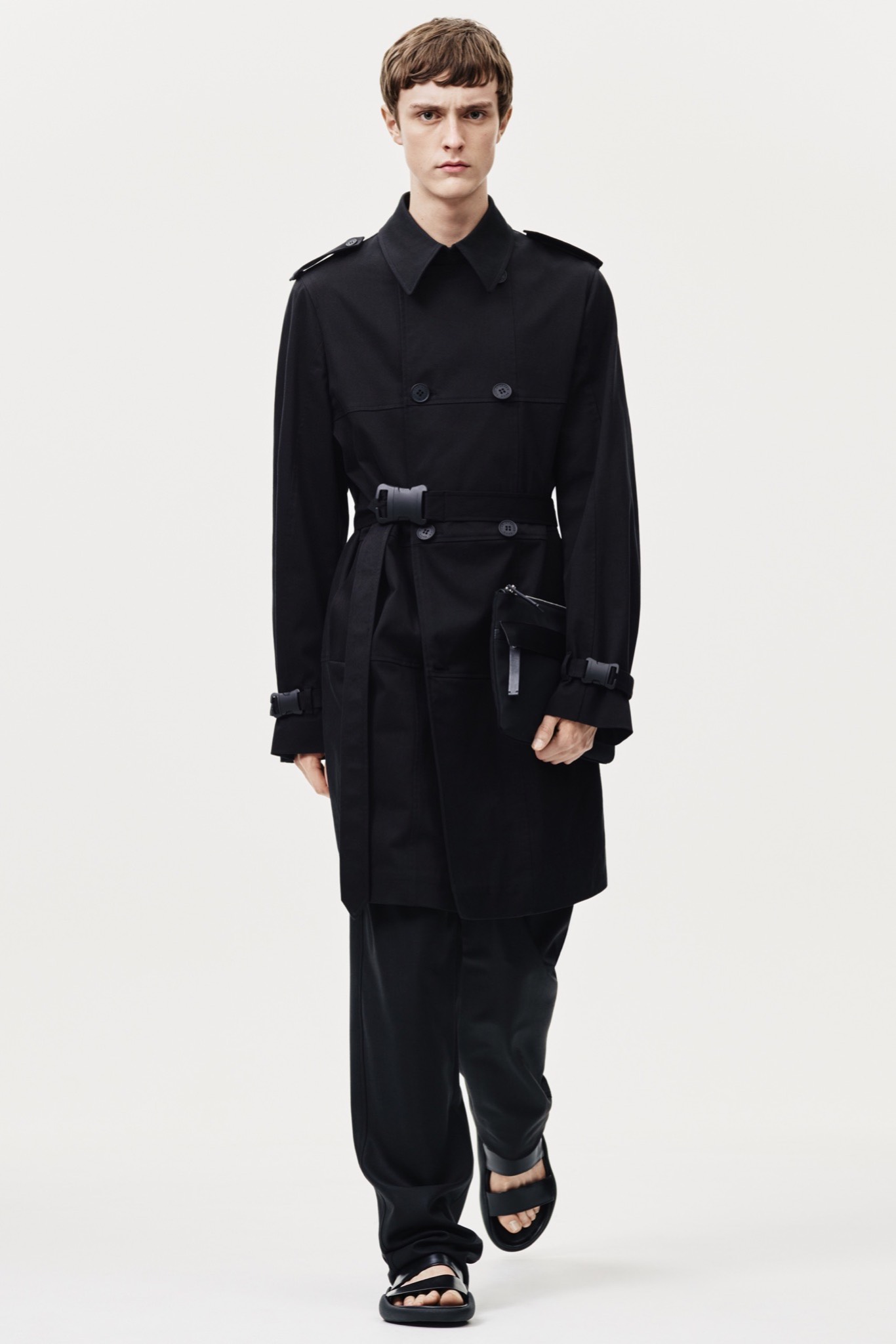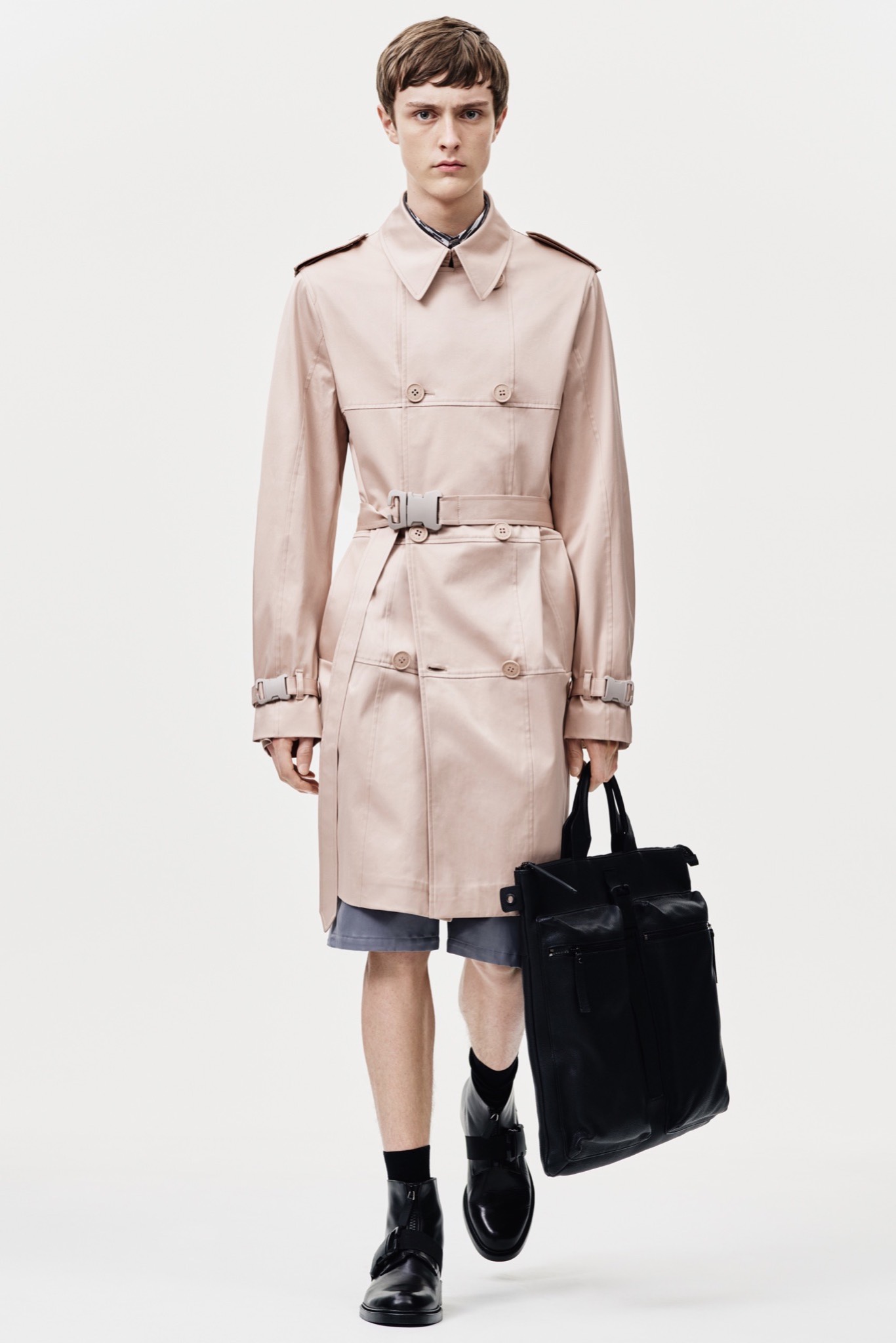 Science-obsessed designer Christopher Kane donned his well-worn lab coat for a collection filled with molecular shapes, suture-like seams, and a shadowy pattern meant to resemble decaying matter. Some topcoats and suits came in black-and-white tweed, with colored dots popping on them, while others were covered in bright, uneven stripes resembling bits of barcode. Knitwear came with exaggerated fagotting meant to resemble sutures, while the designer’s subtle, marbled decay pattern came as a shadowy print on dark jackets. Sporty silhouettes ranged from the ultra-luxe — cue a soft leather and suede paneled bomber — to the ultra-urban, as in a jersey knit tracksuit with colored stripes placed here and there.