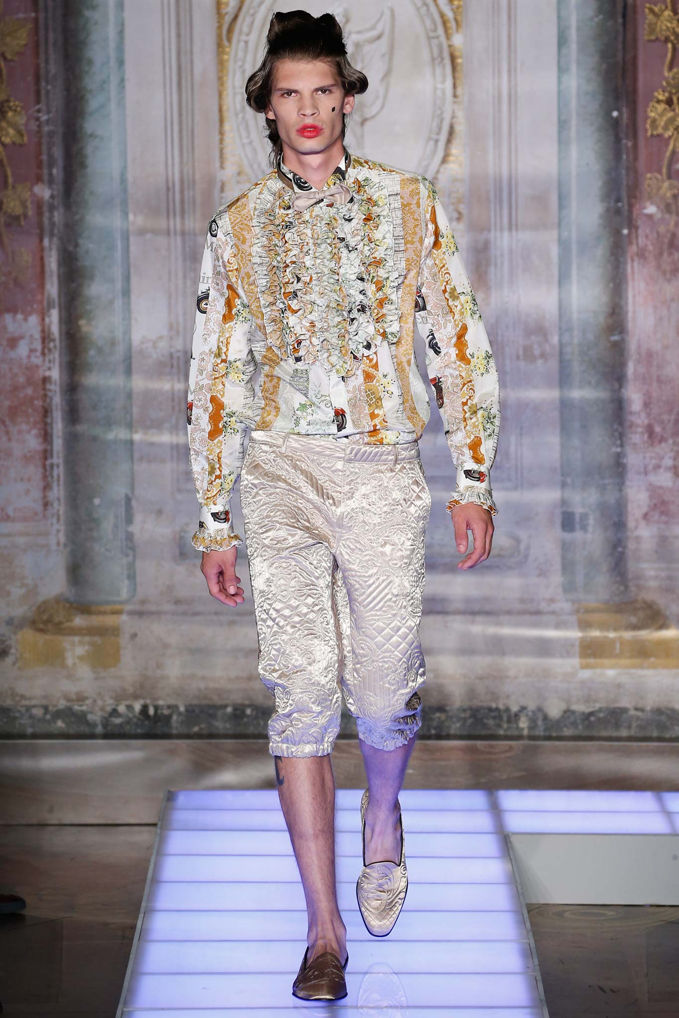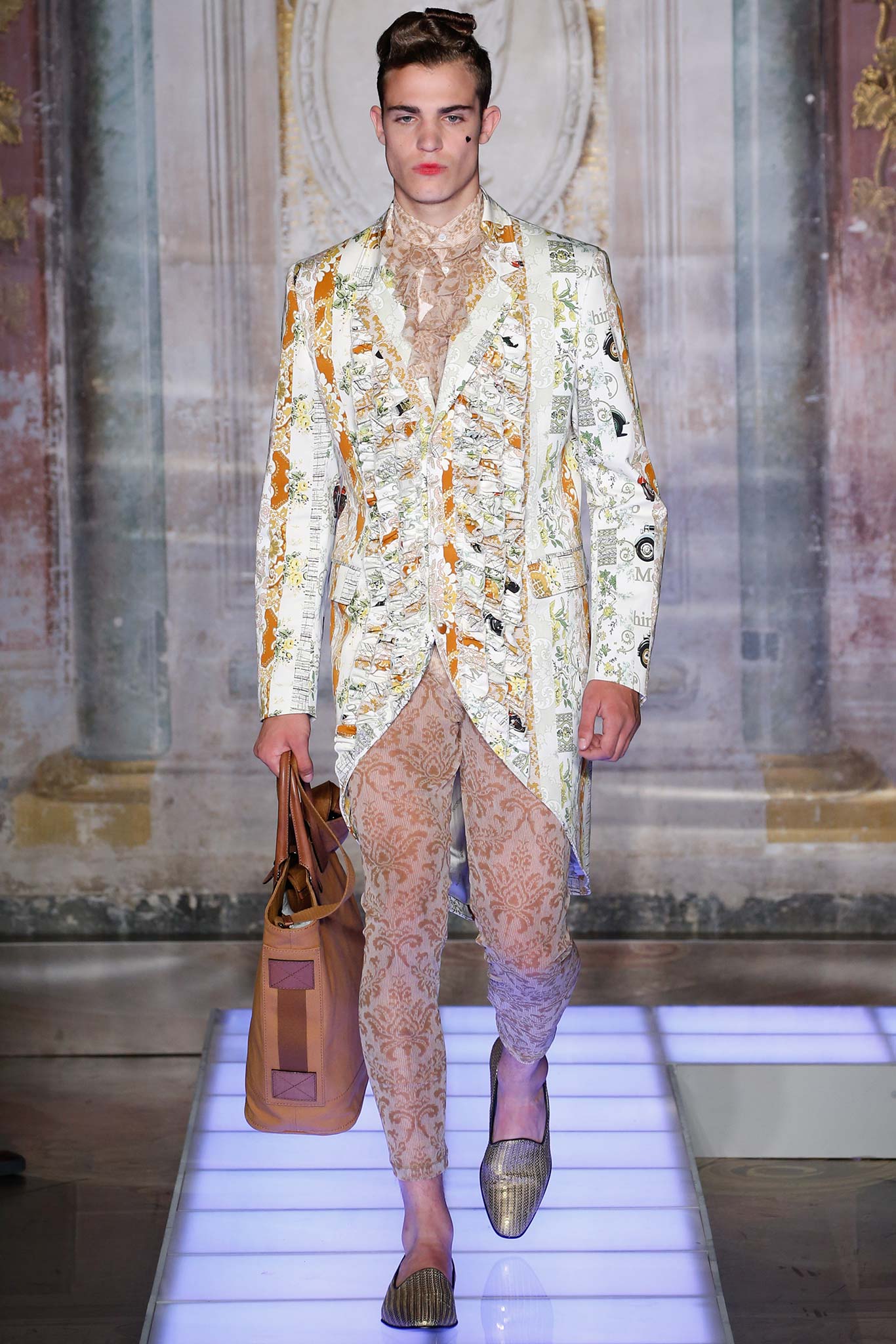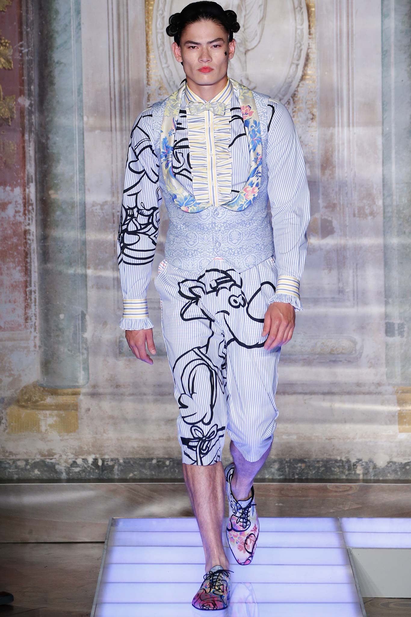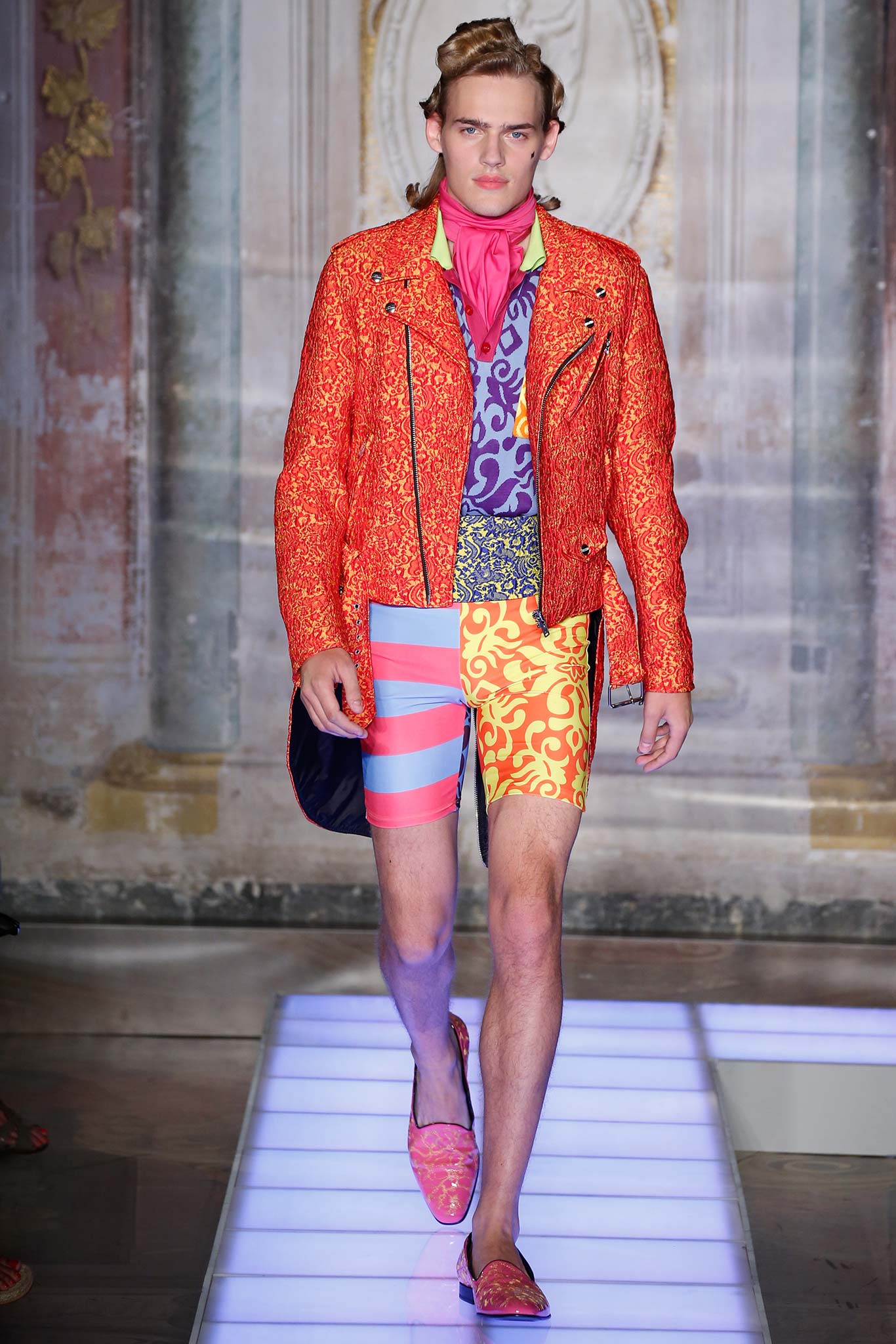 Designer Jeremy Scott made his MOSCHINO a royalty kingdom fashion show at Pitti Uomo embodied Casanovas style on its Menswear Spring/Summer 2016 making an unique event. Embracing logos, graphics, art pop, cartoons and gentleman’s old school patterns, Scott created a lineup not for the faint of heart. From sports jackets to sports career outfits, revolutionary a sport casanova whole look , Moschino’s spring/summer 2016 outing was an exercise in free expression.