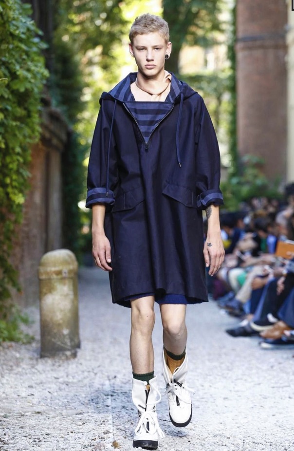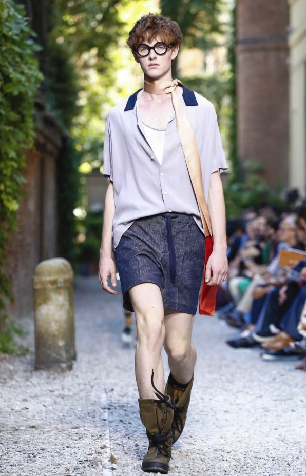 Andrea Pompilio presents this morning at Milan Fashion Week his Menswear Collection Spring/Summer 2016, Pompilio goes Harry Potter-ish inspirational outfits from the popular magician the sublime collection including long jackets, shorts, bomber jackets, square, stripes, all in clean lucid colors.
