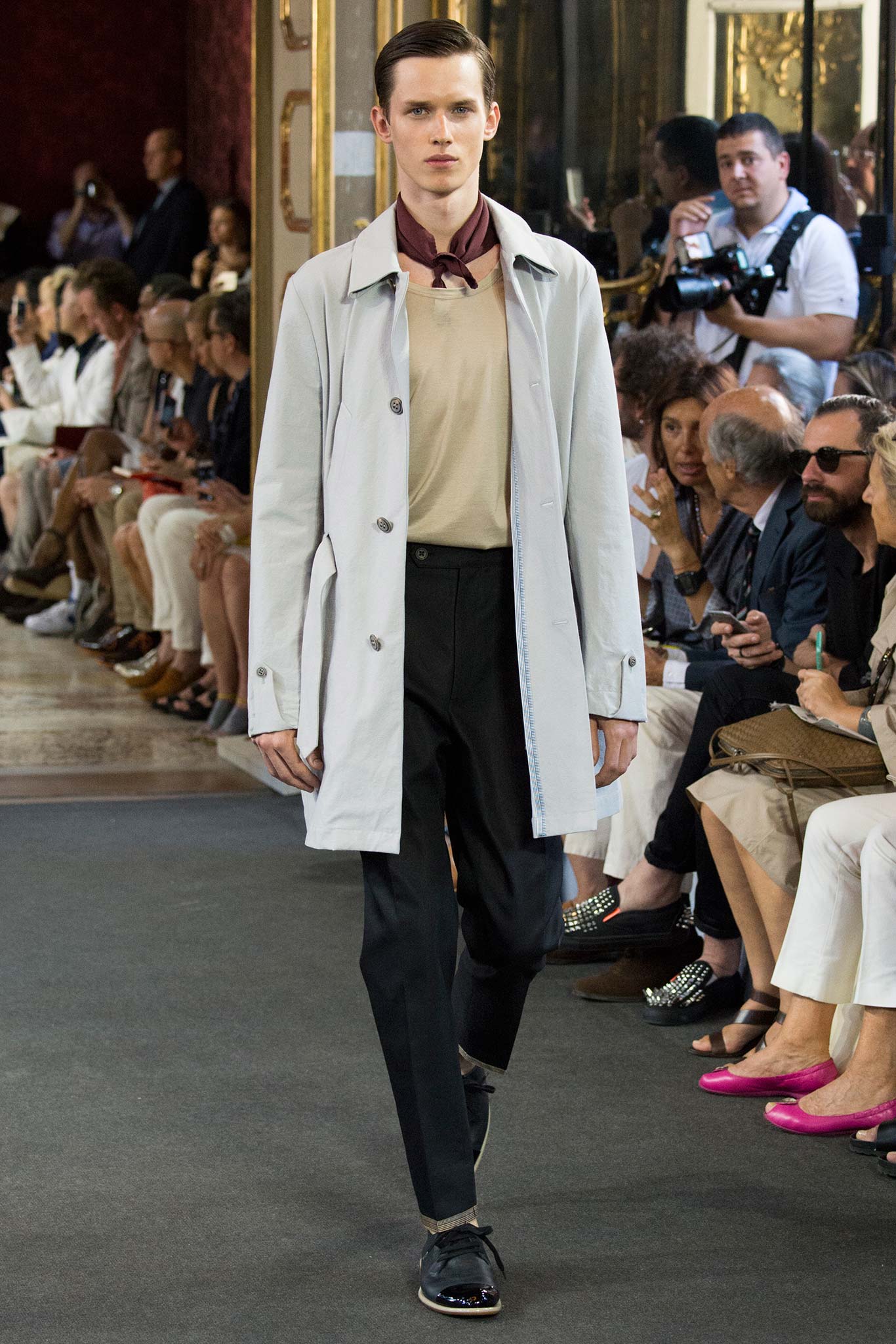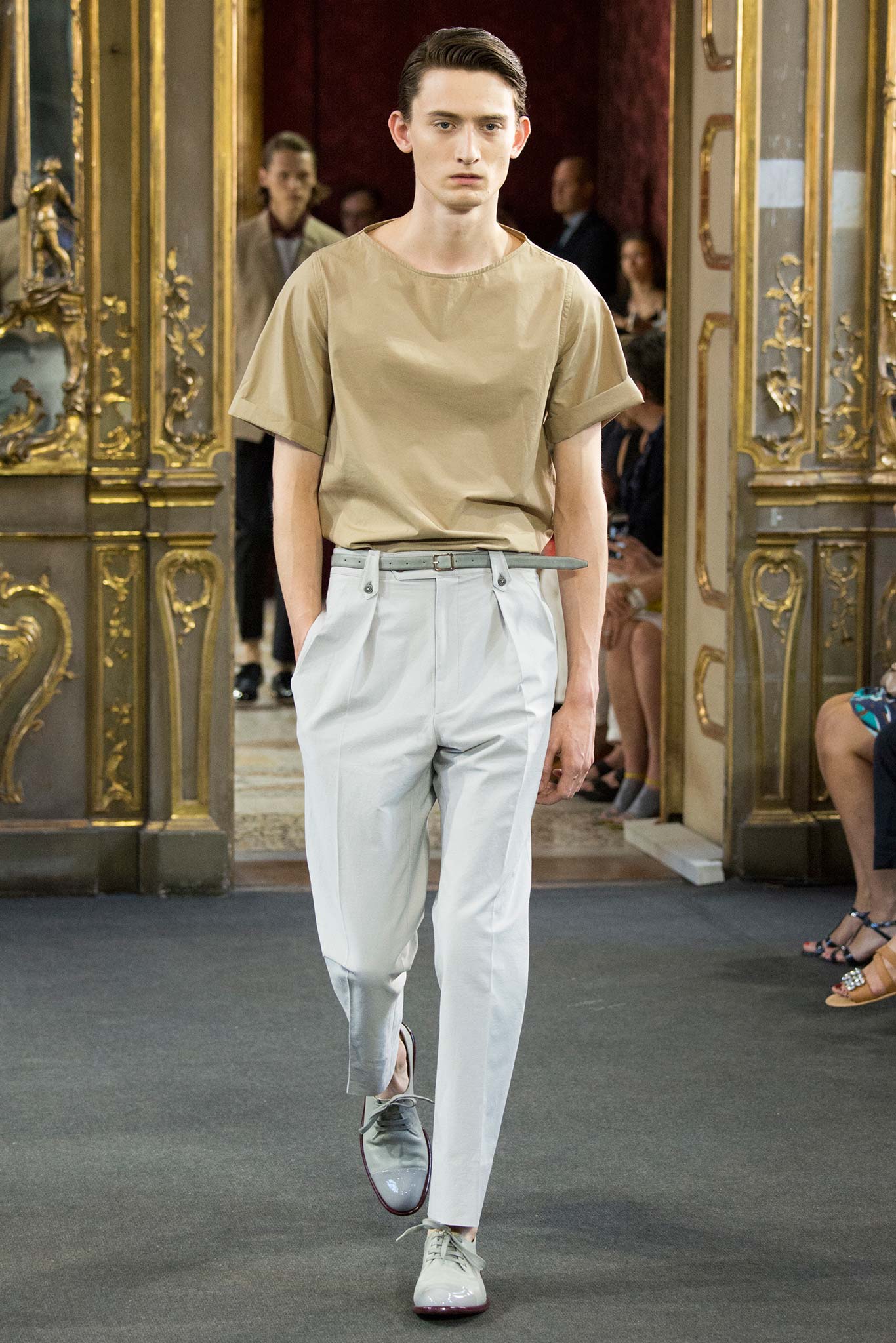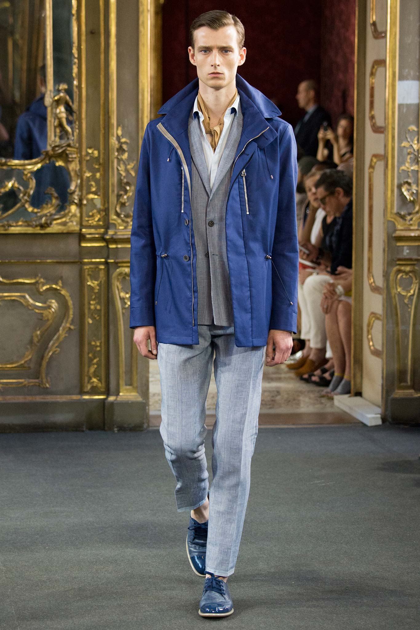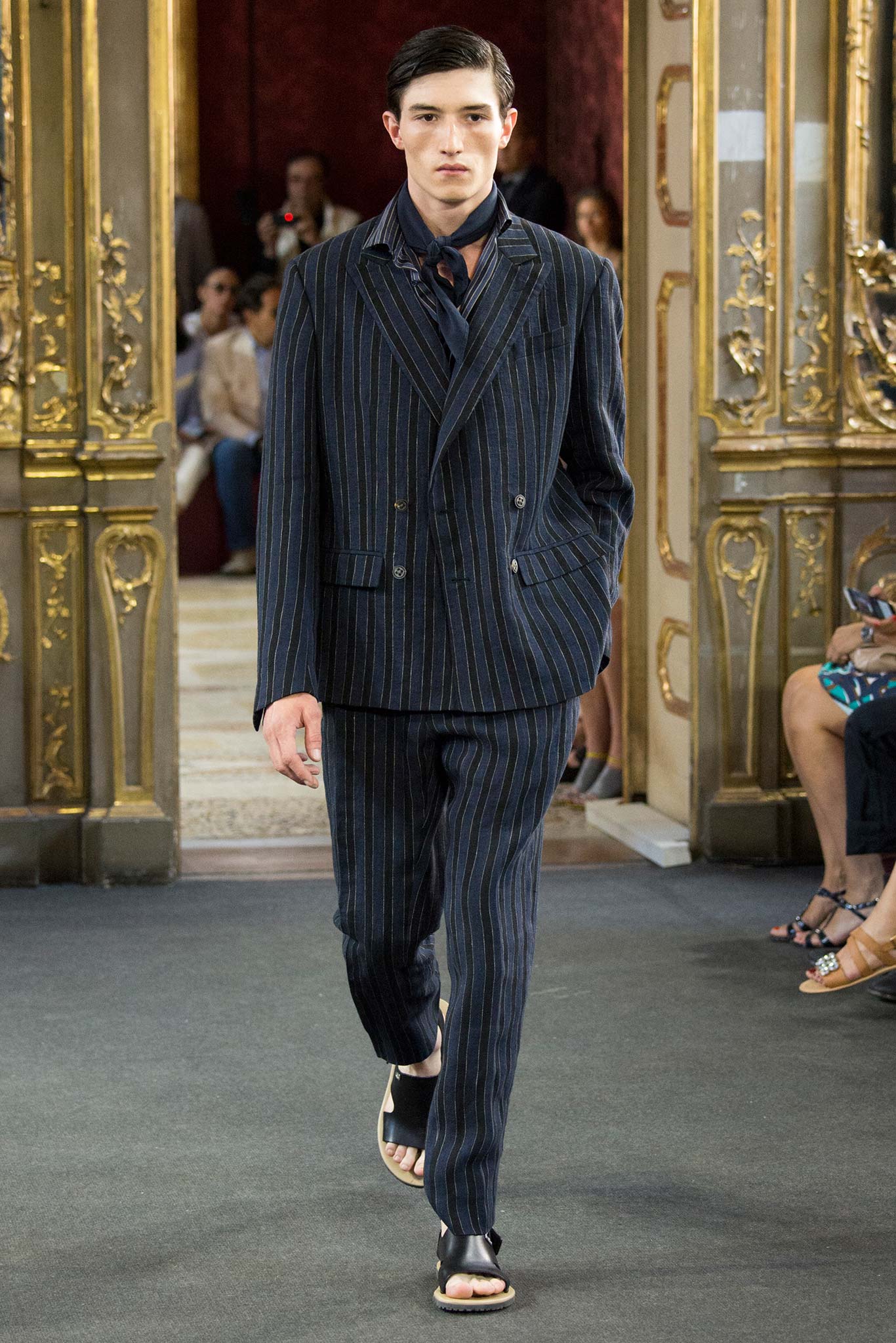 Corneliani, ultimate luxury designer shows his new collection Spring/Summer 2016 Fashion Show in Milan. Particular elegance, designer teaches summer sets knits, perfect tailoring, the finest fabrics for making those perfect tailored suits. Sandals are a plus that give a touch of conformity and coincidence. Where the weather can change vary by Corneliani finest shoes. It was a great night for the designer, knowing that it is the king of finesse.