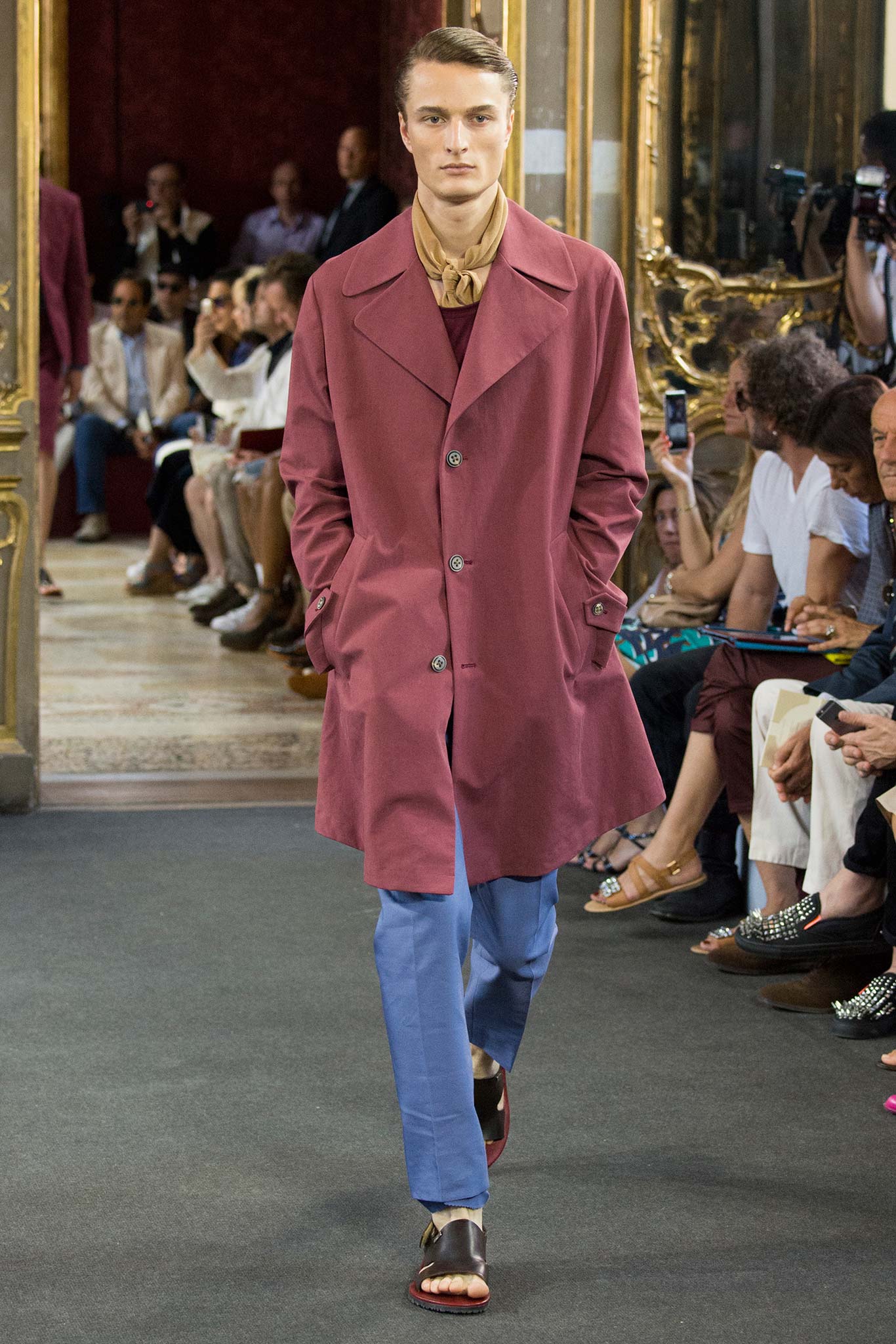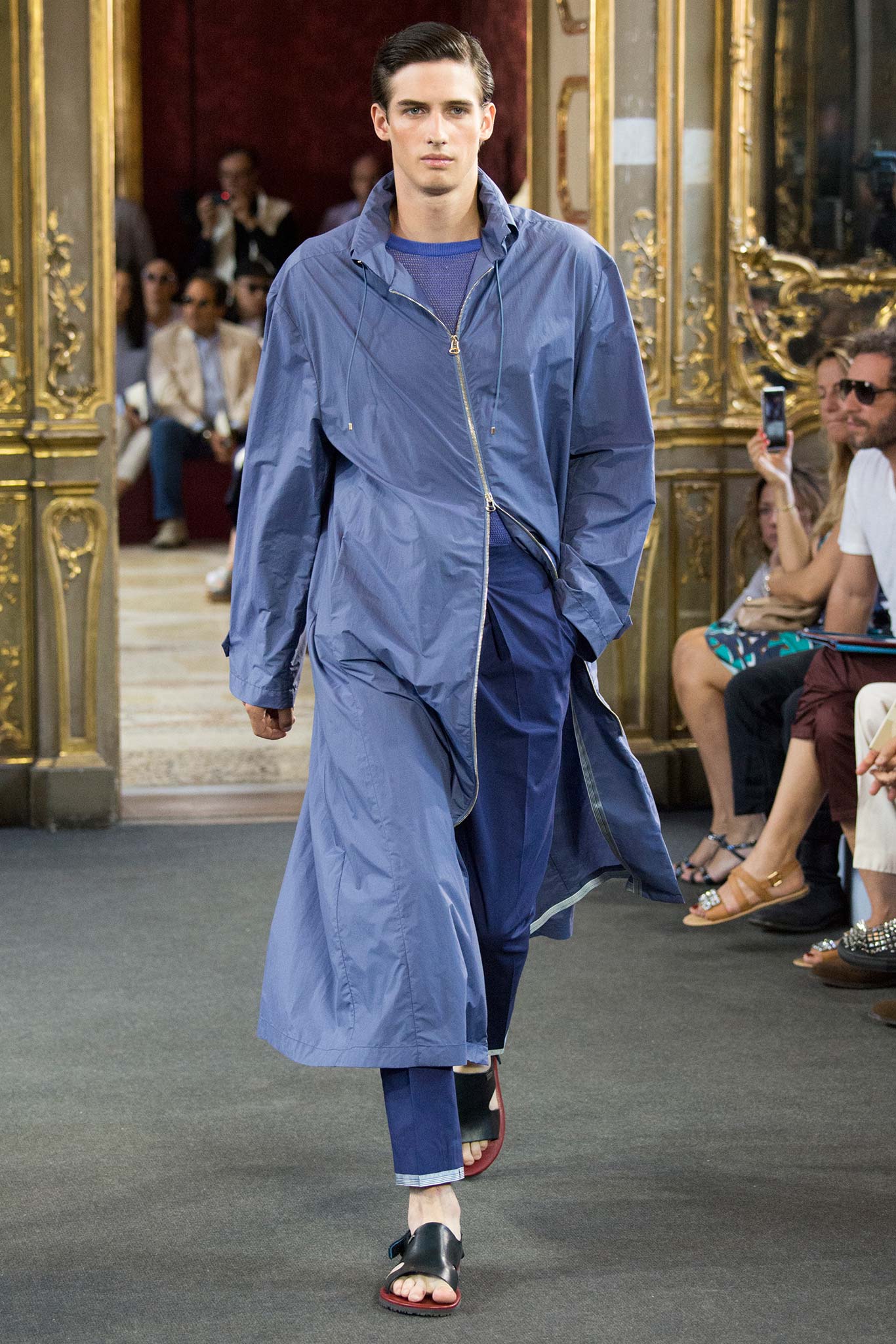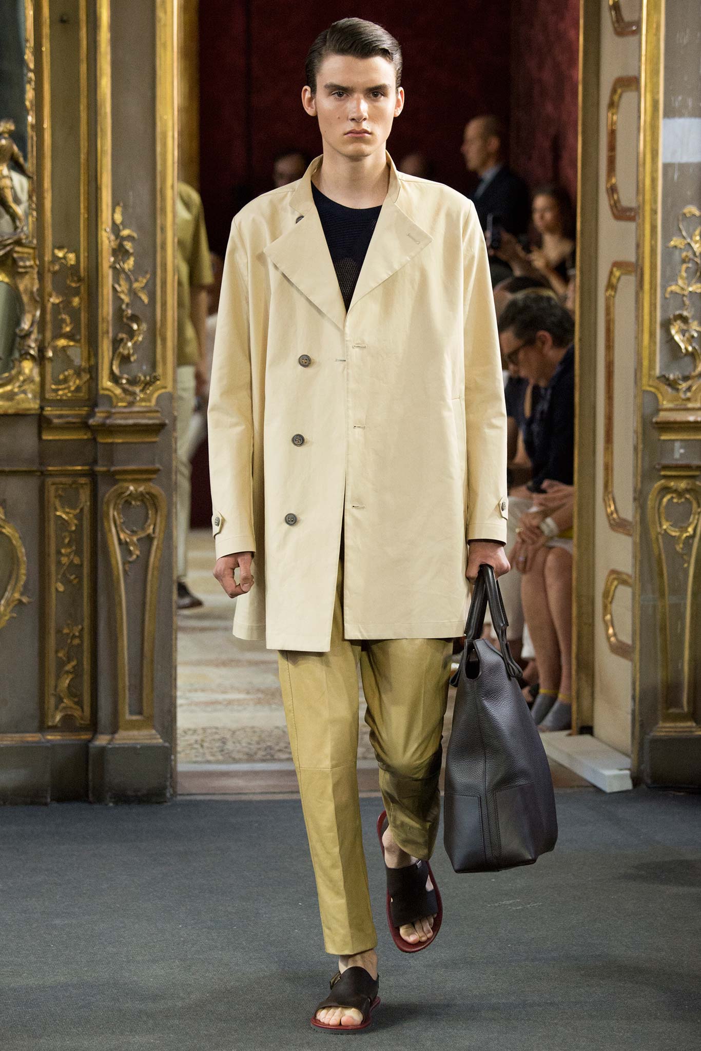 Corneliani, ultimate luxury designer shows his new collection Spring/Summer 2016 Fashion Show in Milan. Particular elegance, designer teaches summer sets knits, perfect tailoring, the finest fabrics for making those perfect tailored suits. Sandals are a plus that give a touch of conformity and coincidence. Where the weather can change vary by Corneliani finest shoes. It was a great night for the designer, knowing that it is the king of finesse.