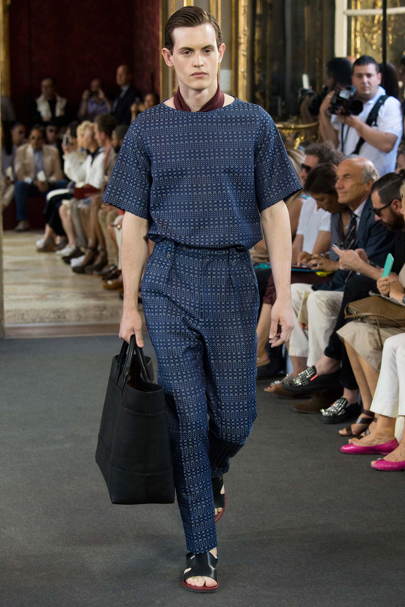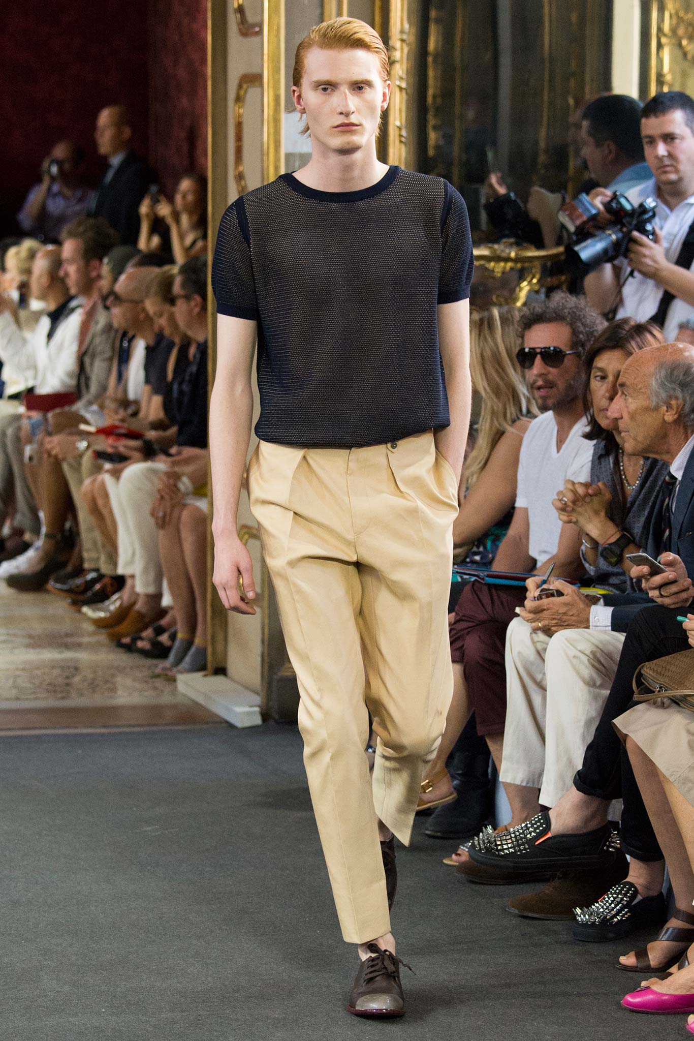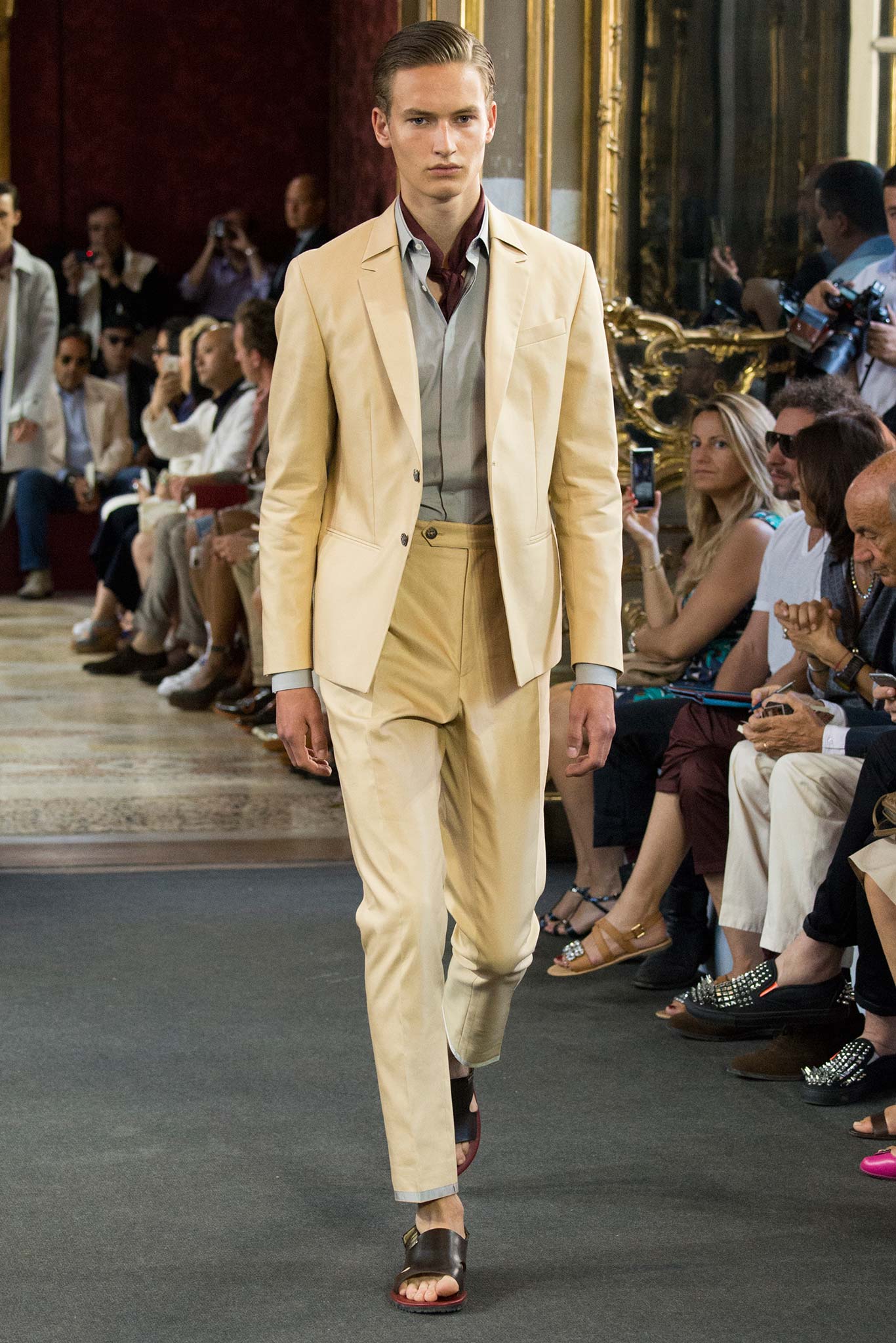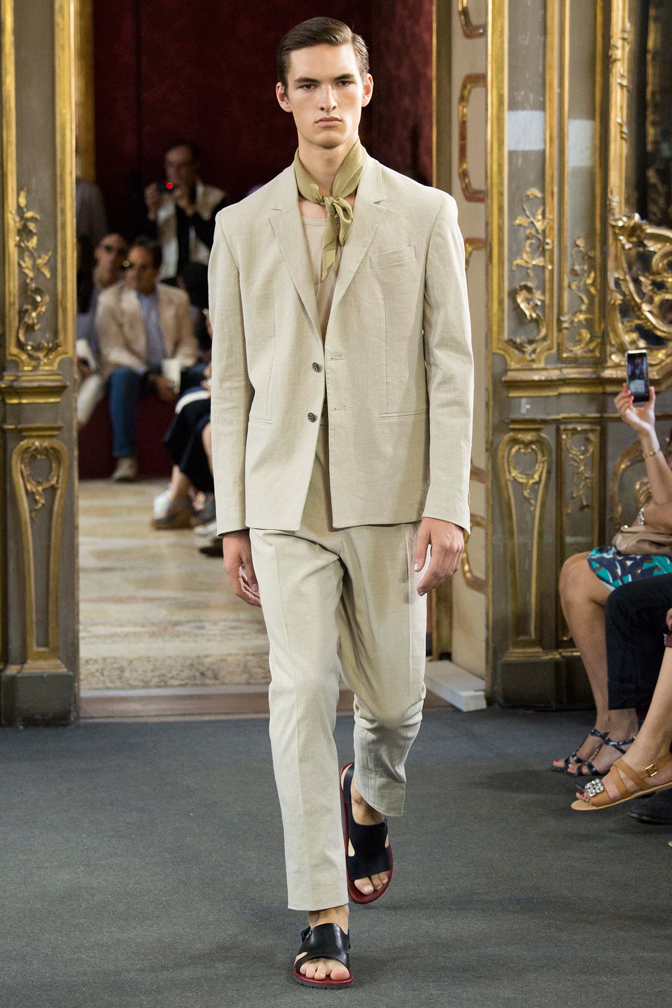 Corneliani, ultimate luxury designer shows his new collection Spring/Summer 2016 Fashion Show in Milan. Particular elegance, designer teaches summer sets knits, perfect tailoring, the finest fabrics for making those perfect tailored suits. Sandals are a plus that give a touch of conformity and coincidence. Where the weather can change vary by Corneliani finest shoes. It was a great night for the designer, knowing that it is the king of finesse.
