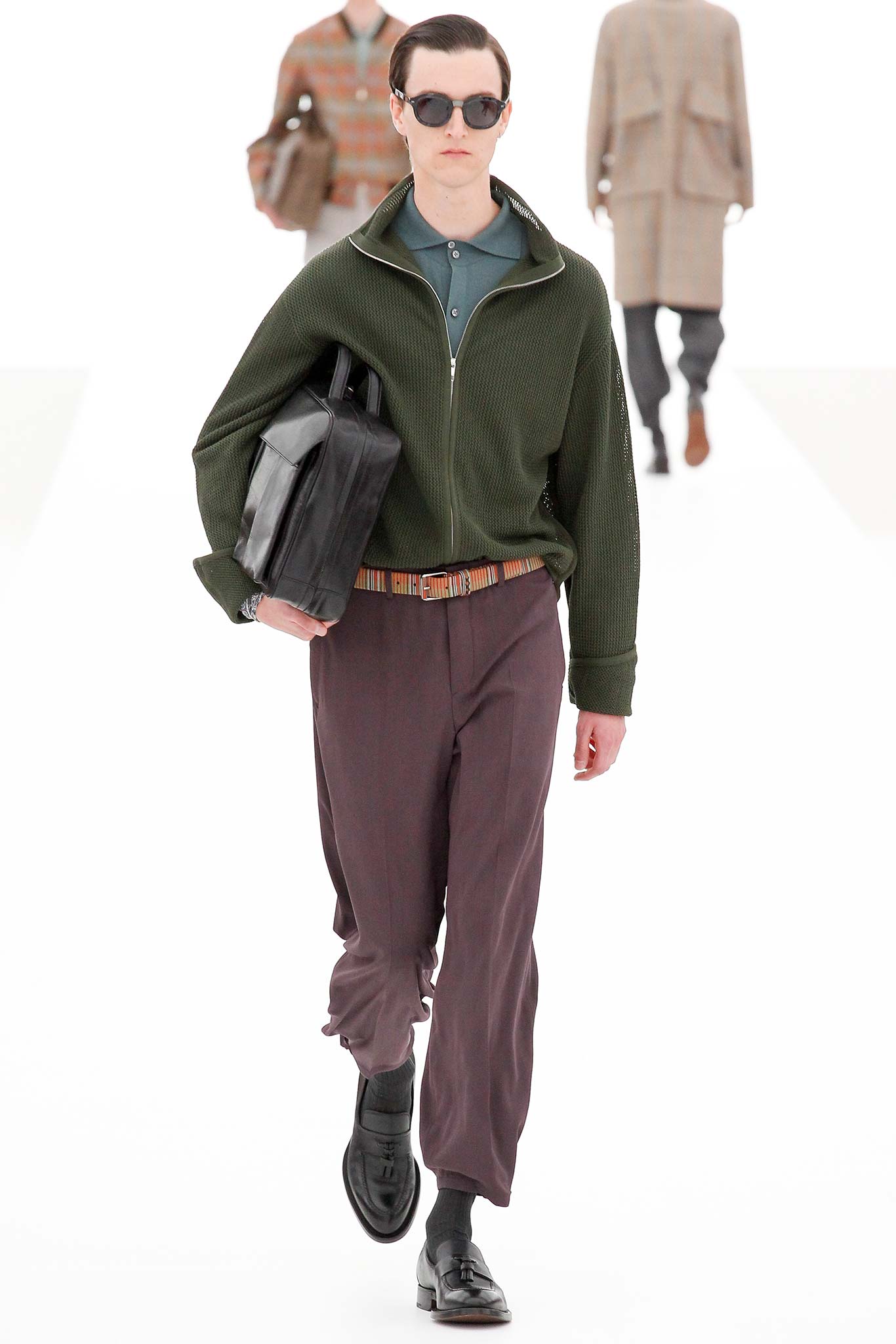 But the true breath of fresh air in this collection was the final series of all white looks. It was almost as if Pilati had ripped out the semi-sheer lining of a few of Zegna’s famed suits and reworked them to stand on their own two feet. These beautifully constructed ensembles, which blended in seamlessly with their equally lightweight shoulder bag accessories, were finally kept from flying directly up into fashion heaven by some sturdy urbane black footwear.