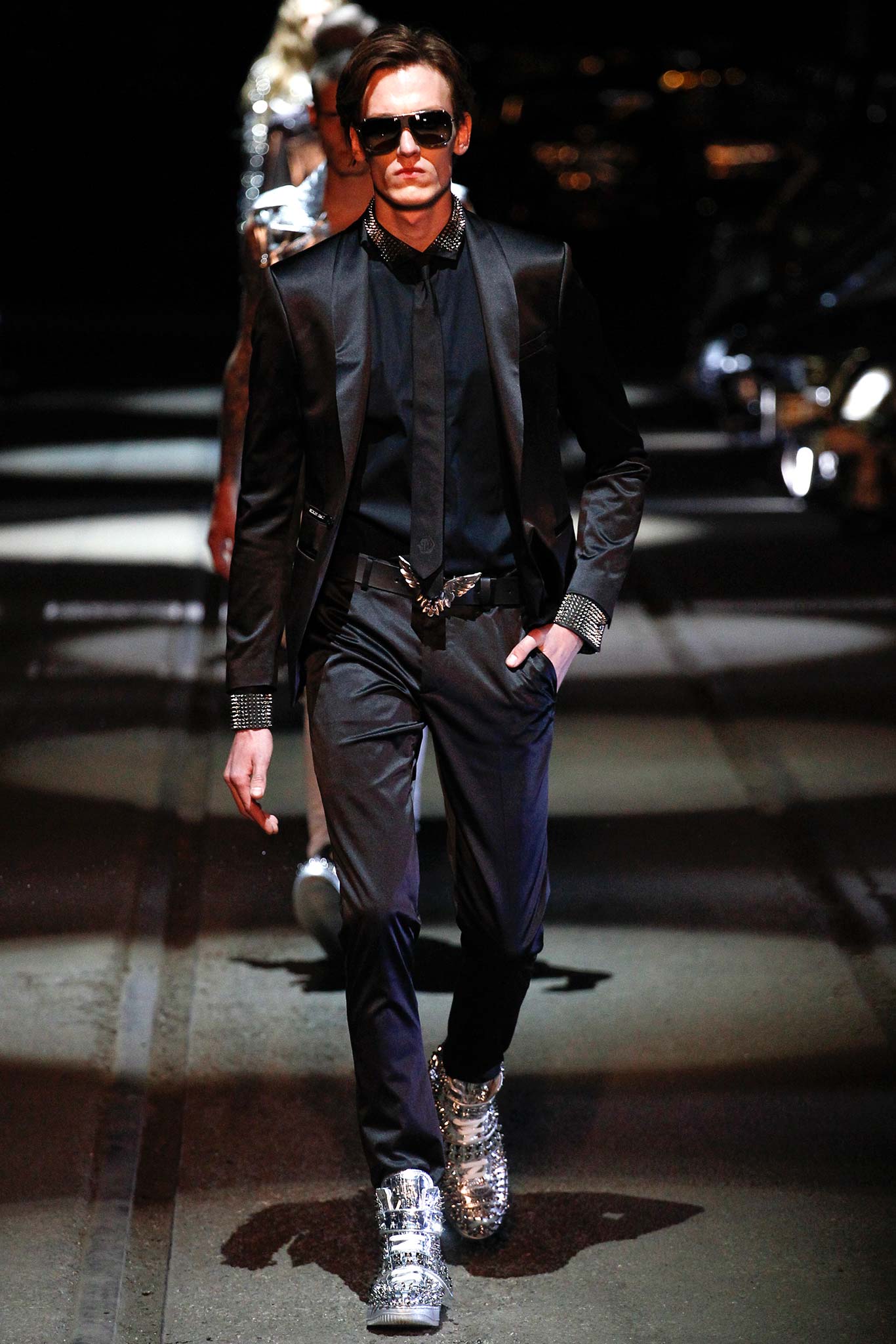 Iconoclast or crass? That depends where you’re coming from. For sure, though, Plein has shouldered his way inside the gates of Milan fashion week through force of ambition and serial entrepreneurialism. His shoe business alone has gone from nothing to 60 million euros per annum in four years. But this season’s big-budget (2 million euros) production was the idea, he said, of his girlfriend.