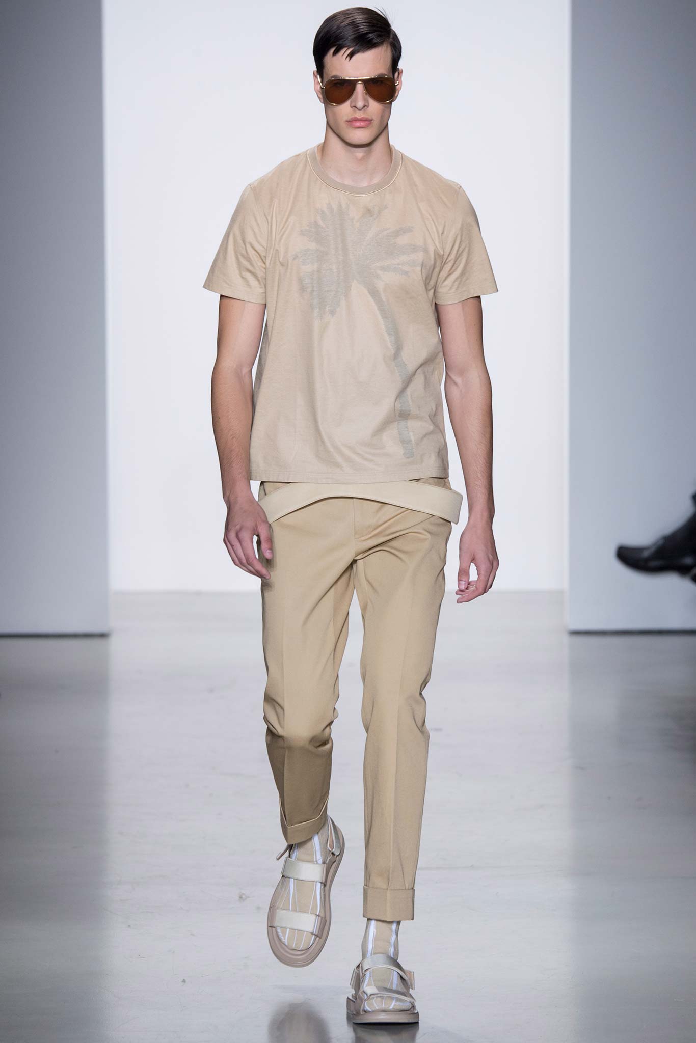 “A Few Palm Trees,” the tongue-in-cheek title of a self-published 1971 book by California artist Ed Ruscha, provided one of the emblematic print motifs for Italo Zucchelli’s latest men’s show for Calvin Klein, and its rather forced titled, “Graphic Heatwave.”
