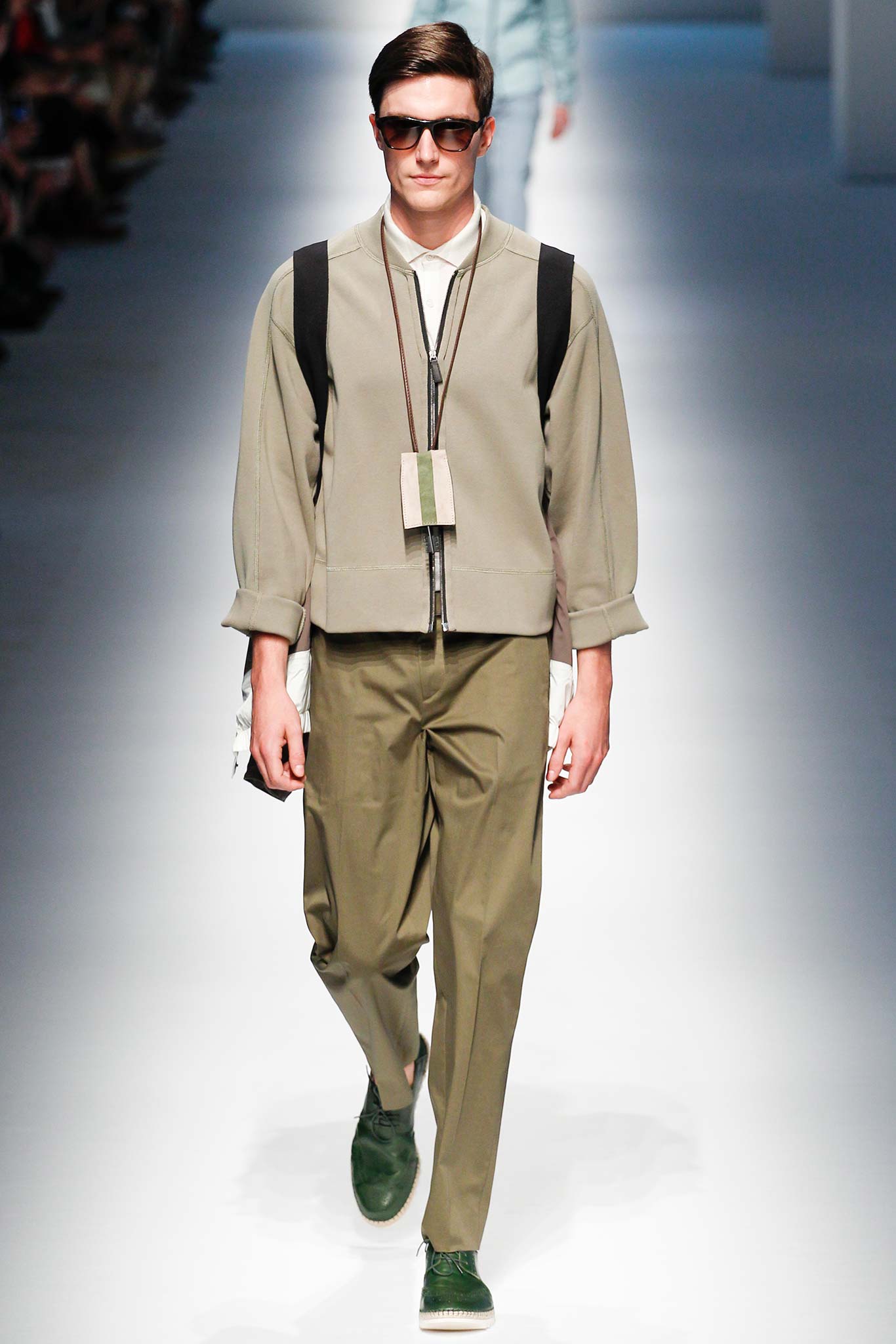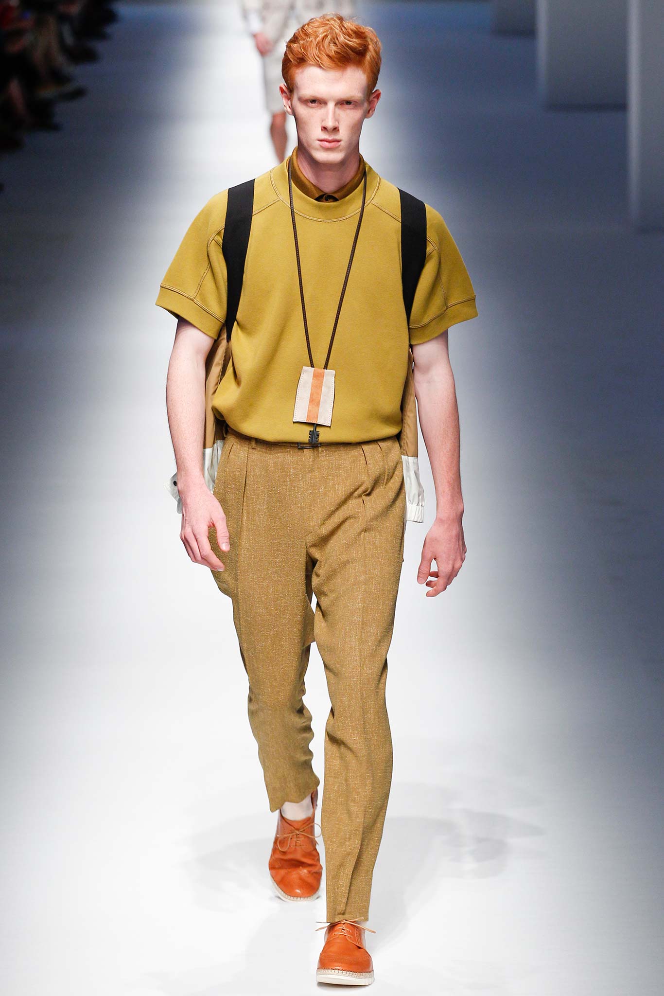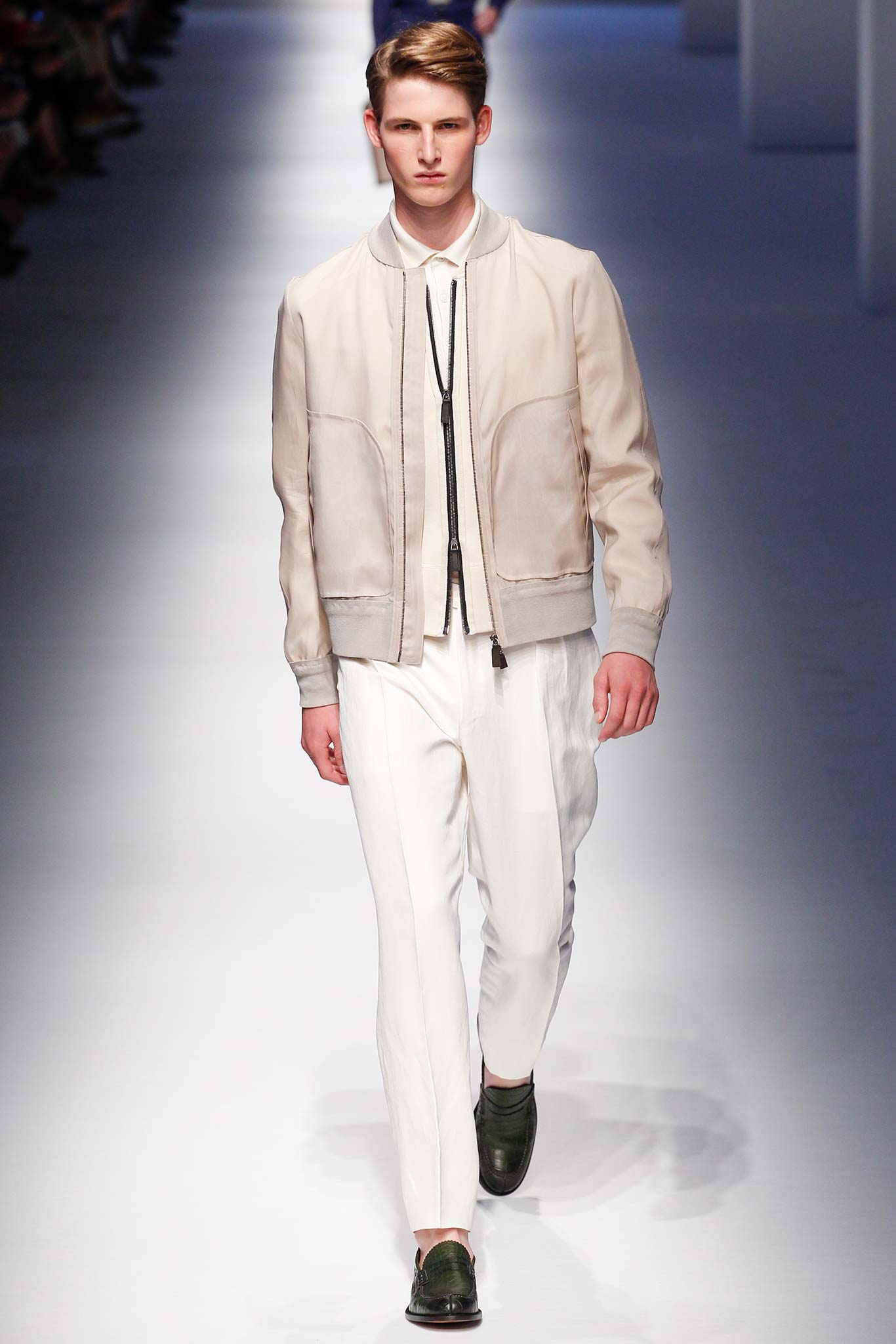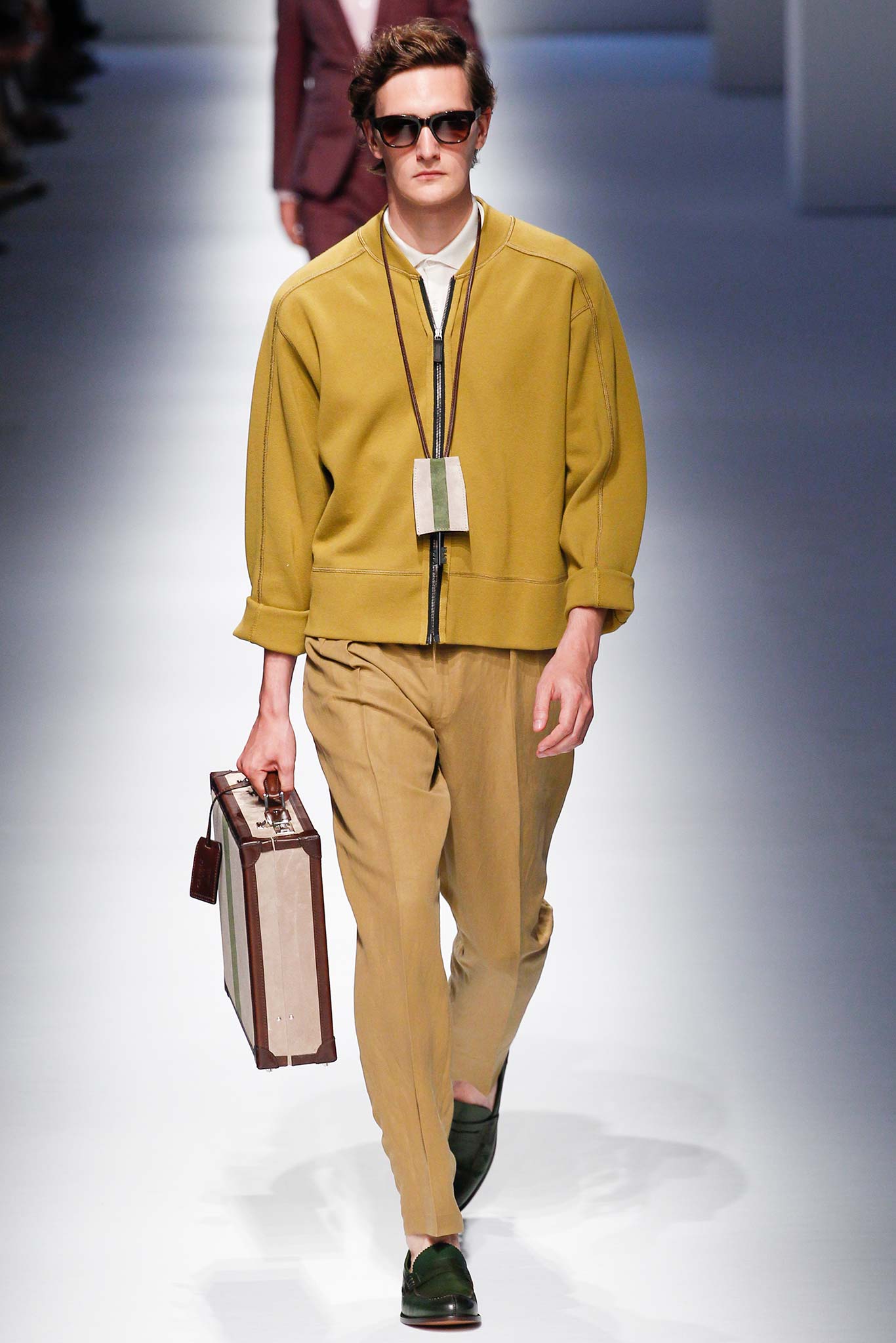 Pompilio also proved that he is plugged into what is trending in menswear. This was seen in his faux denim ensembles. A number of brands in Milan have been trying to trick their audiences by creating pieces that look like denim but are crafted out of jacquards or printed onto cotton. At Canali, the dark denim was crafted from a cool wool and linen blend, making it both urban and elegant.