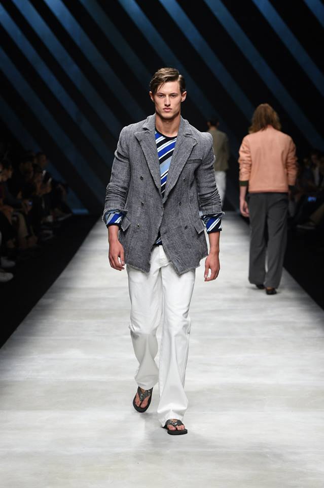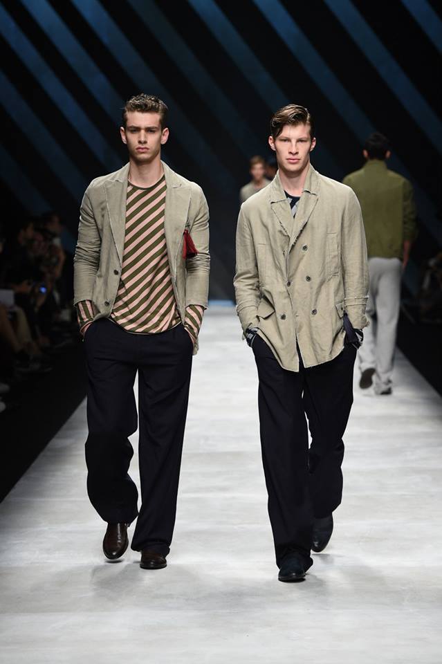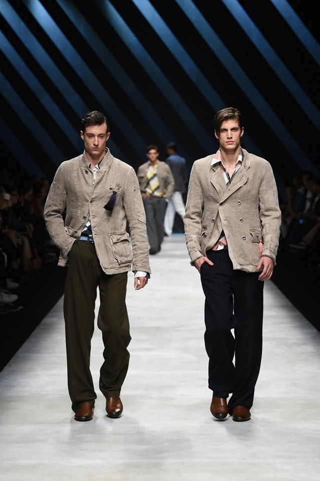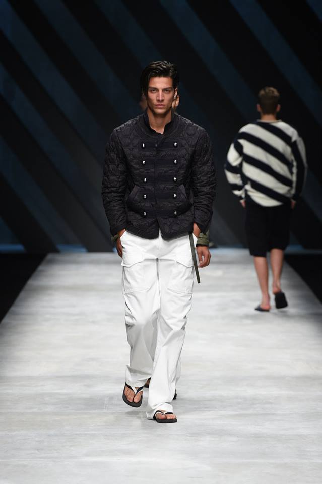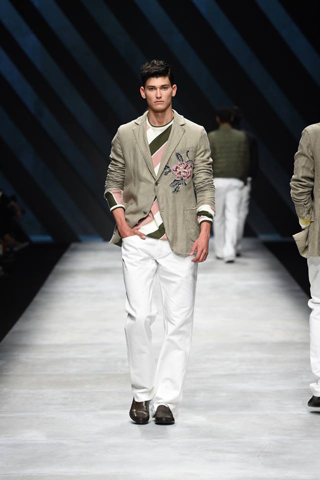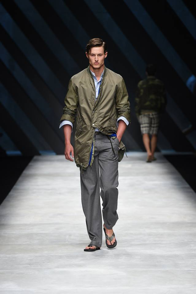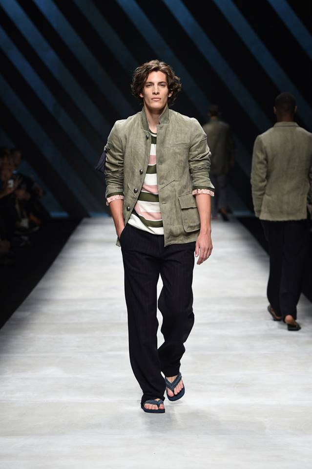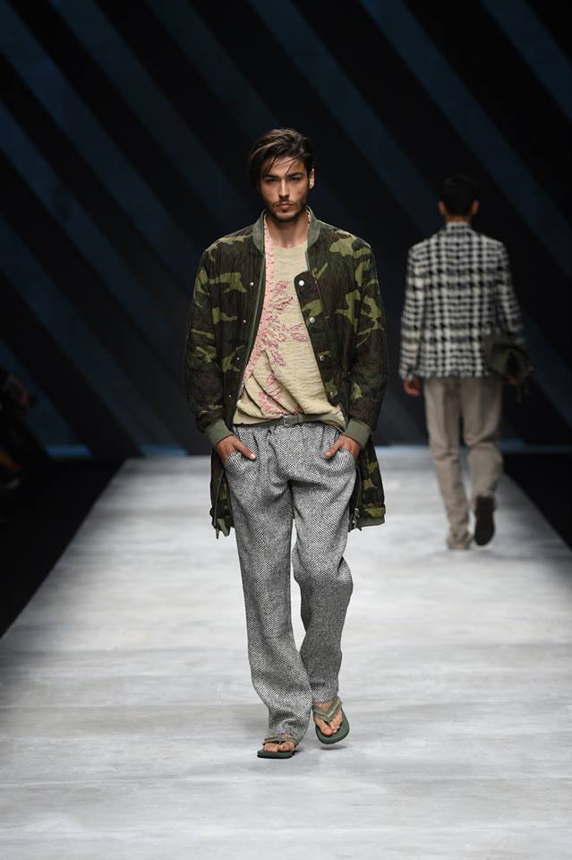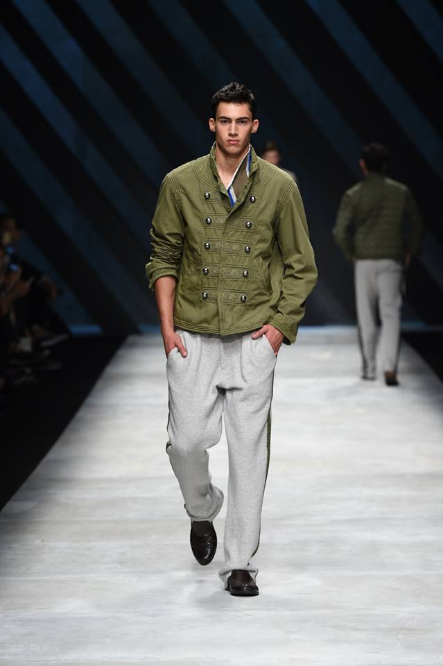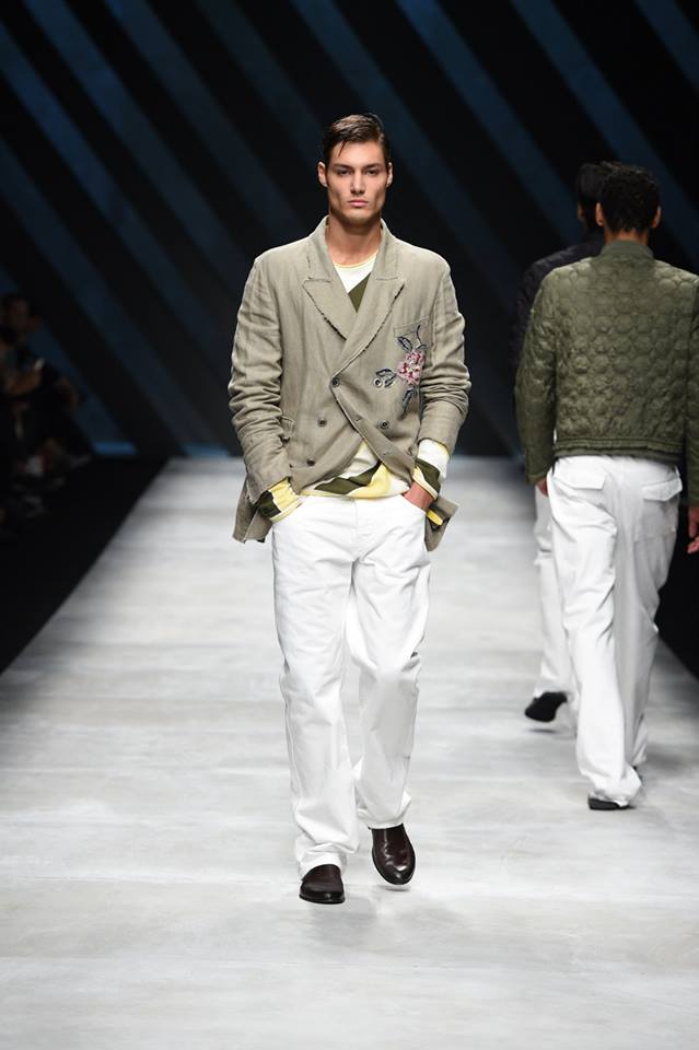 Neo-army inspiration and natural materials for Ermanno Scervino‘s Spring Summer 2016 collection. Our gentleman abandons himself in a glamorous dégagée dimensions where military inspirations meet the sartorial world, resulting in unexpected combinations #ScervinoLive