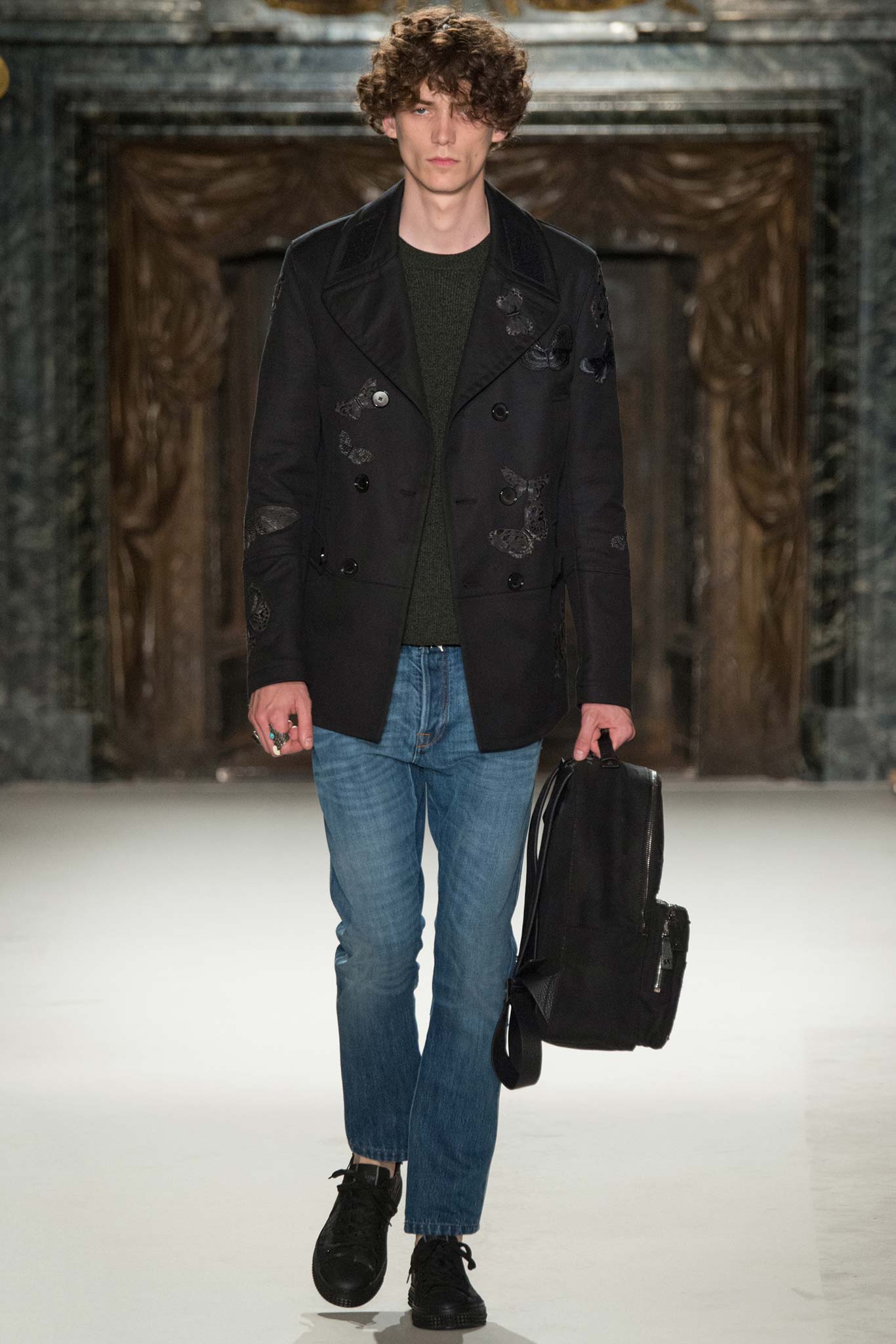 Five-pocket jeans, Hawaiian shirts, souvenir jackets with textures and decorations, become pages of a thrilling diary. While denim – the textile of choice for contemporary storytelling was given a couture interpretation through the unique savoir-faire of Valentino’s ateliers.