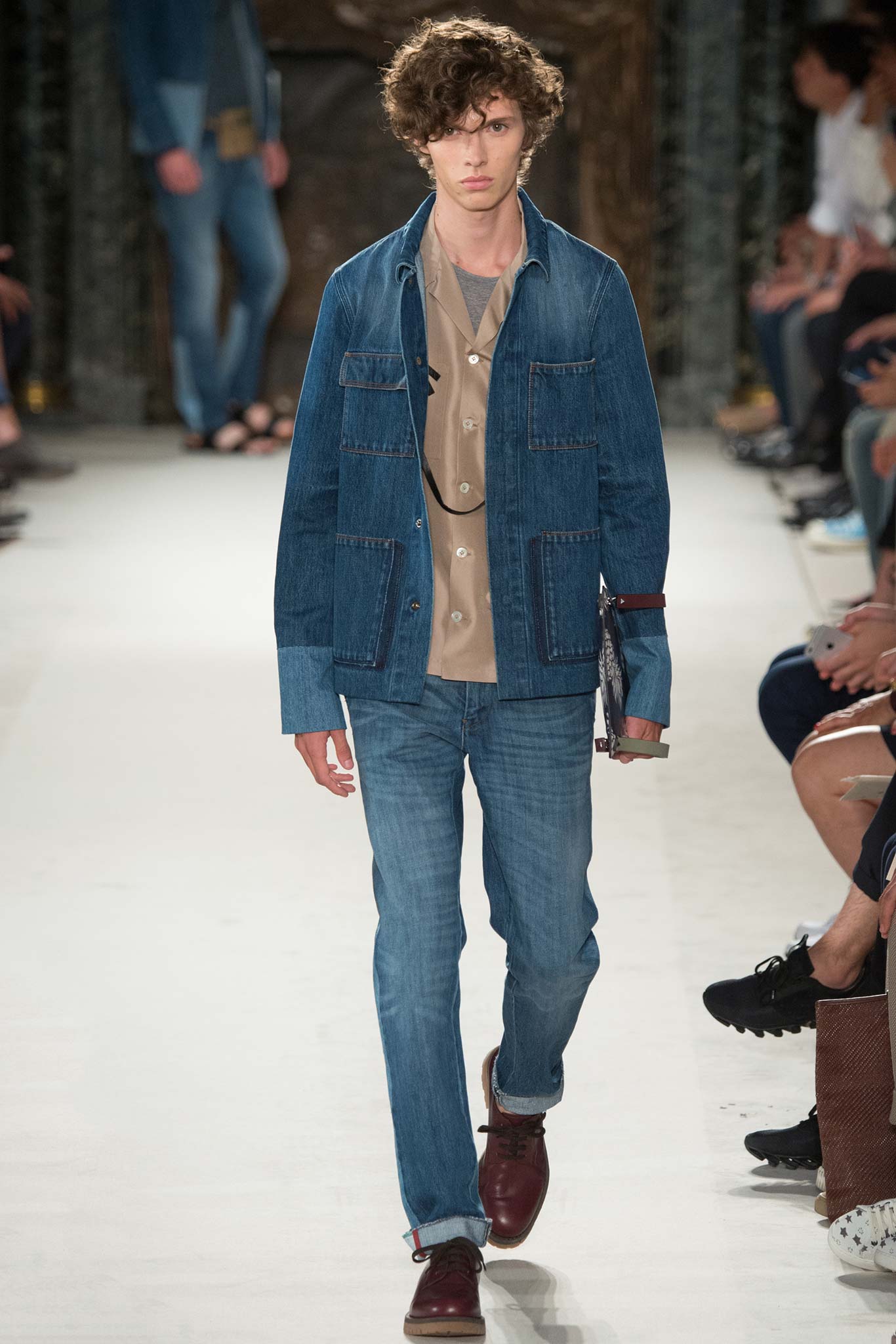 Five-pocket jeans, Hawaiian shirts, souvenir jackets with textures and decorations, become pages of a thrilling diary. While denim – the textile of choice for contemporary storytelling was given a couture interpretation through the unique savoir-faire of Valentino’s ateliers.