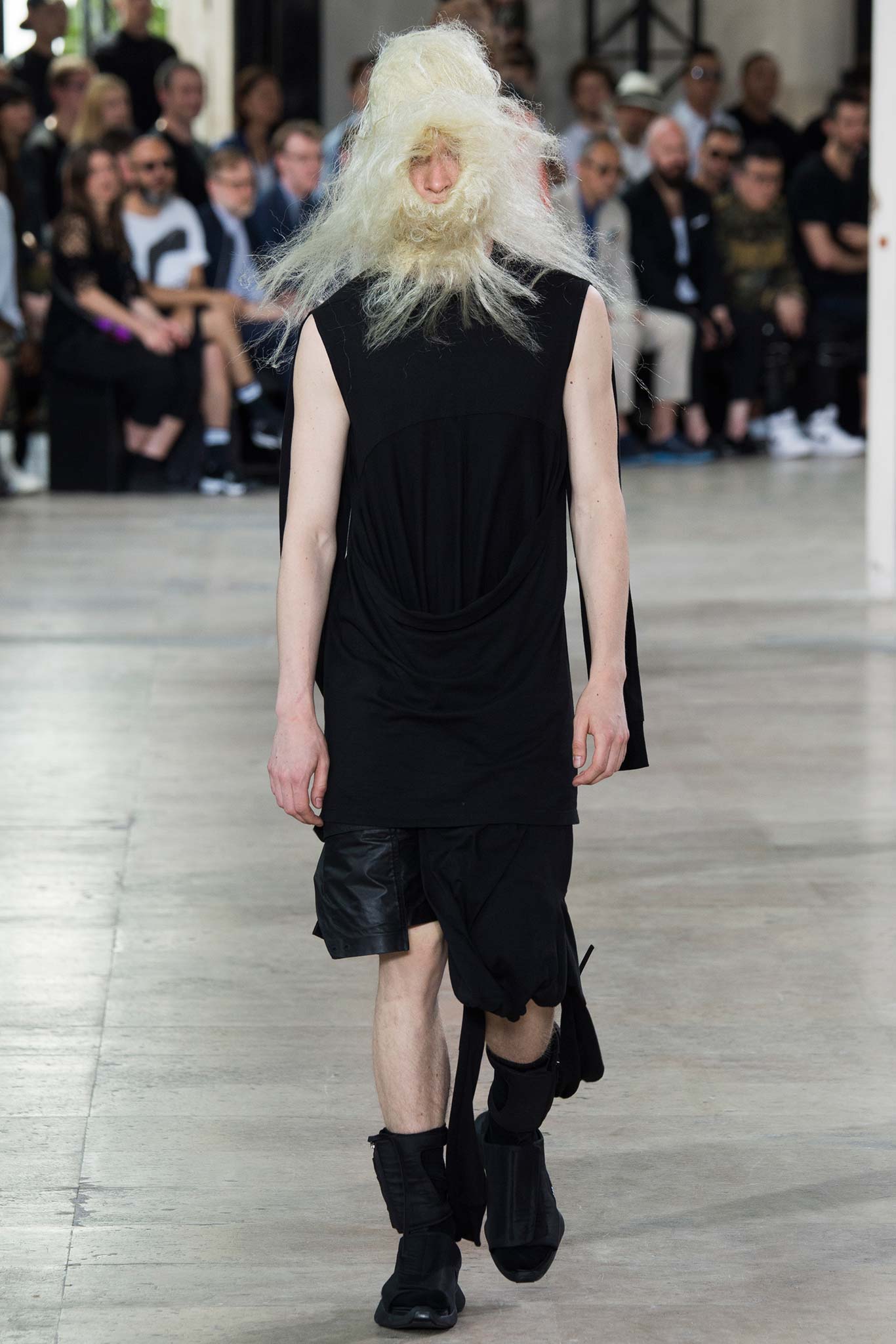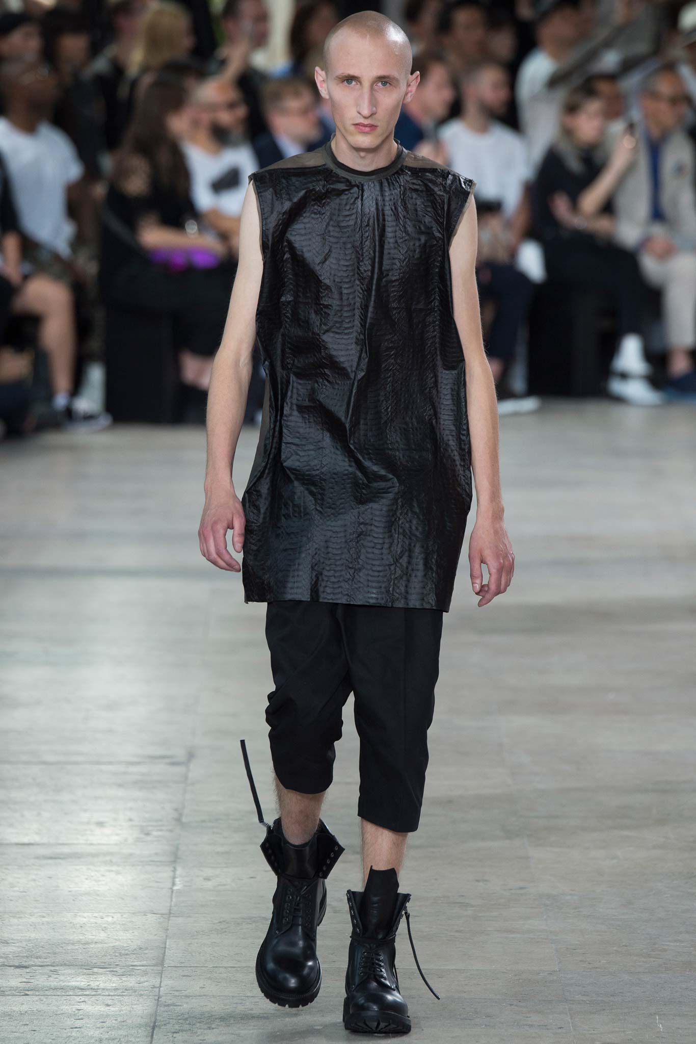 Rick Owens’s faintly military spring show suggested a new anti-establishment uniform, drawing inspiration from the designer’s fetish artists Steven Parrino and John Chamberlain.