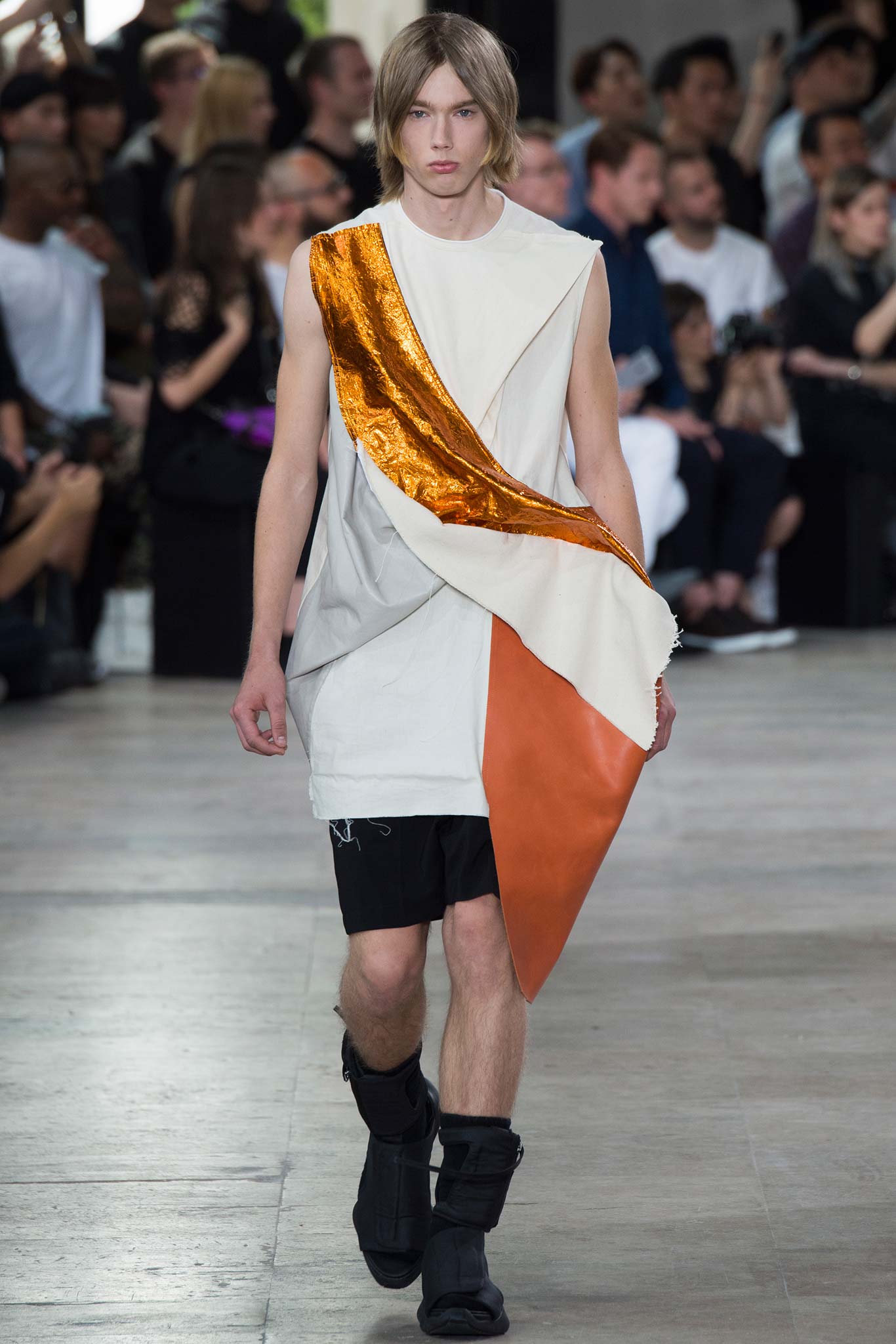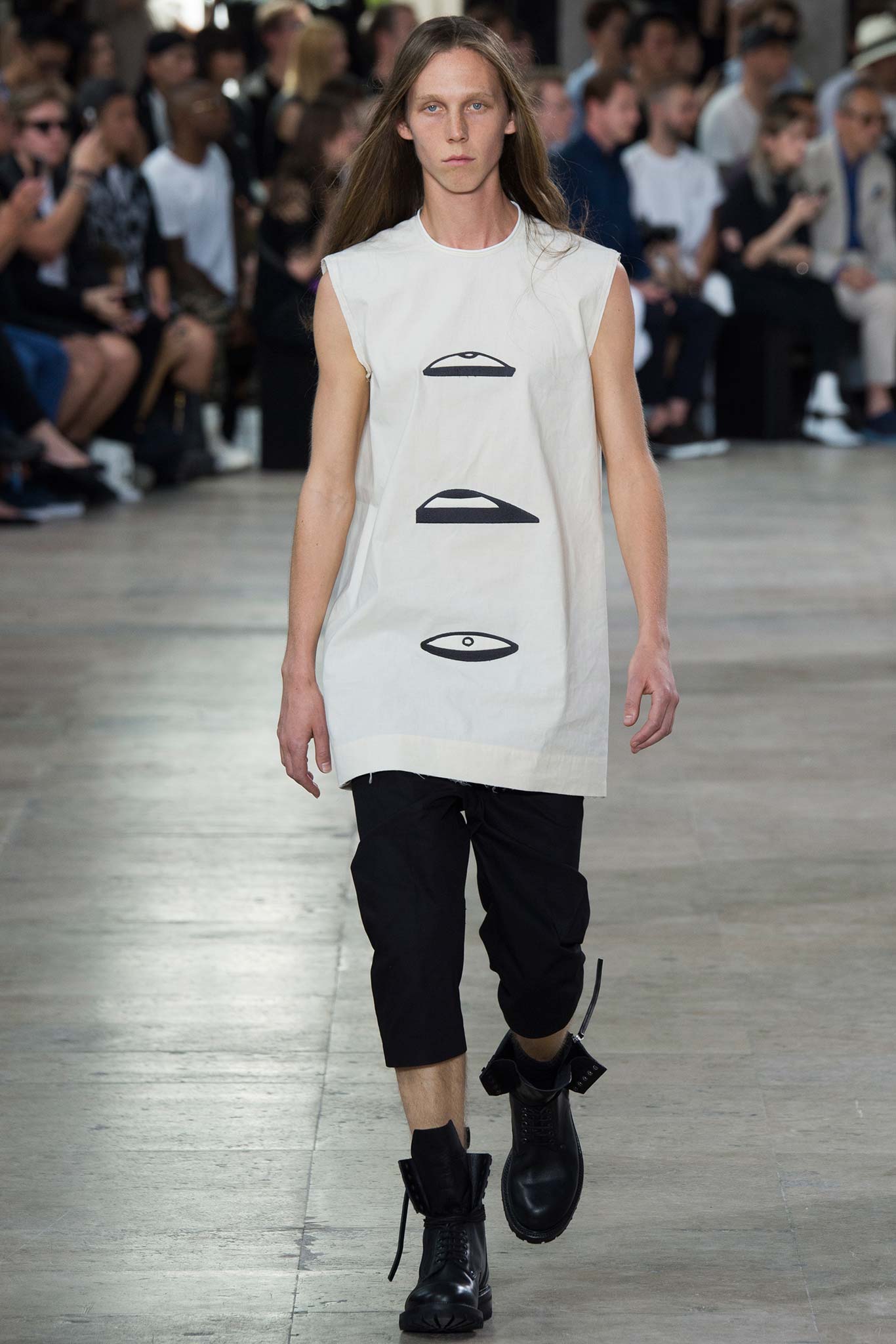 Rick Owens’s faintly military spring show suggested a new anti-establishment uniform, drawing inspiration from the designer’s fetish artists Steven Parrino and John Chamberlain.