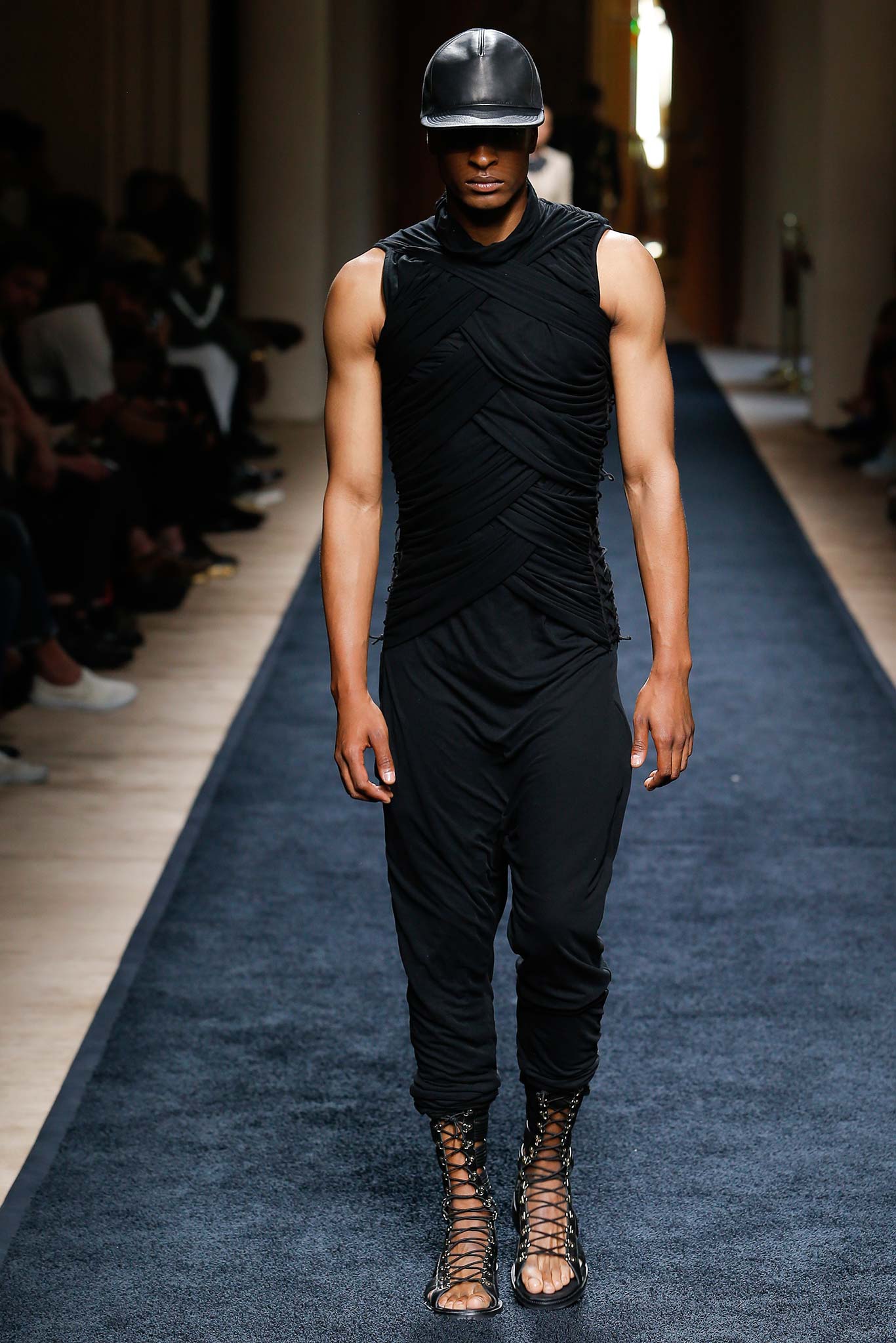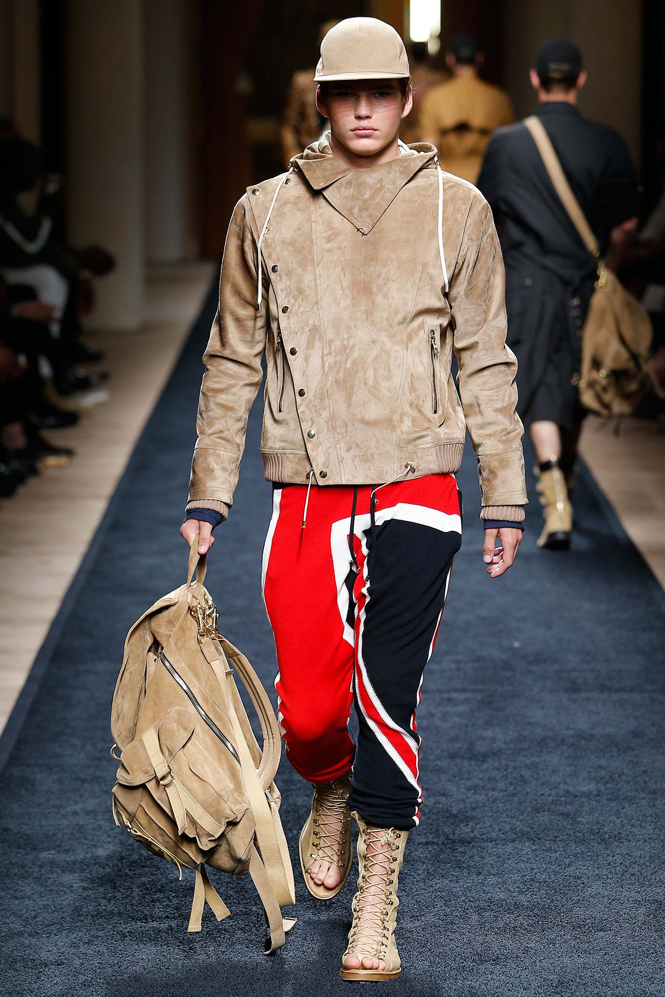 The journey metaphor has eclipsed even that hardy stalwart Wes Anderson to become the most-cited show spiel of the Spring ’16 menswear season. In Balmain‘s case, though, it seemed apposite. Rousteing has taken Balmain very far very fast, and he continues to gain momentum. His youth, his evident relish for the road he finds himself on, and his delightful openness would make him a marvelous protagonist for a fashion-set bildungsroman.