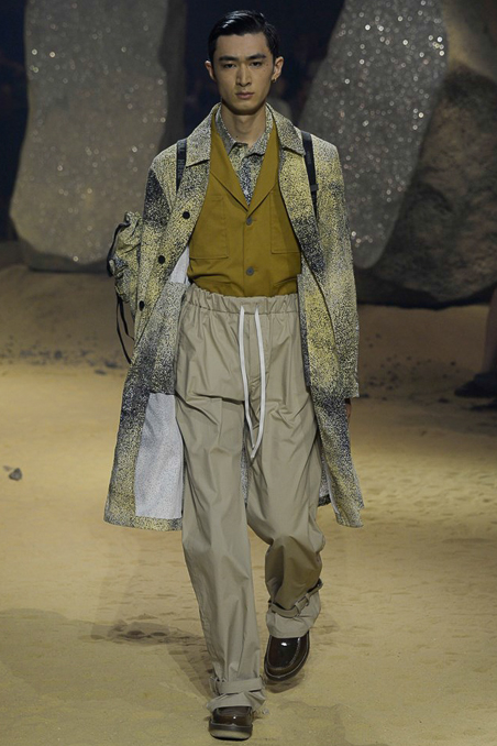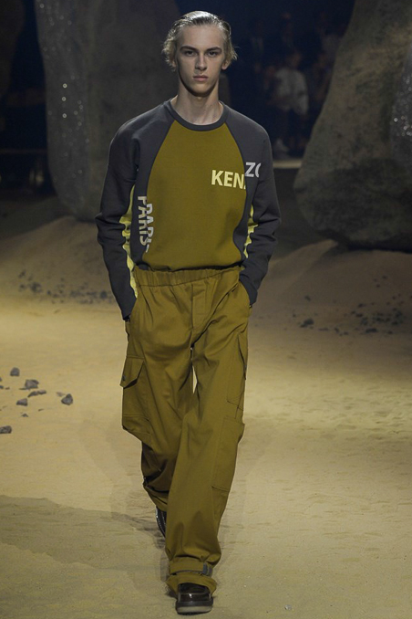 Guests who trekked across the concrete plains of northern Paris to the Kenzo show were hoping to find an oasis. Instead, they stepped into a rock-strewn desert. The parched landscape provided a striking backdrop for Humberto Leon and Carol Lim’s travel-inspired collection in dusty earth tones.