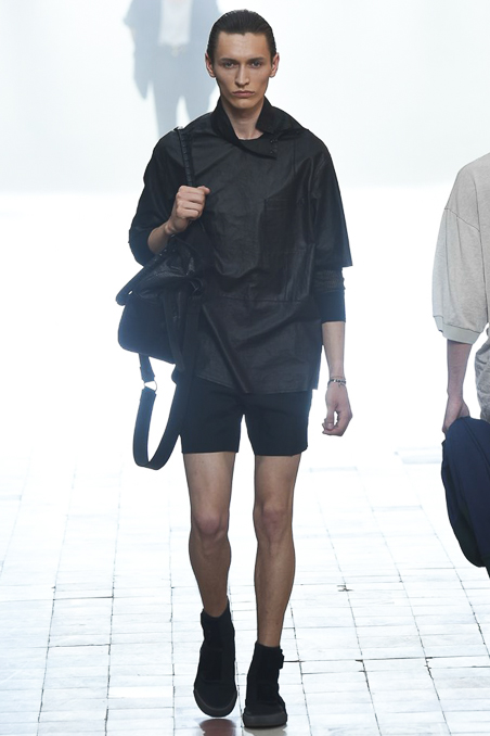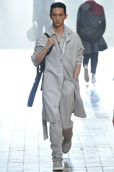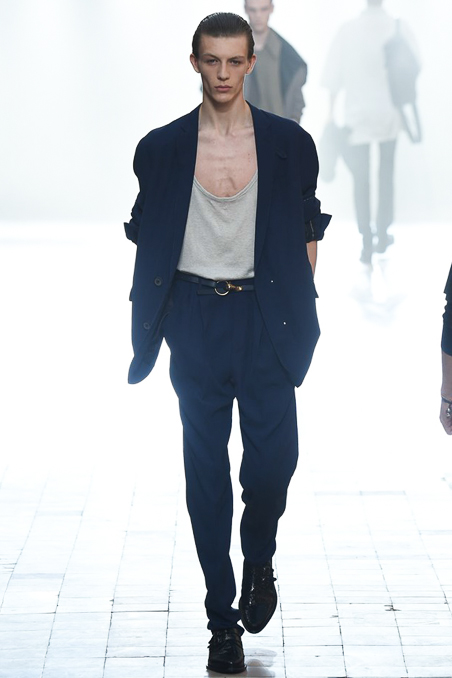 The smorgasbord of options included a variety of suit silhouettes – from linear to zoot loose – in an airy, wool-nylon blend with a slight sheen that billows and ripples luxuriously. Overcoats had the same relaxed, breezy feel, including ones in paper-thin leather bonded to cotton toile.
