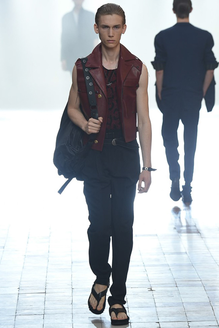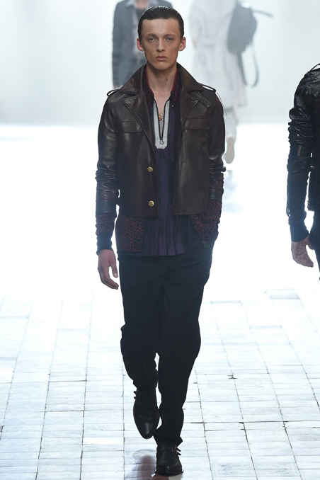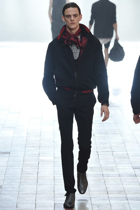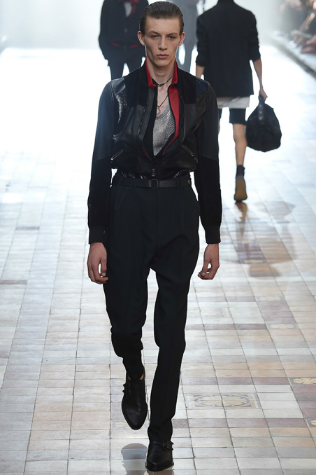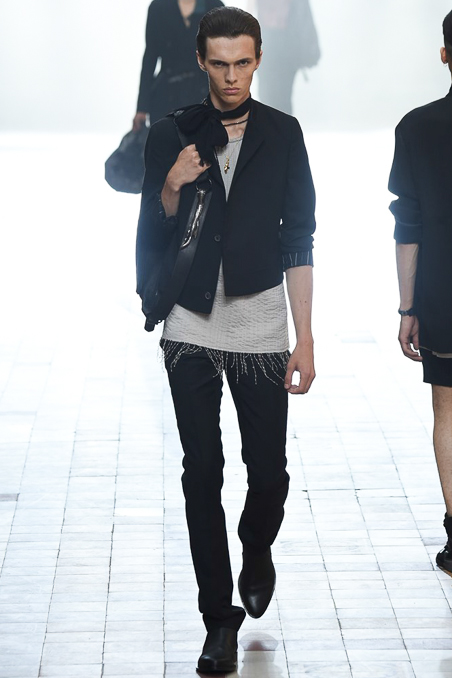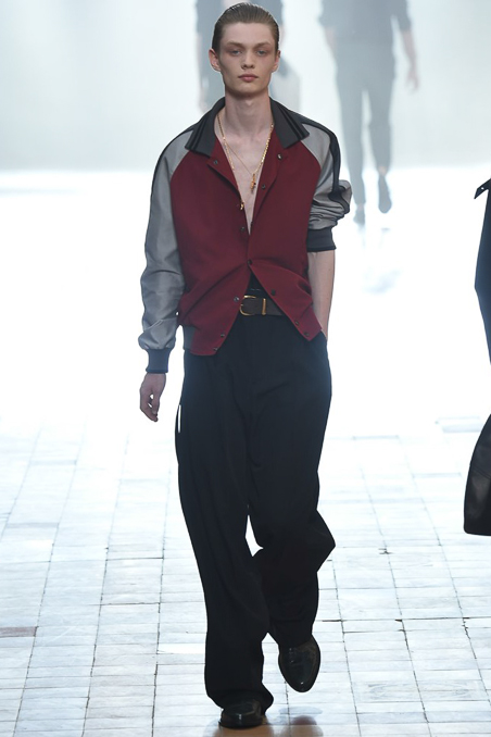 The collection did not stray from recent efforts, the dark palette vaguely dystopian; the silhouettes – high-waist pants, satin jackets, diner shirts – vaguely Fifties, and the attitude veering between rock star and haute bicycle messenger.