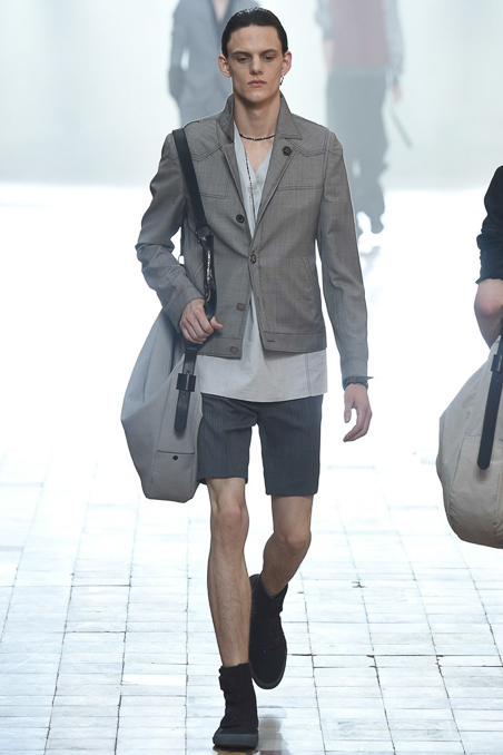 And so tank tops sagged low under slouchy suits; quilted vests dangled extra threads from each vertical channel, and utility details came etched in ragged stitches on a full canvas worker jacket. While the intense handiwork will surely be lost in an Instagram post, the two men view it as a way to stand out from the pack.