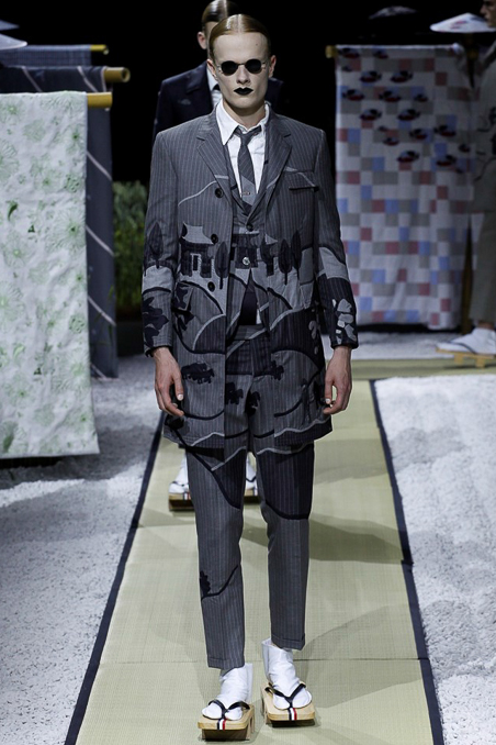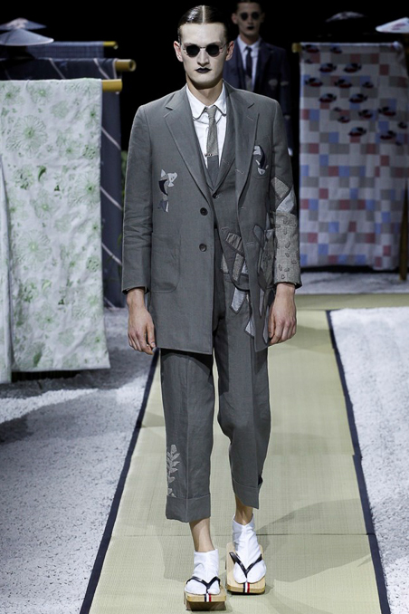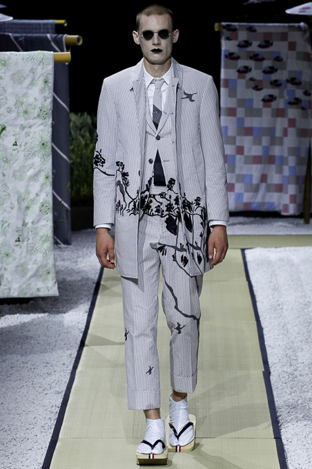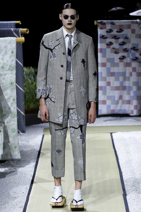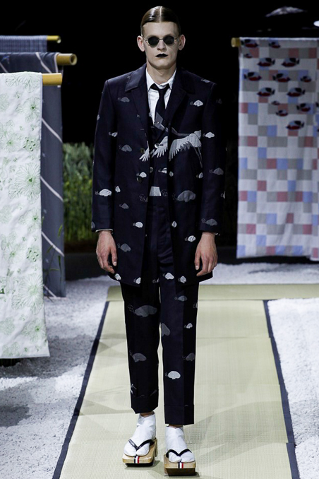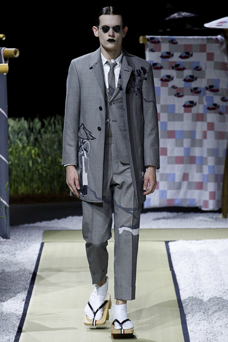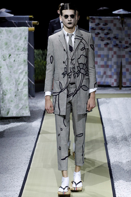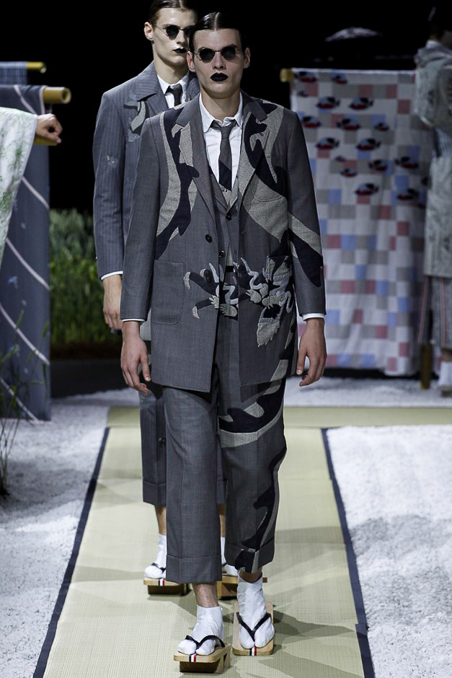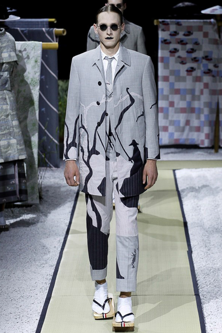 Thom Browne Menswear Spring Summer 2016 in Paris Fashion Week with Japanase influential designs.