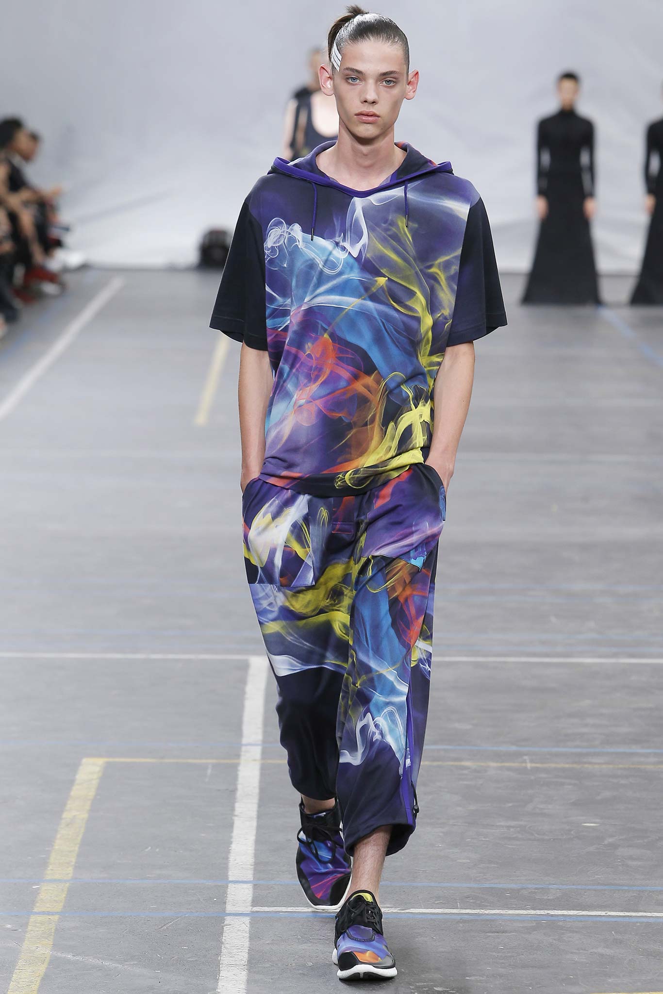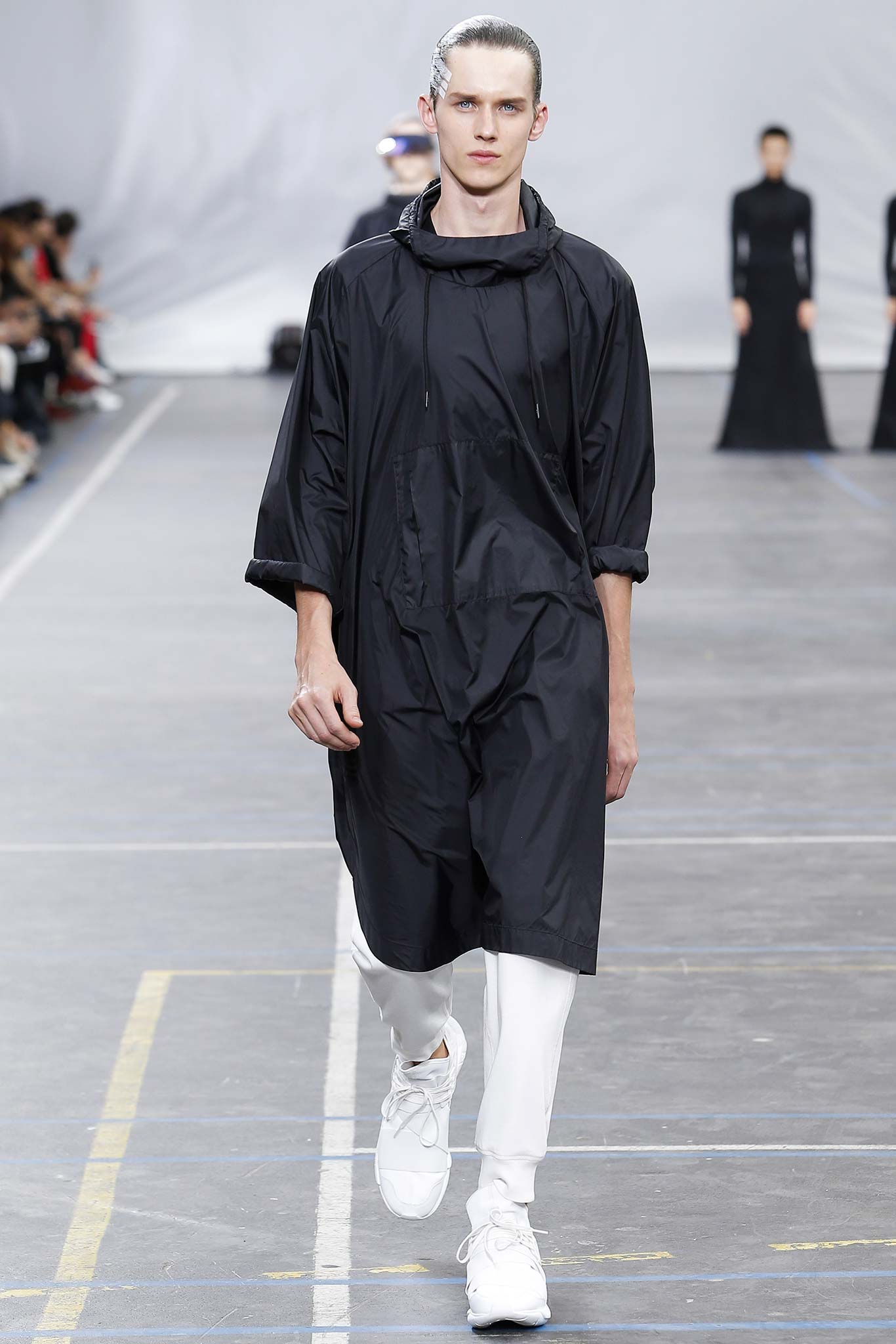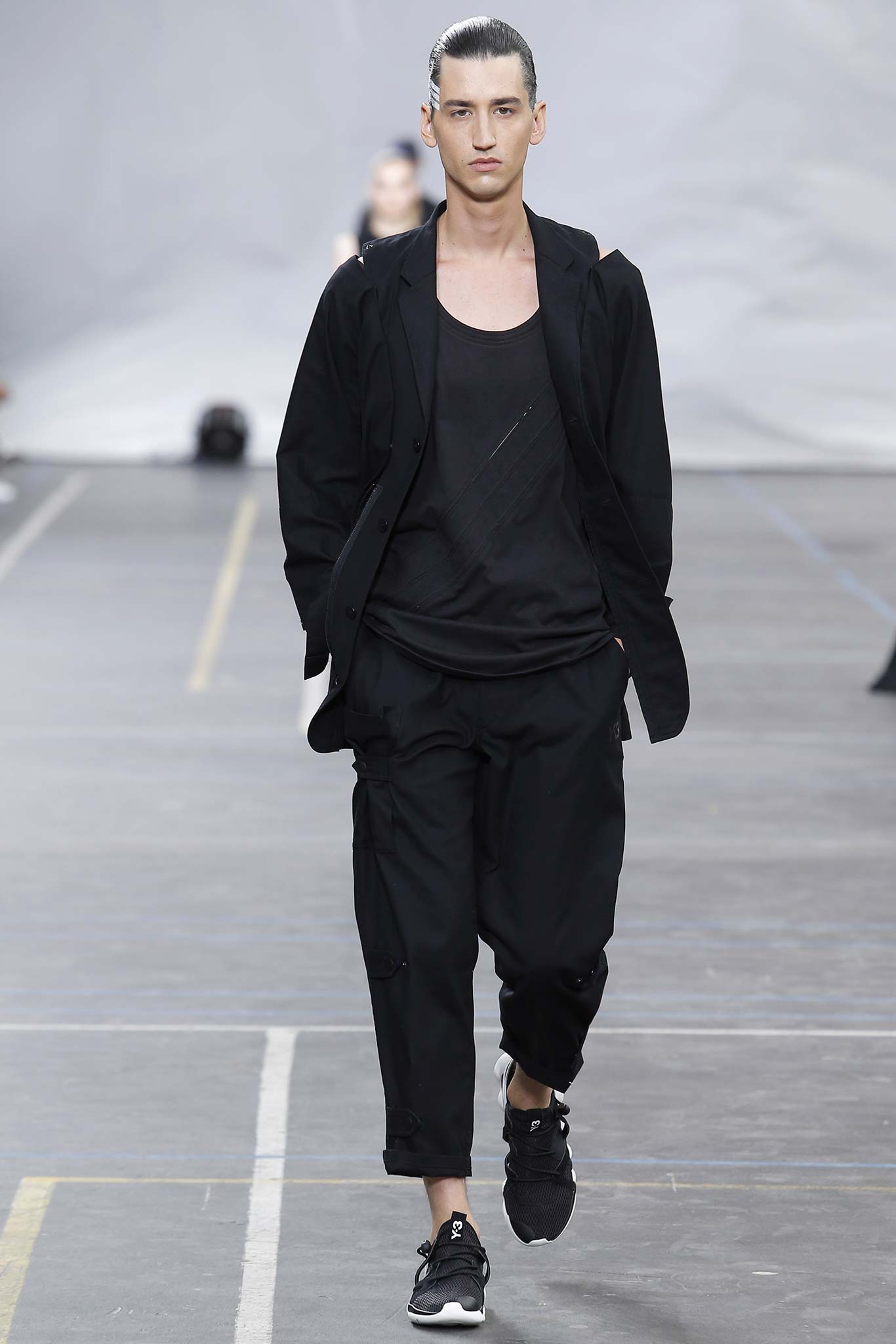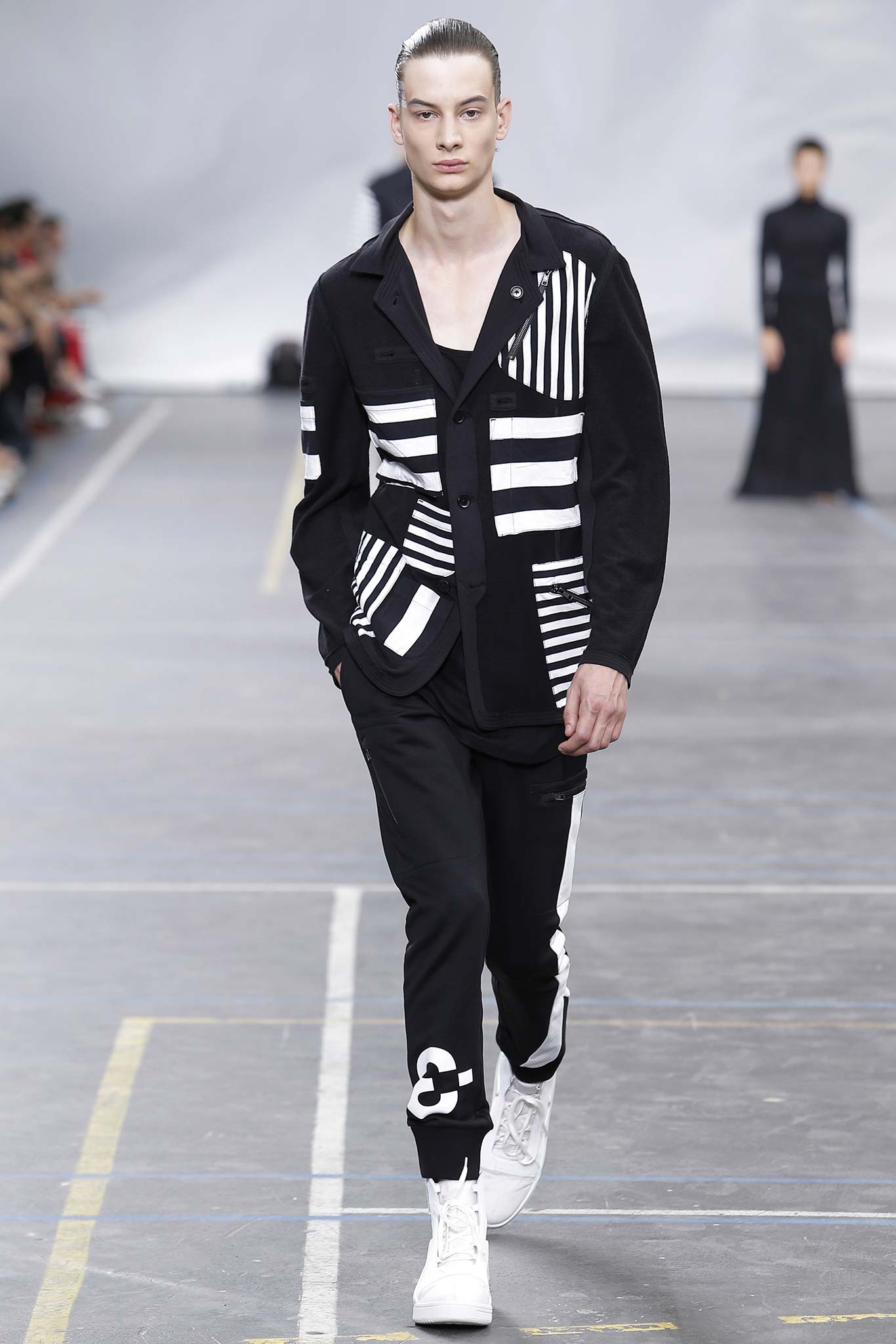 The minimal and dark Menswear collection from fashion designer Yohji Yamamoto in its alter ego of Y-3 Spring/Summer 2016 , exploring arquitech stripes, beautiful colorful fluid patterns and stunning collection by Mister Yamamoto.