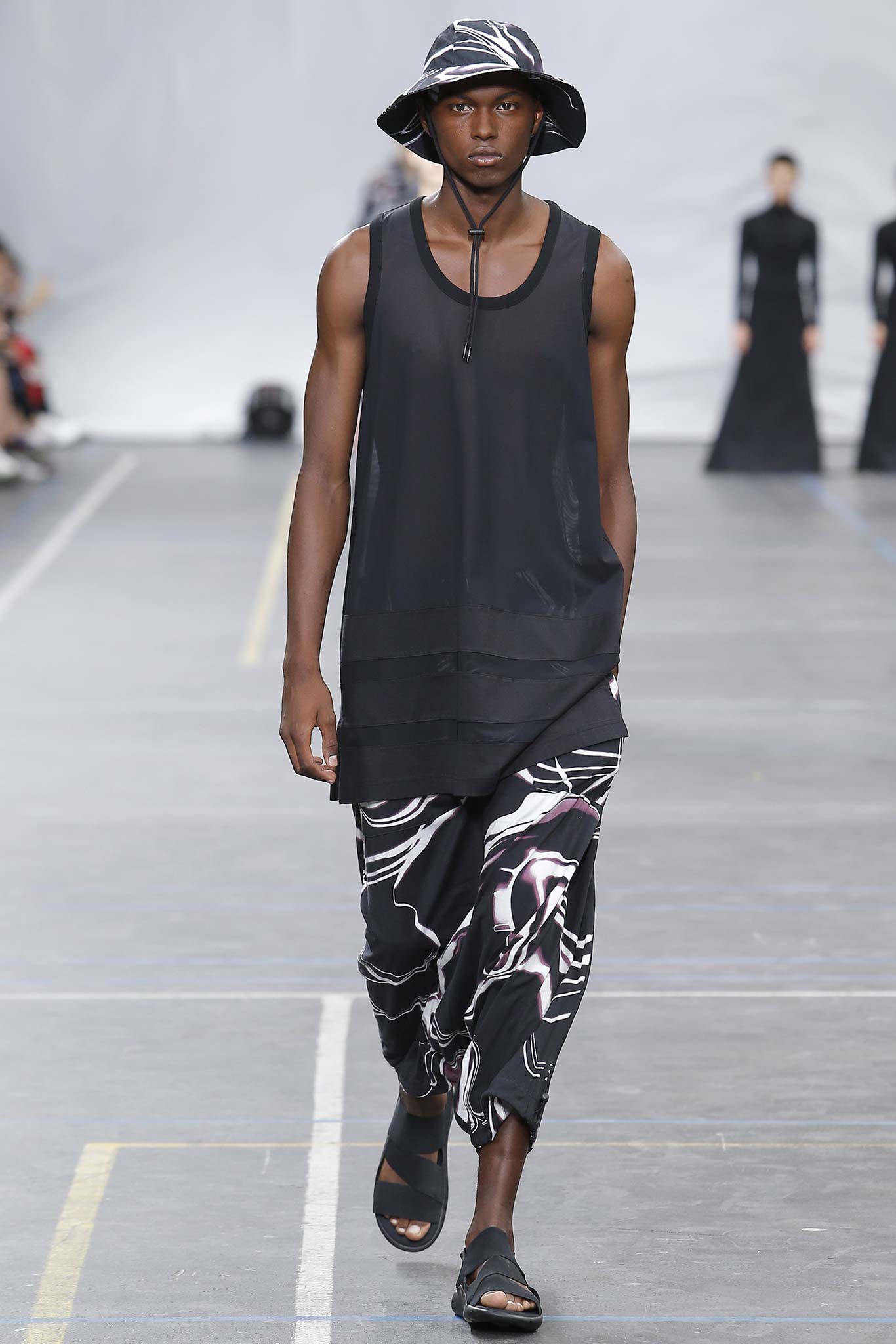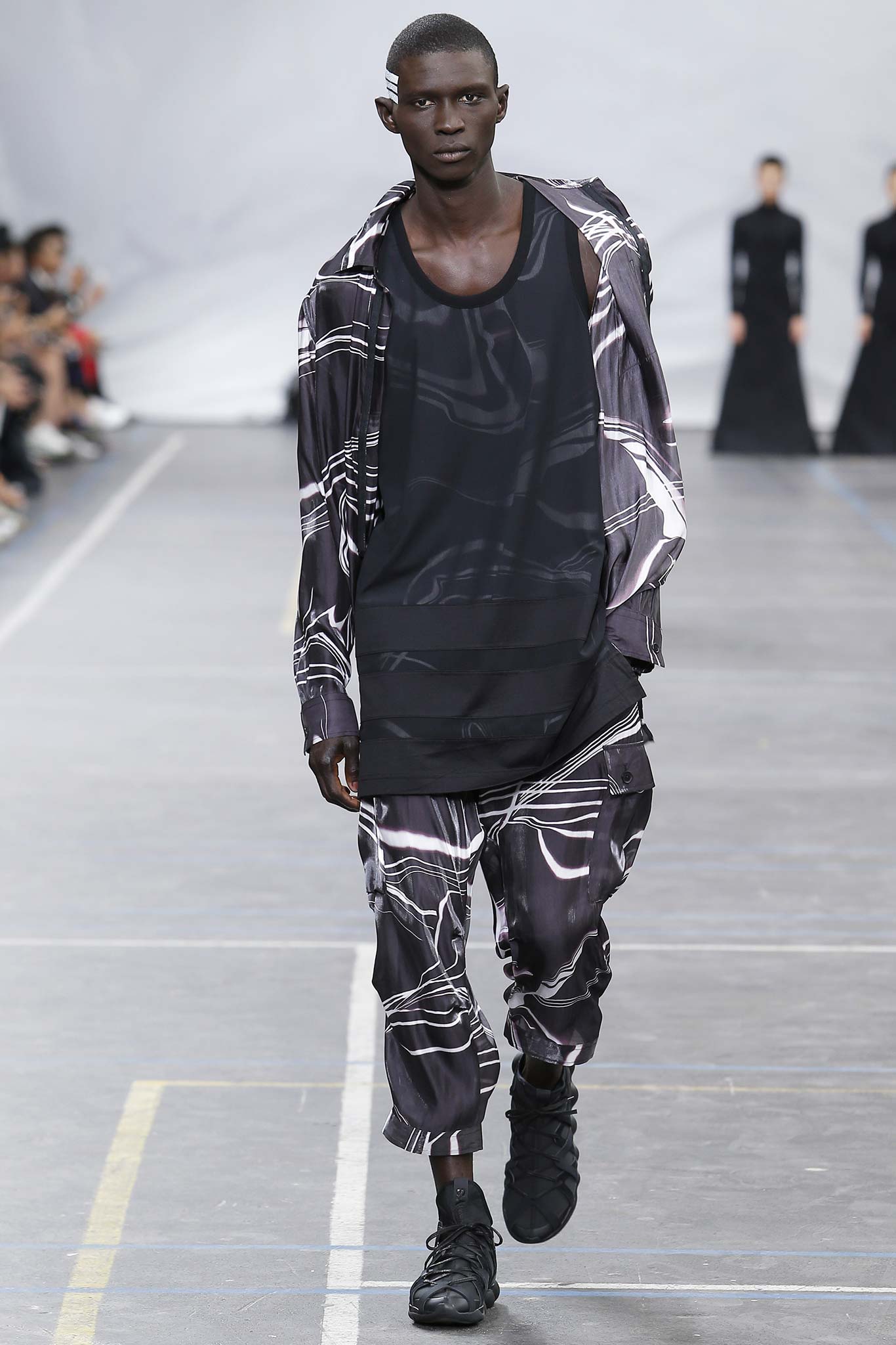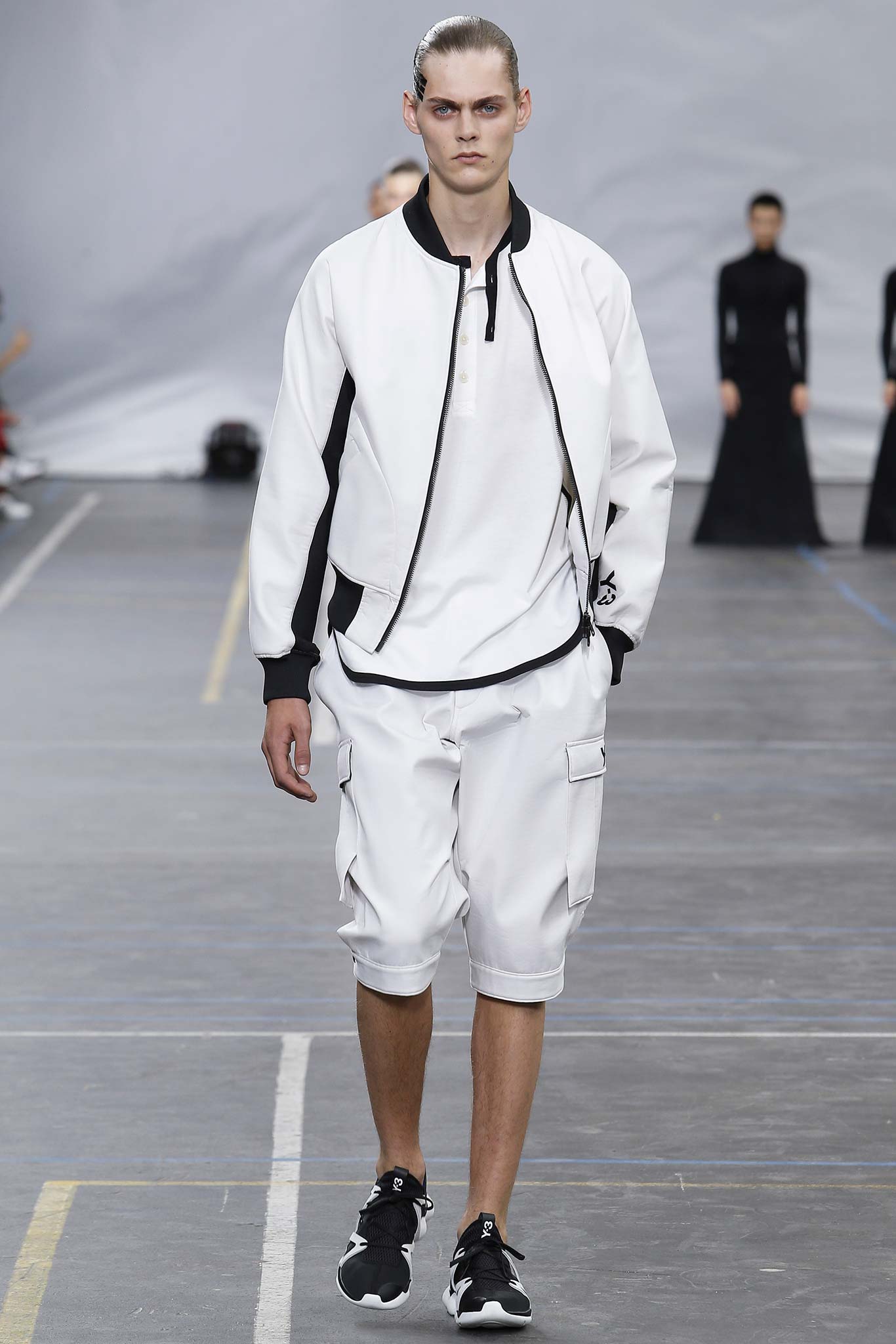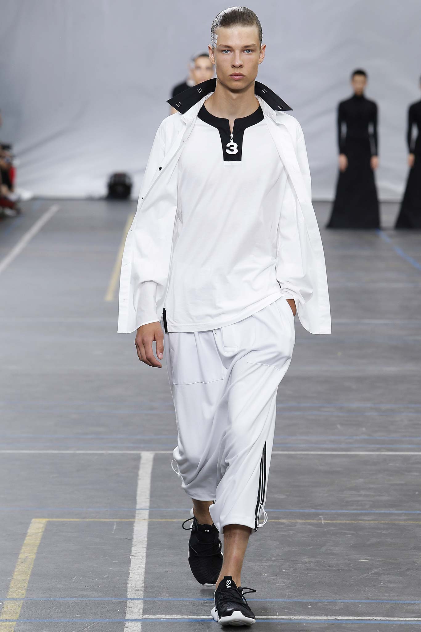 The minimal and dark Menswear collection from fashion designer Yohji Yamamoto in its alter ego of Y-3 Spring/Summer 2016 , exploring arquitech stripes, beautiful colorful fluid patterns and stunning collection by Mister Yamamoto.
