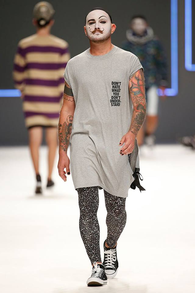 Brain&Beast unveiled its Spring/Summer 2016 collection during 080 Barcelona Fashion. With a disturbing inspiration, the fashion brand Brain&Beast presents its summer collection at 080 Barcelona Fashion, with clothes not only original and crazy,with big statements and quotes like “Don’t Hate What You Don’t Understand” a big call remain.