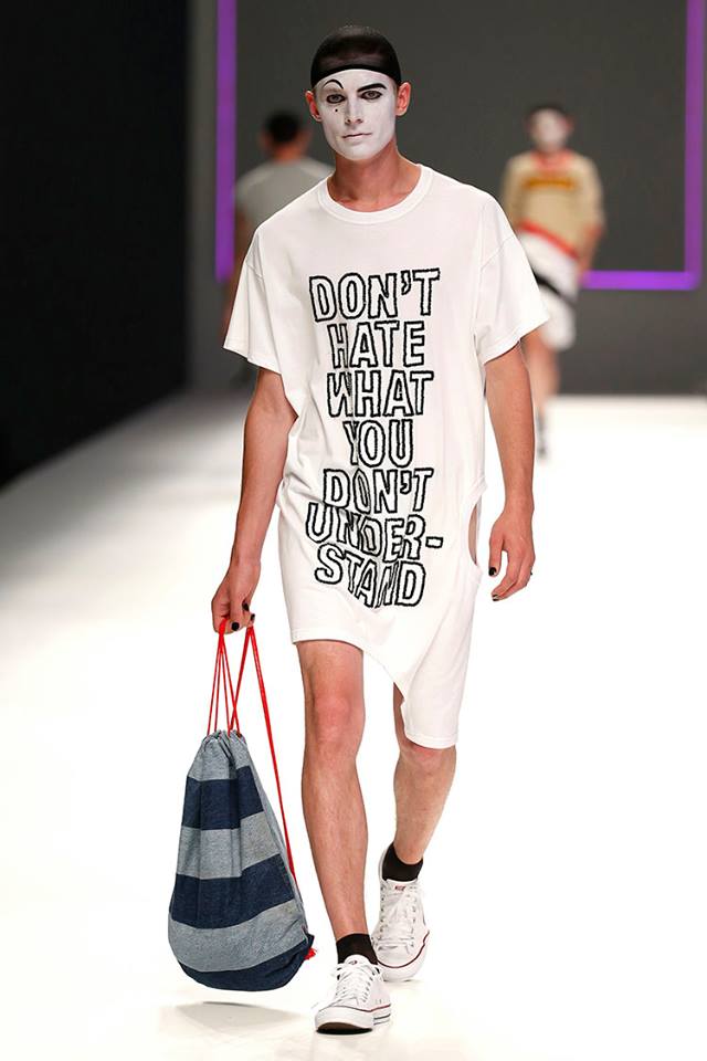 Brain&Beast unveiled its Spring/Summer 2016 collection during 080 Barcelona Fashion. With a disturbing inspiration, the fashion brand Brain&Beast presents its summer collection at 080 Barcelona Fashion, with clothes not only original and crazy,with big statements and quotes like “Don’t Hate What You Don’t Understand” a big call remain.