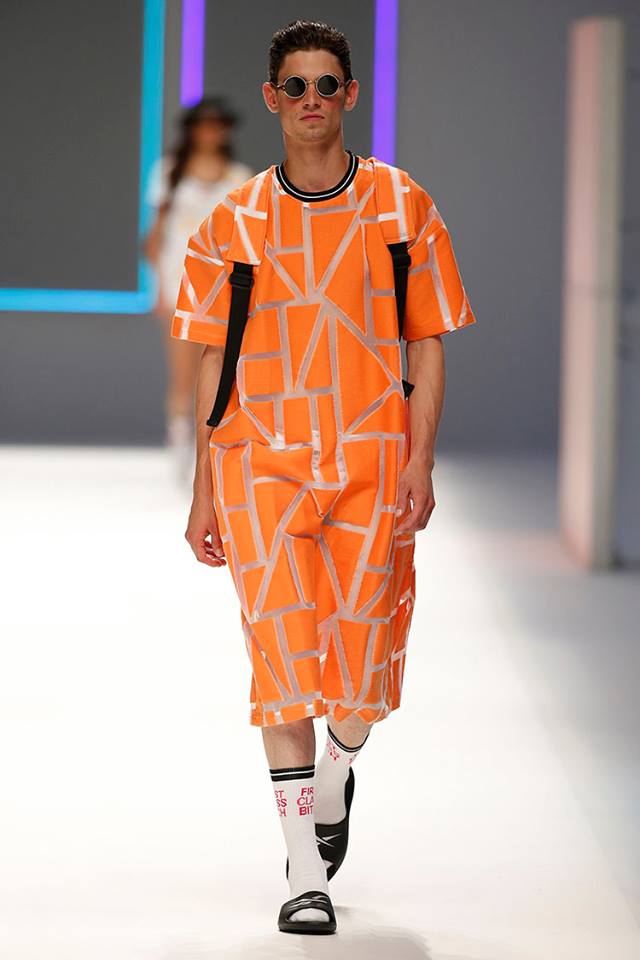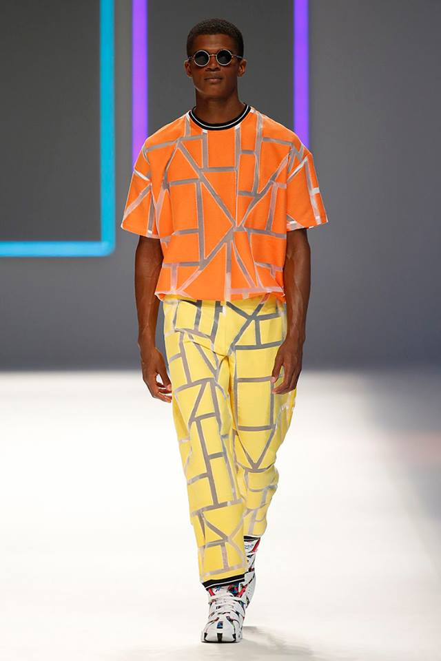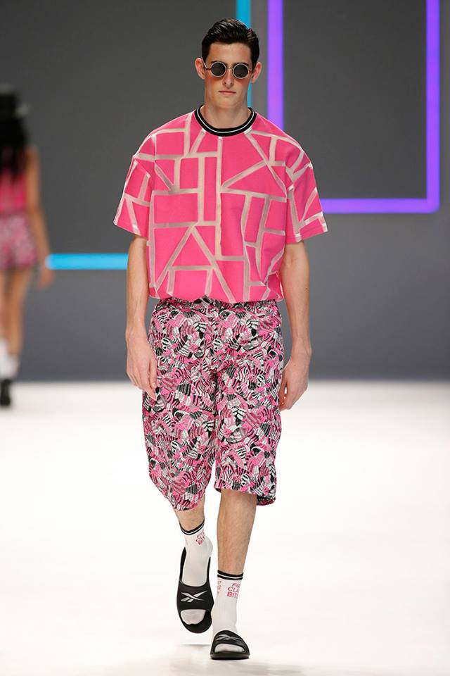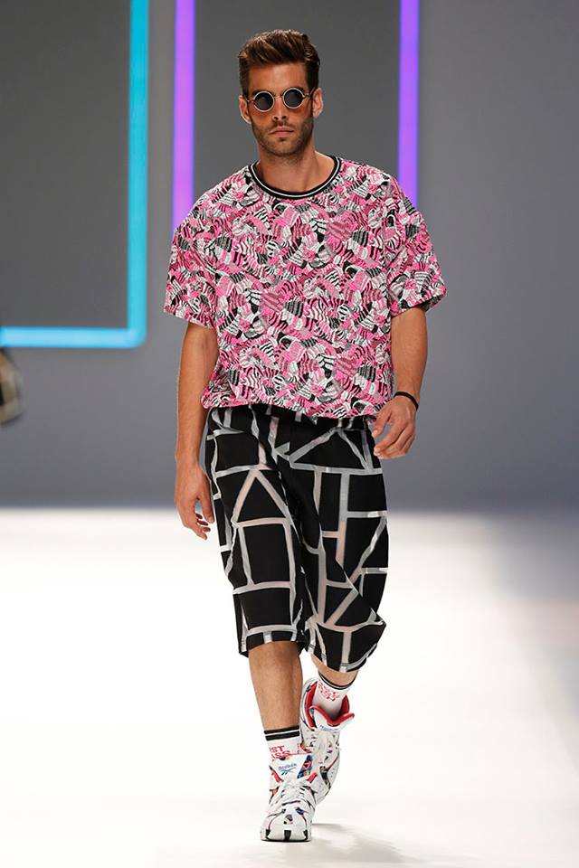 Krizia Robustella Spring/Summer 2016 presents a charismatic colorful Menswear at 080 Barcelona Fashion. Included cartoon illustrations patterns in shirts, pants, jumpers and bathsuits.