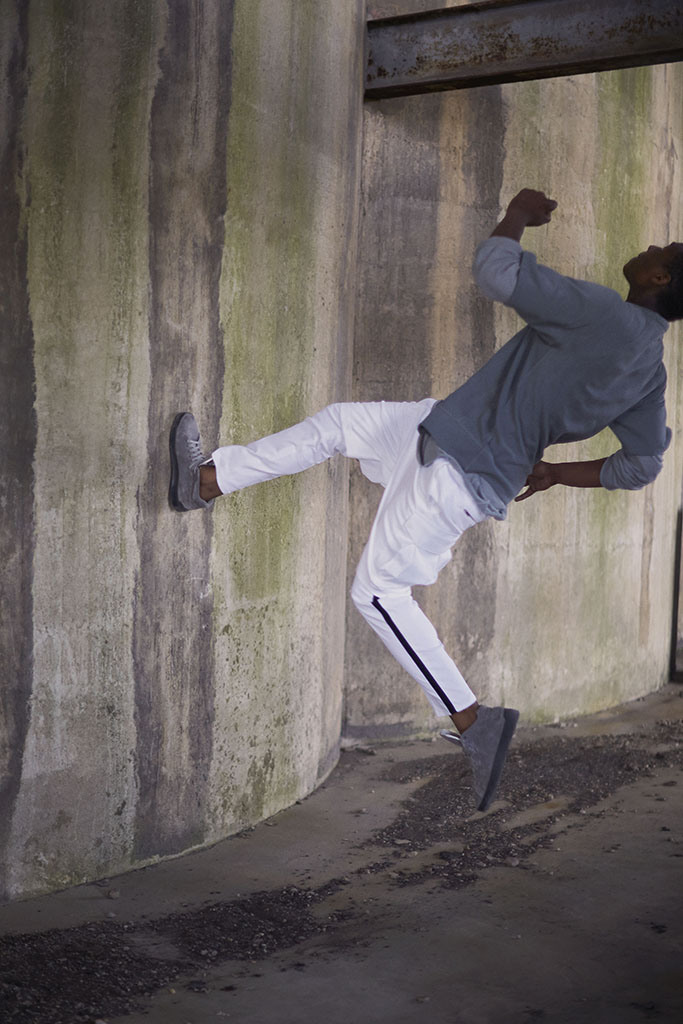 Comanaging partners Marcus Wainwright and David Neville chose to once again step outside the box to show their strong spring line, creating a film that featured parkour athletes pulling off dramatic feats like jumping off buildings in a single bound while wearing the clothes.