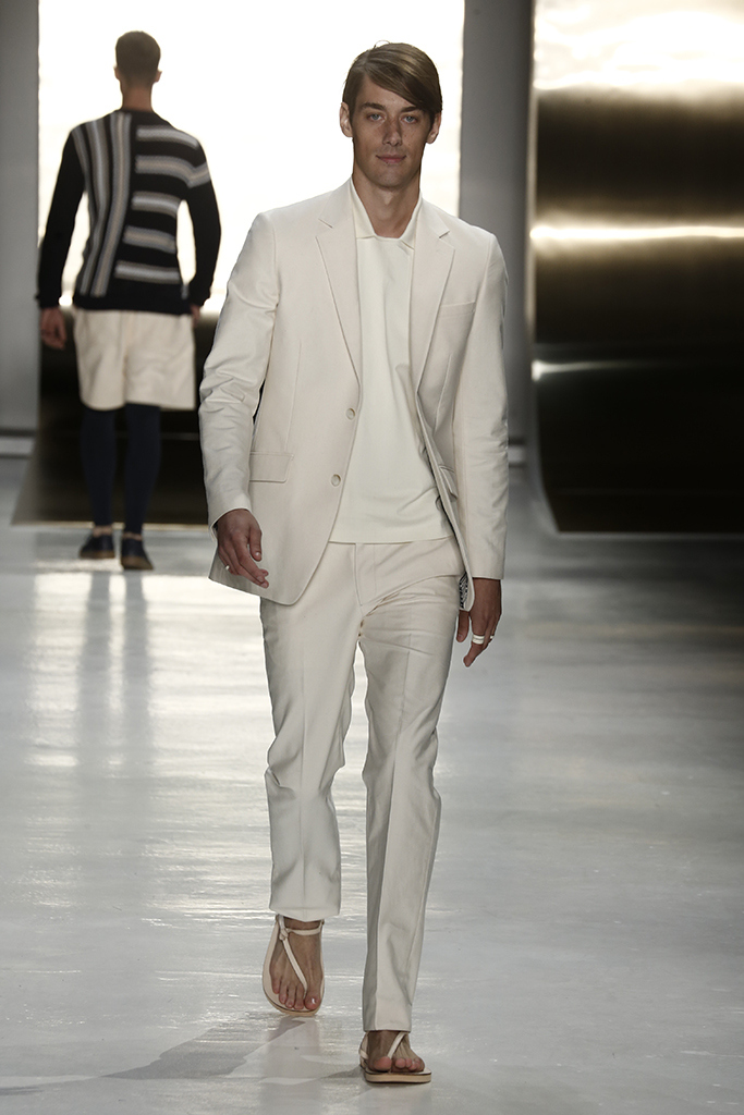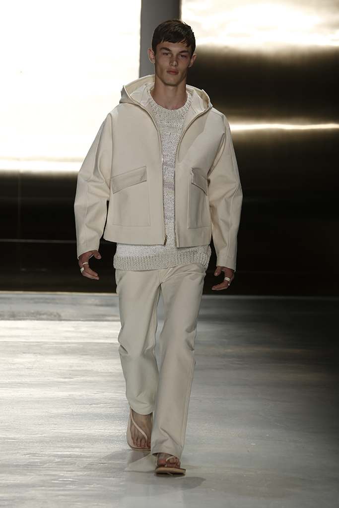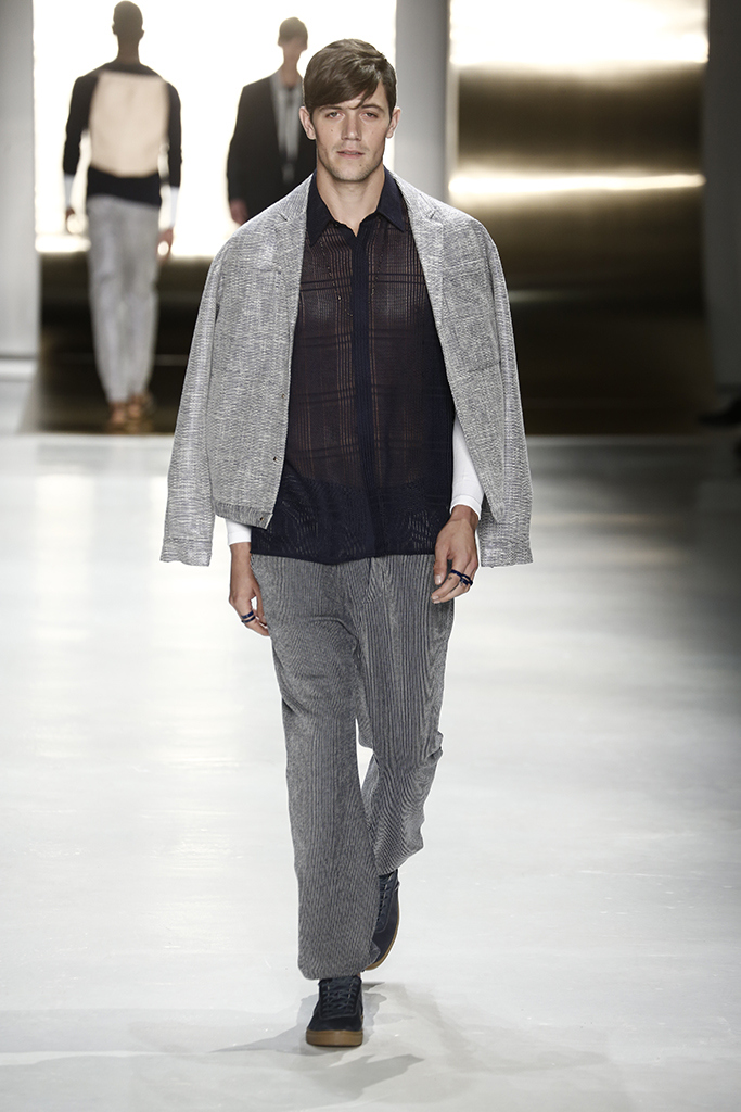While he definitely drew from vintage Perry Ellis designs for the knit offerings, Maccari made his own mark by adding an array of relaxed sportswear pieces and athletic references.