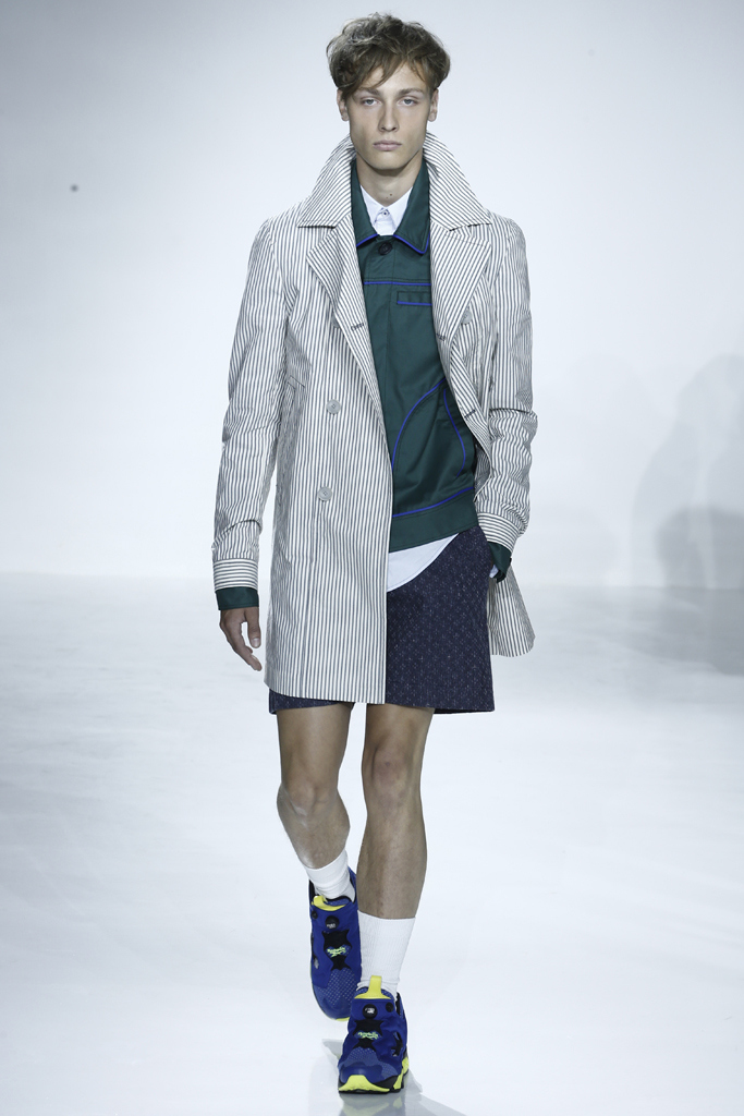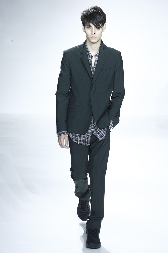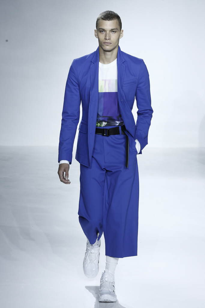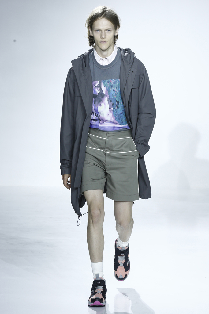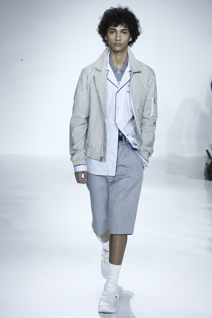 The graphic elements were designed to replicate a variety of album covers from Chai’s childhood in suburban New York, including Morrissey and Depeche Mode, and were used on sleeveless shirts and T-shirts. He also used updated pinstripes and plaids, but when mixed with the album-inspired prints, it brought new life to the heritage patterns.