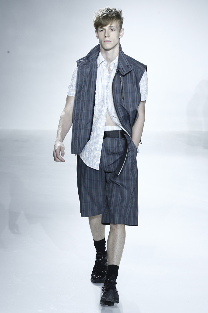 The graphic elements were designed to replicate a variety of album covers from Chai’s childhood in suburban New York, including Morrissey and Depeche Mode, and were used on sleeveless shirts and T-shirts. He also used updated pinstripes and plaids, but when mixed with the album-inspired prints, it brought new life to the heritage patterns.