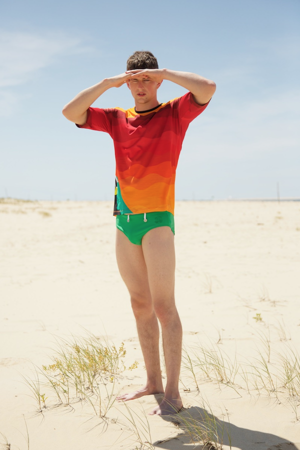Robinson Les Bains introducing Spring/Summer 2016 Men’s Collection, including swimshorts, speedos, bathing suite, also you can find polos shirts, some sporty vest, raincoats in funny and colorful designs. Pictures by Alfredo Piola snapped British model Michael Morgan.
