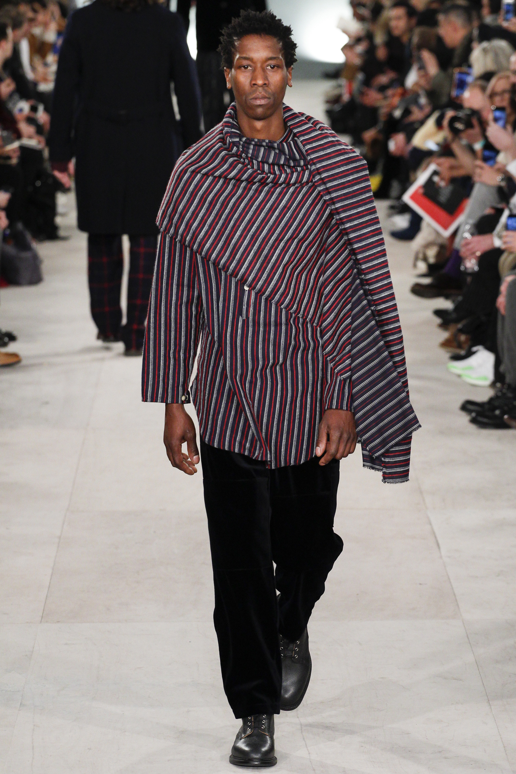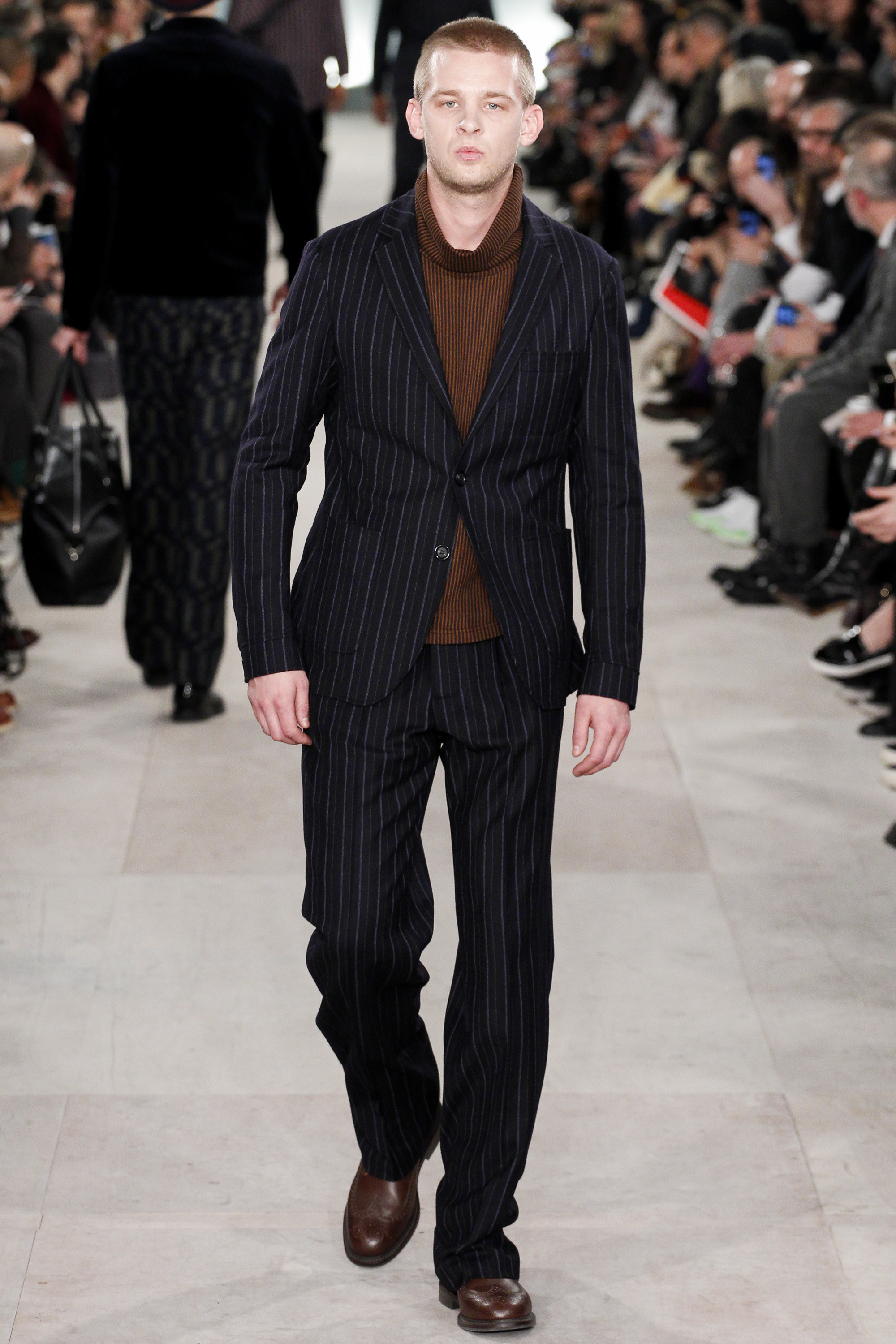 But again, we’re back to reality, and it felt like these were clothes men will really wear. Maybe men who aren’t slaves to fashion, or the incessant street style pap snaps that shutterbug outside the weeks’ key venues. Or men who just like brown. There’s a decided market for these kinds of clothes—but one questions if, really, a fashion show is doing Oliver Spencer any favors. I’m sure there were neat details in his collection, in the finishing of the tweedy jackets and slim coats in faux astrakhan, velvet, or that super ’70s cord, but this runway often swamped them.