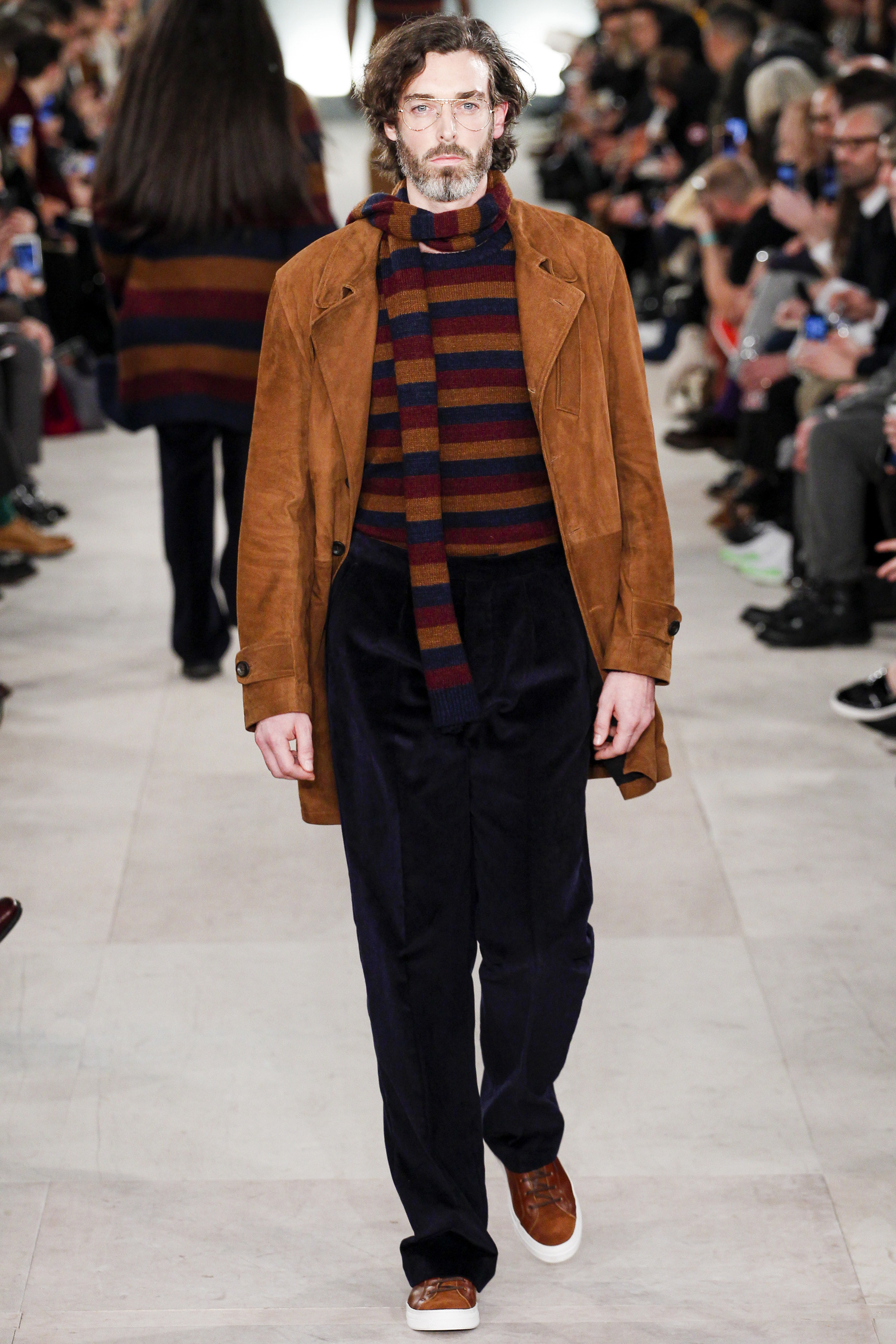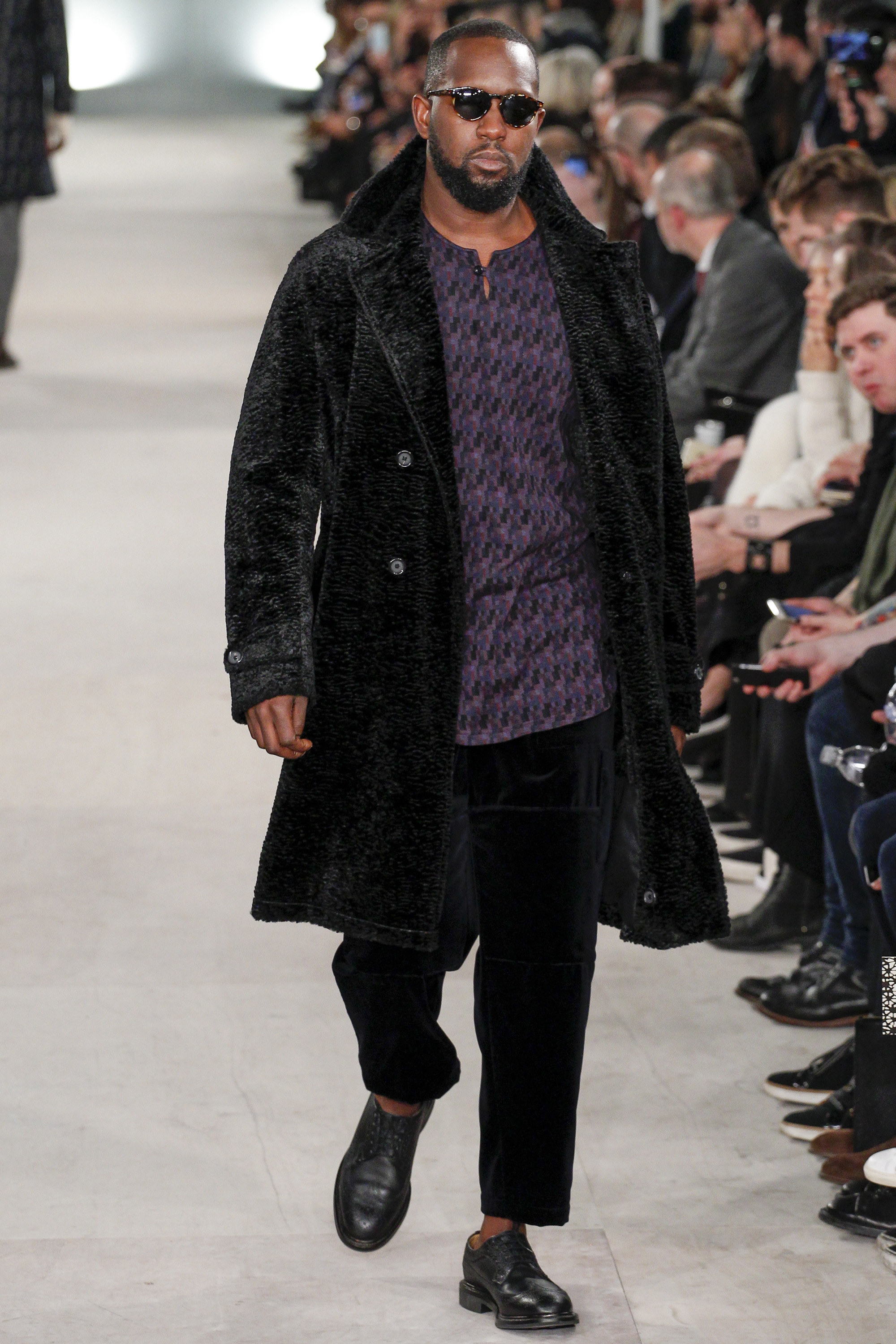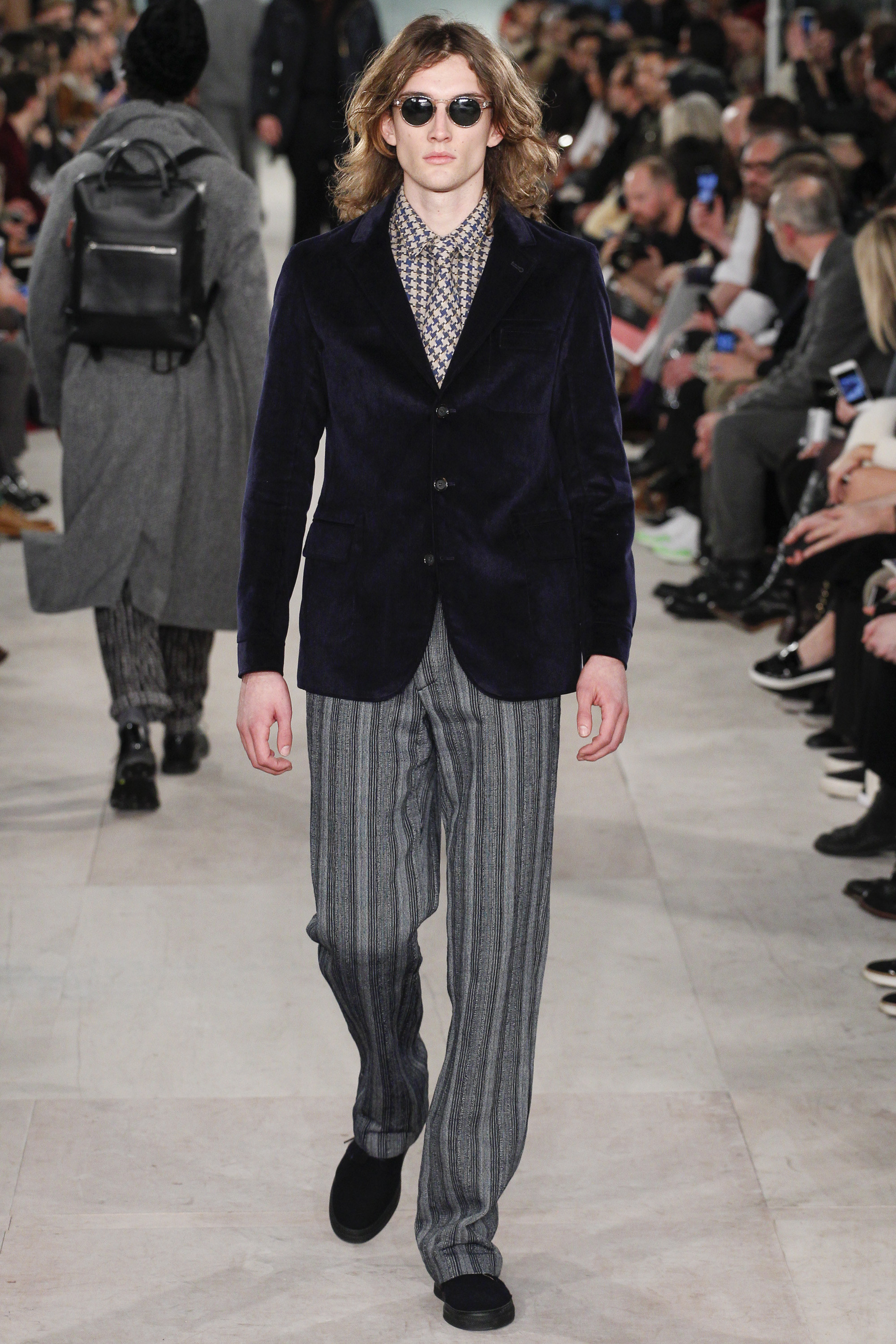 But again, we’re back to reality, and it felt like these were clothes men will really wear. Maybe men who aren’t slaves to fashion, or the incessant street style pap snaps that shutterbug outside the weeks’ key venues. Or men who just like brown. There’s a decided market for these kinds of clothes—but one questions if, really, a fashion show is doing Oliver Spencer any favors. I’m sure there were neat details in his collection, in the finishing of the tweedy jackets and slim coats in faux astrakhan, velvet, or that super ’70s cord, but this runway often swamped them.