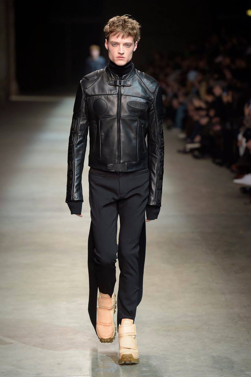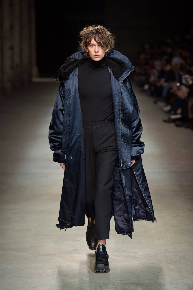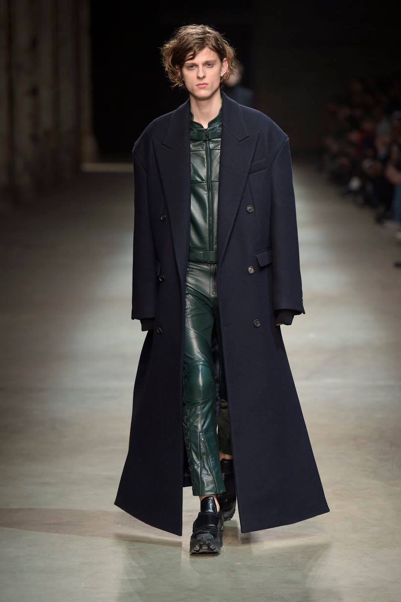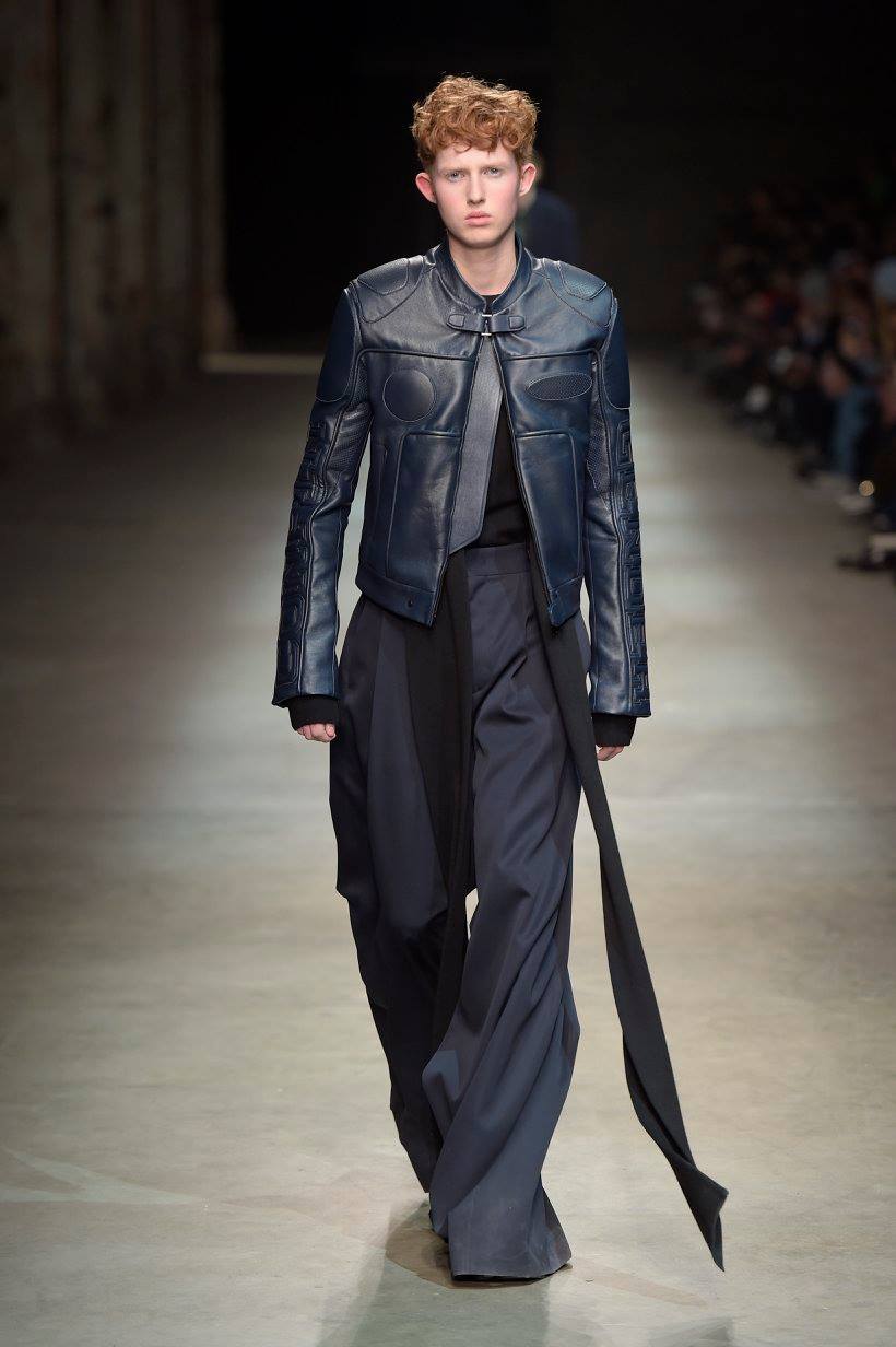 Pitti Uomo guest designer Juun.J gave his spirited fall collection a futuristic spin, sending out a gang of daredevils clad in embossed, heavy leather, felted wool and lots of shearling rendered in his signature pumped-up volumes.