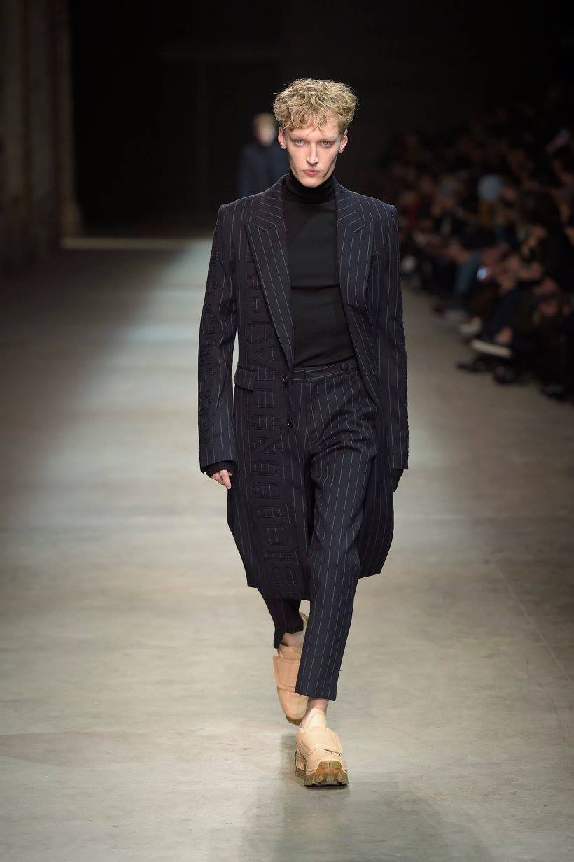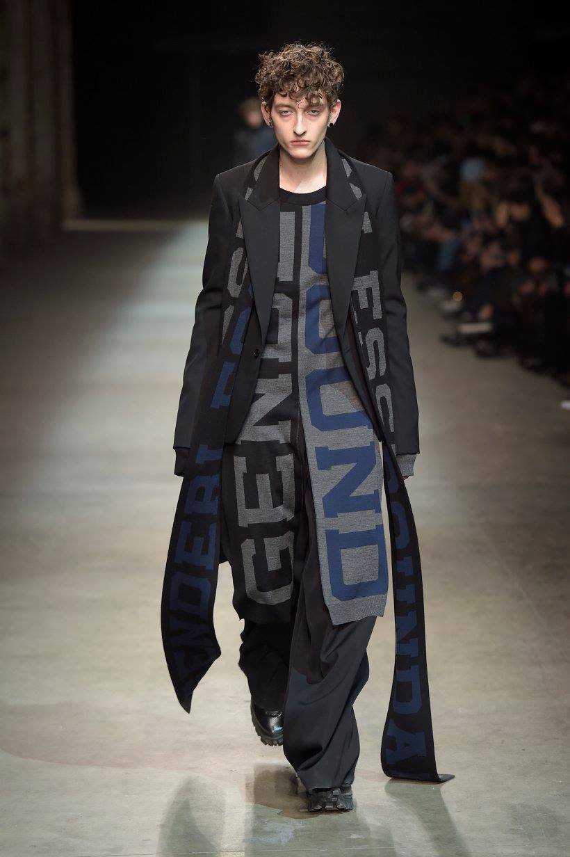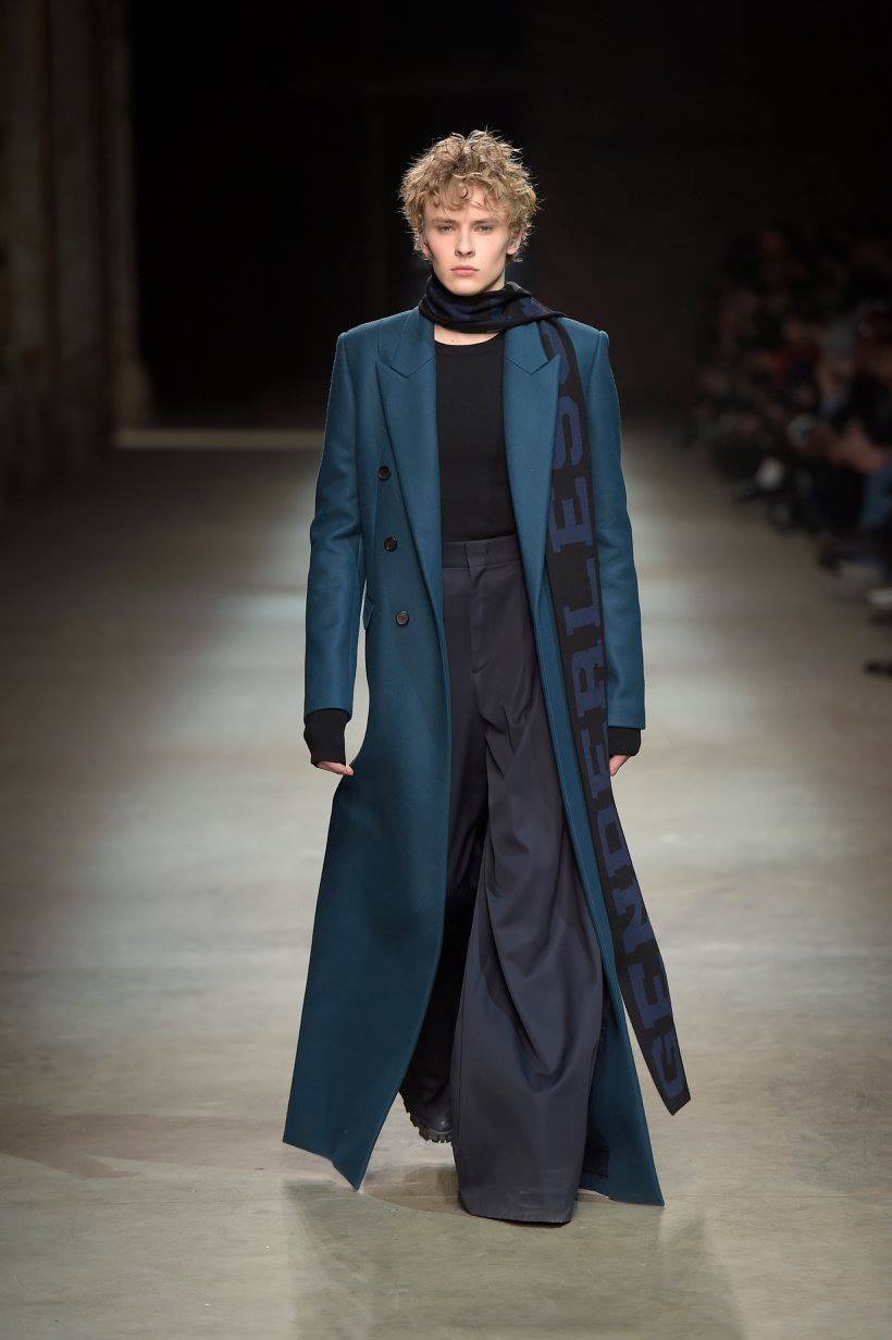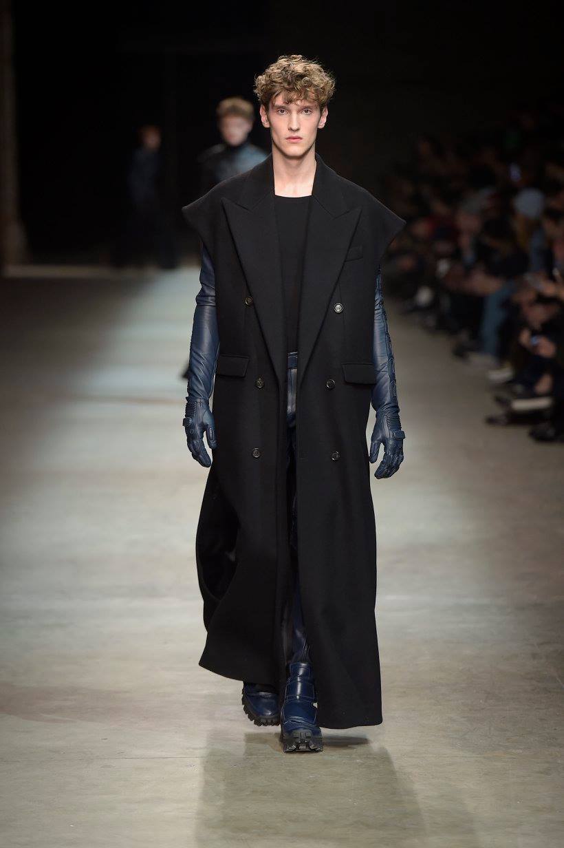 Elsewhere — in keeping with the city’s traditions — the designer paid homage to Florentine tailoring via long and luscious soft-shouldered coats. As they were partially sliced into panels and mixed with extralong scarves, they let off an air of fetish elegance with a “Matrix” vibe.