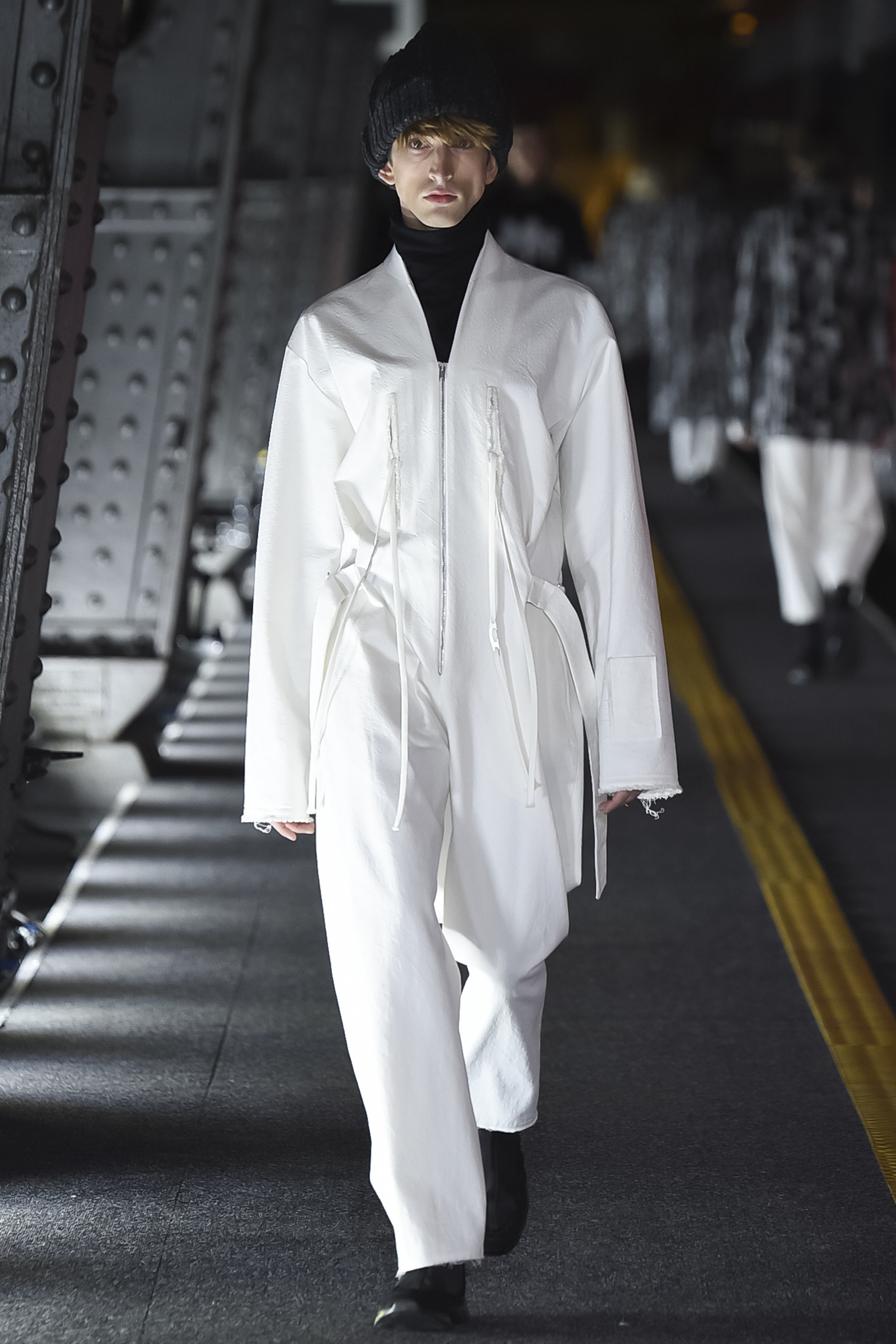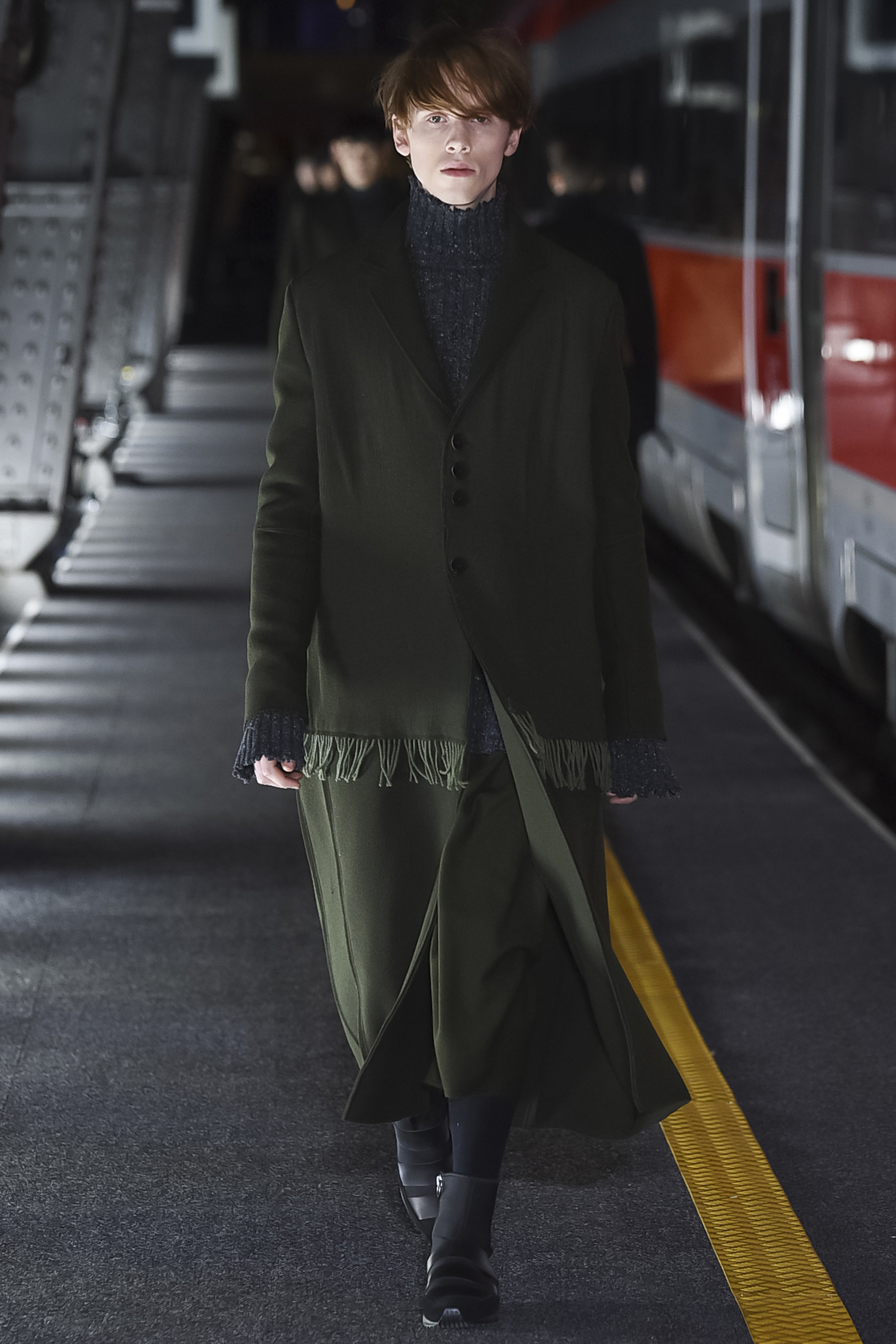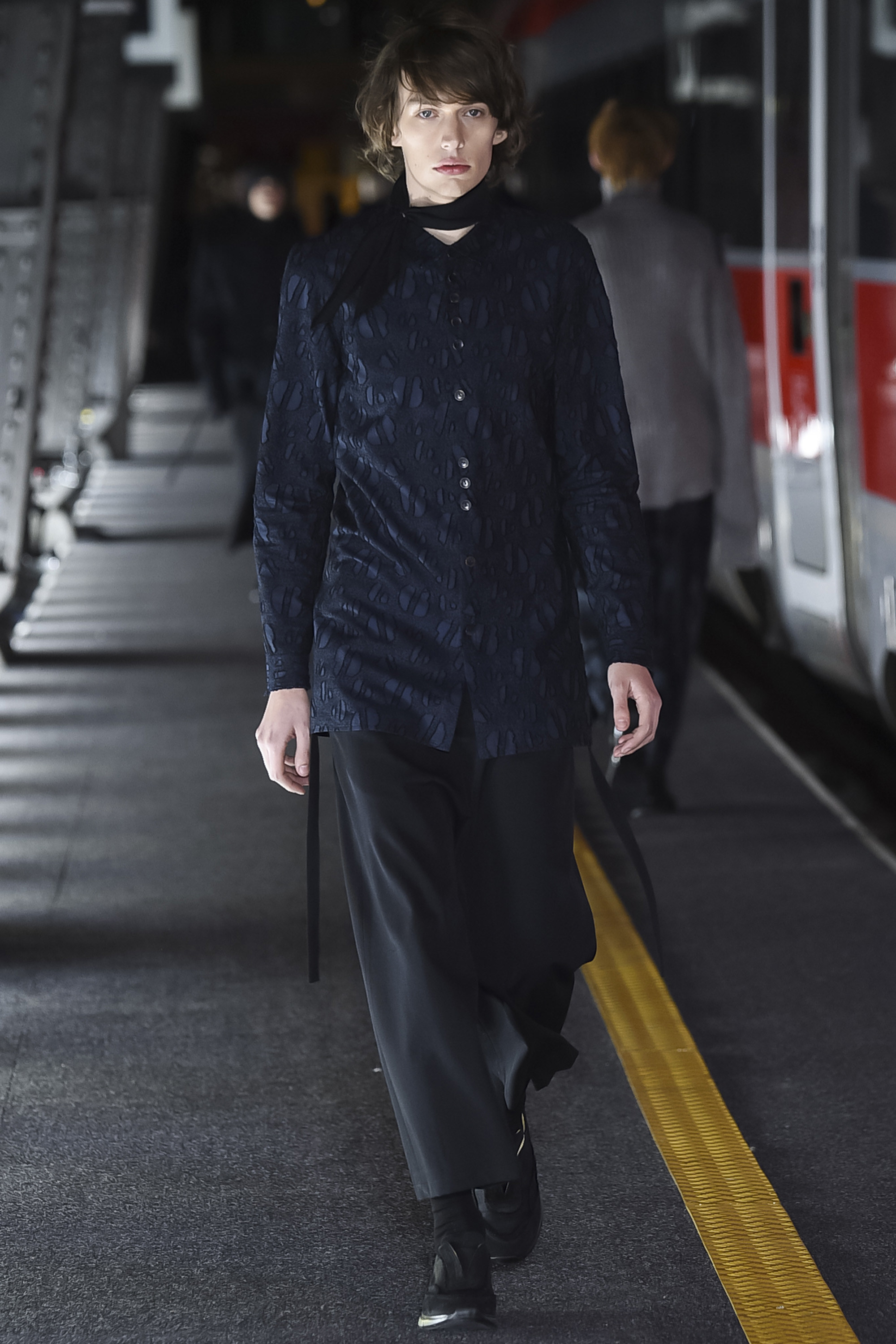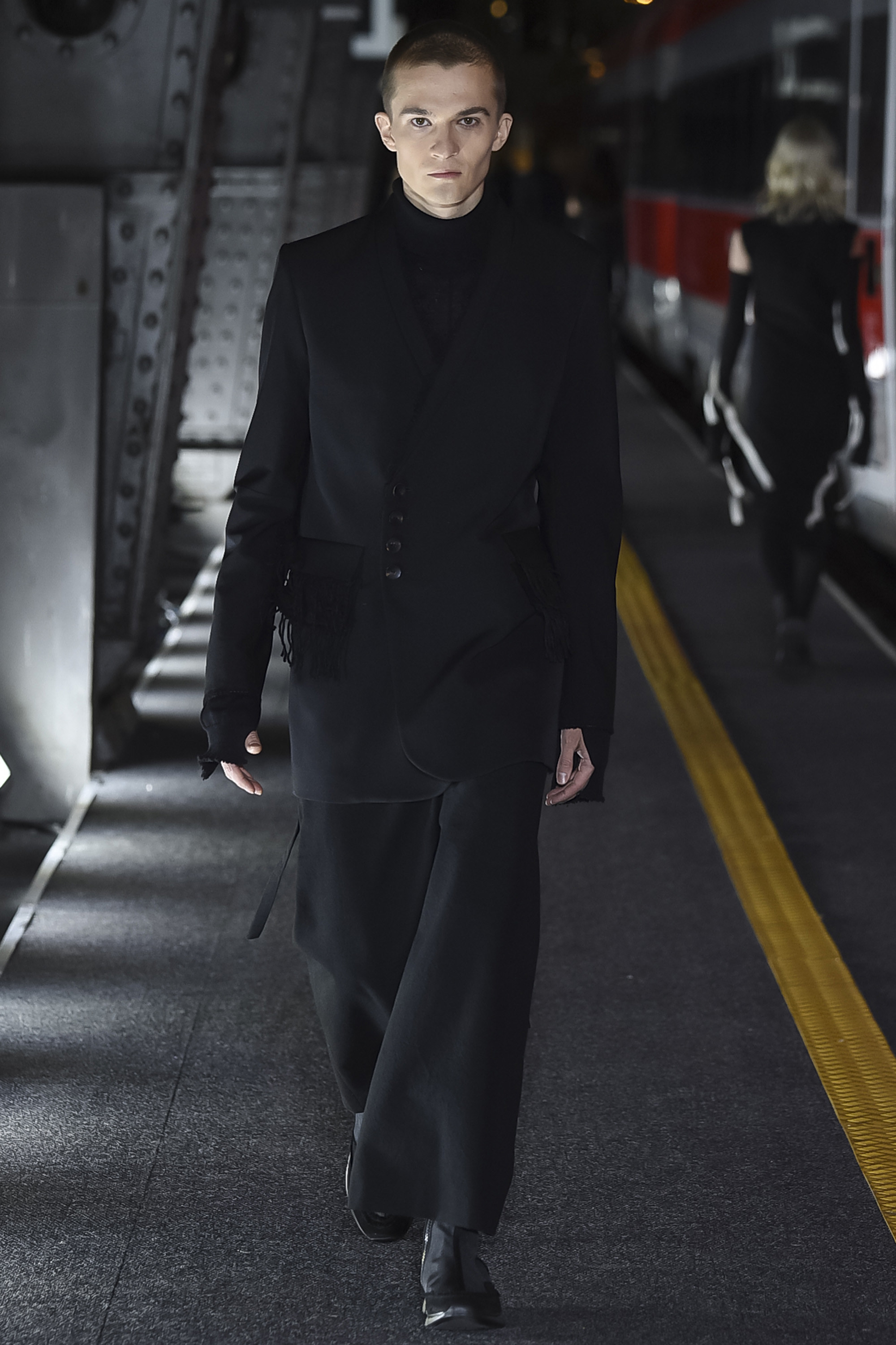 The show on platform 22—due for departure at 8:00 p.m.—was delayed by 35 minutes. That’s life come the climax of Milan menswear Sunday, the most densely packed show day in the calendar. Damir Doma had fantastically swung it to show this collection inside Milan’s central station—a magnificent building that has blessedly endured long beyond its fascist conception. Doma said: “It’s my favorite location in Milan—whenever I come here, I’m extremely impressed. We try to think out of the box and find show spaces that are not so common. But we cannot pay a lot—we are not that kind of company. So we were super-lucky that there was someone in the office here who loves the brand and opened all the gates for us.”