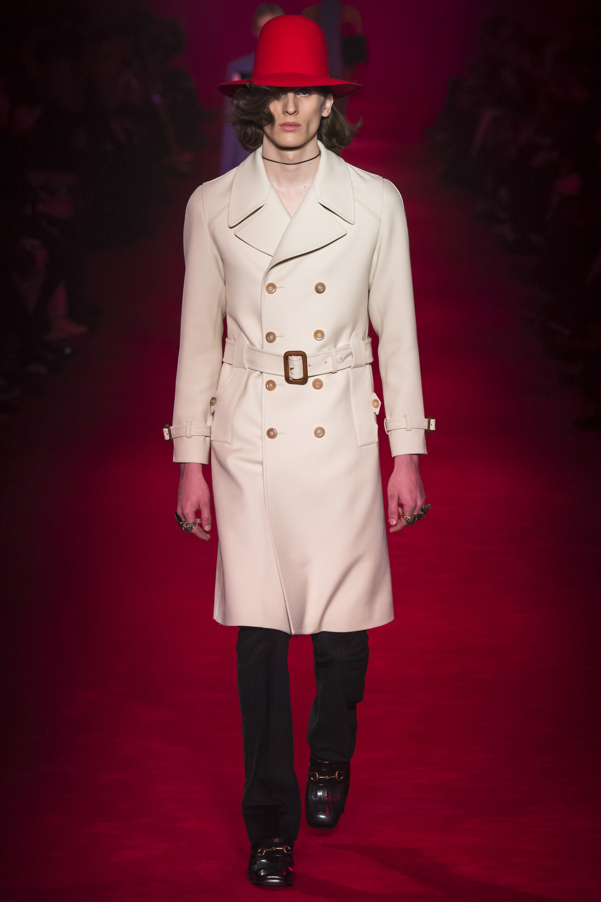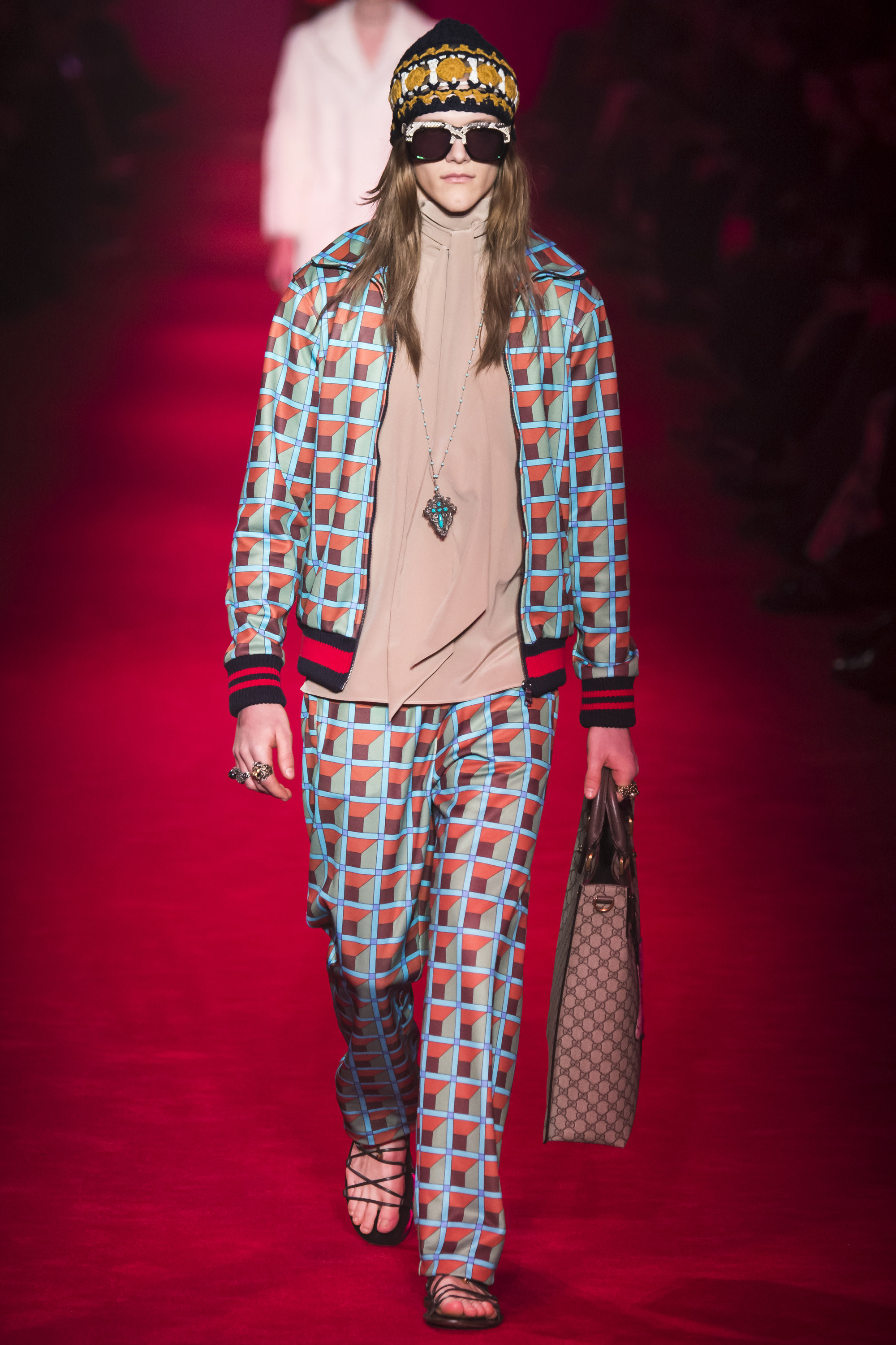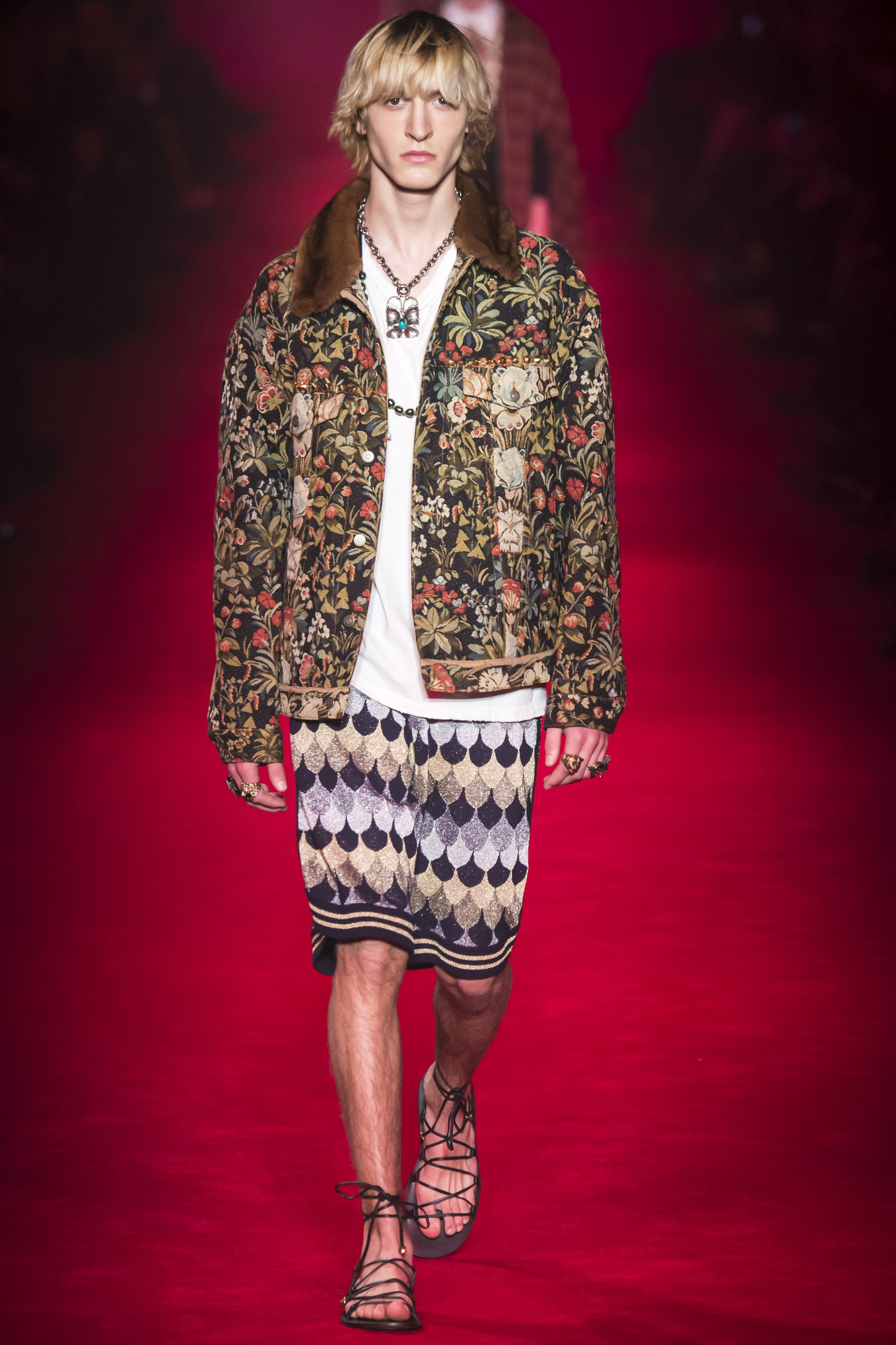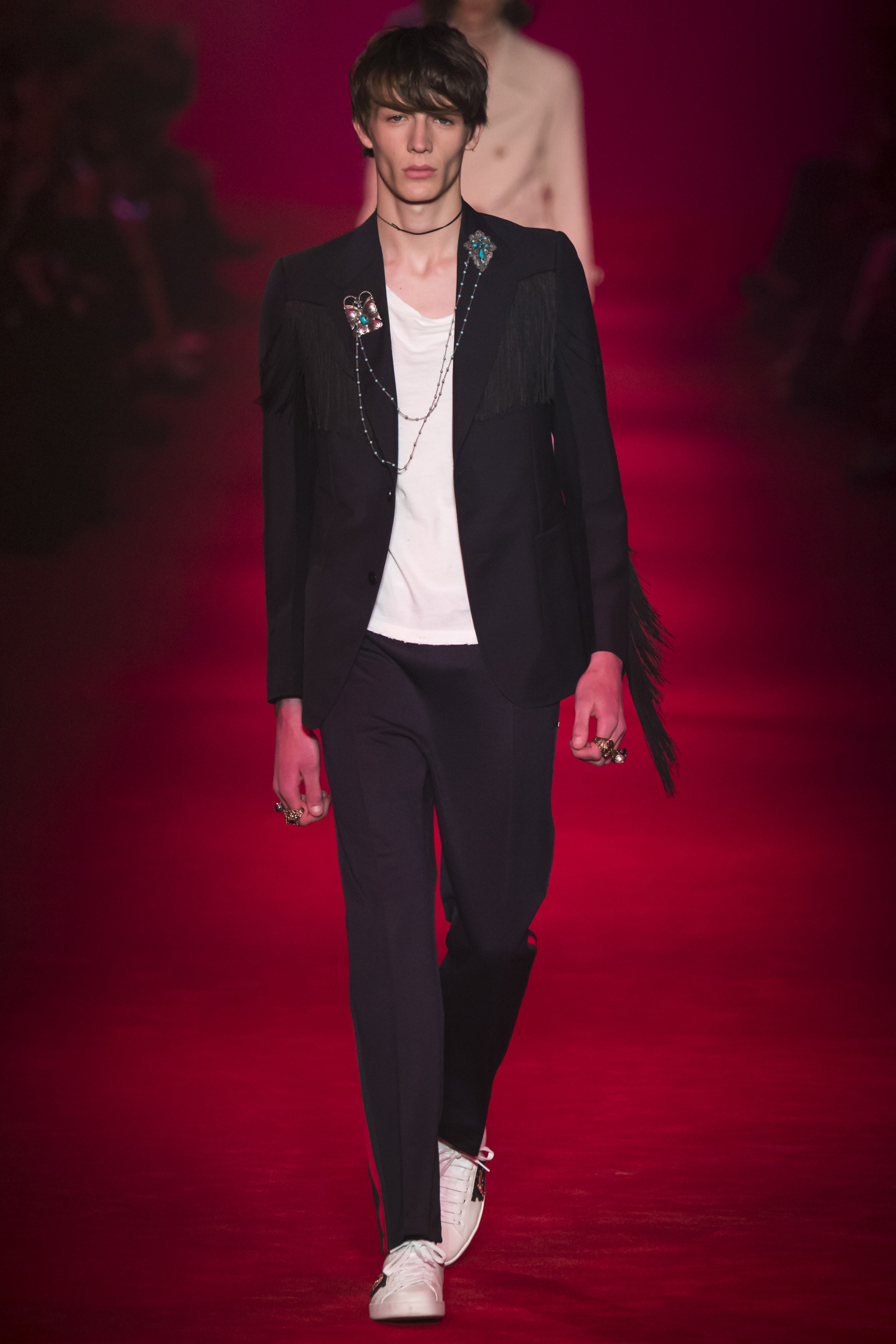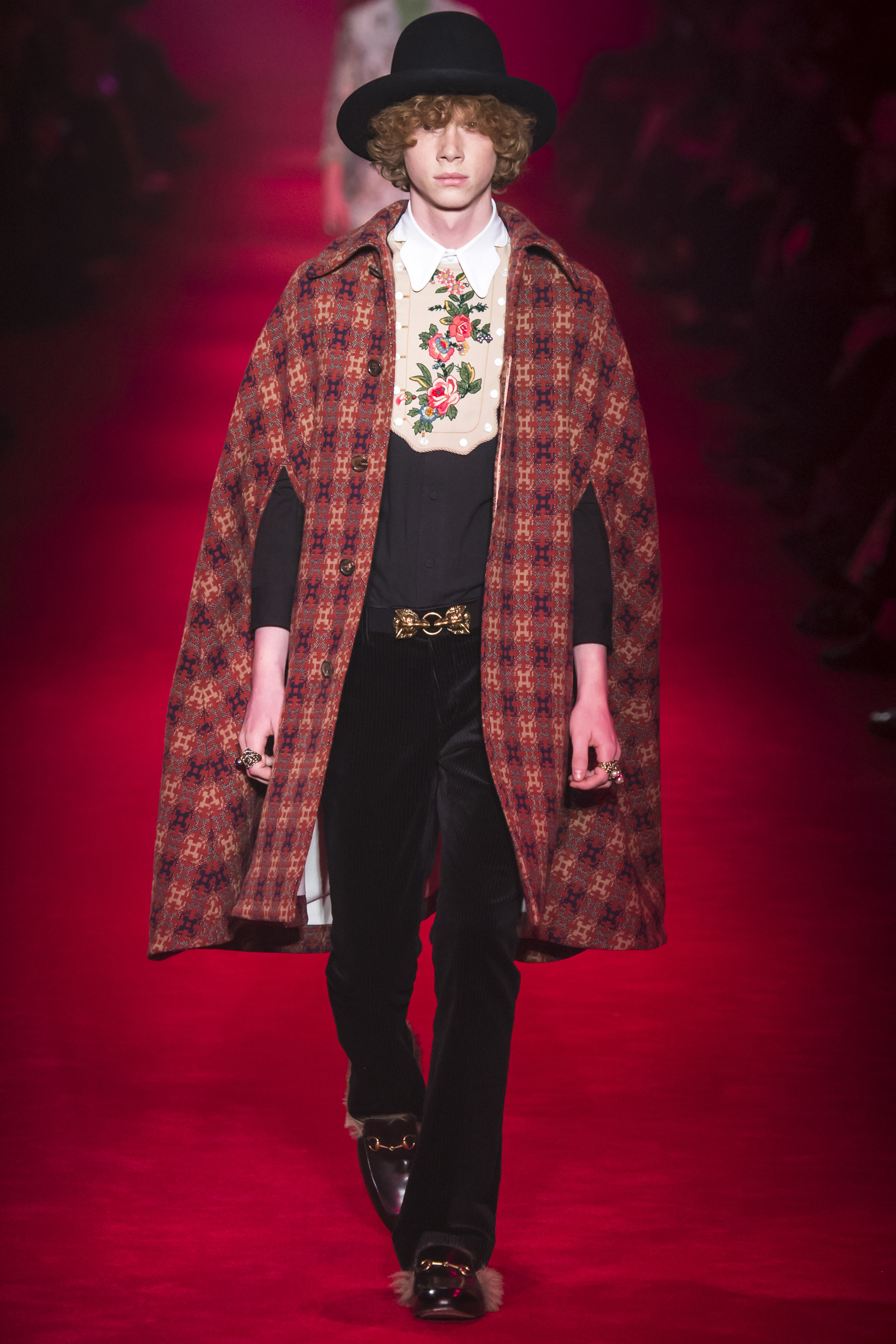 What the Fall 2016 men’s Gucci collection did was retread ground Michele’s been covering for the past year. It evolved it, a little, but it was about reaffirming the new creative direction of the house. Which, if we’re honest, isn’t that new. It’s just a new edit of an existing script. It’s new in the sense that fashion frequently is—reviving a moment that contrasts with that which immediately preceded it. Baudrillard once cited it as a dynamism of amalgamation and recycling. He hasn’t been quoted by Gucci, yet.