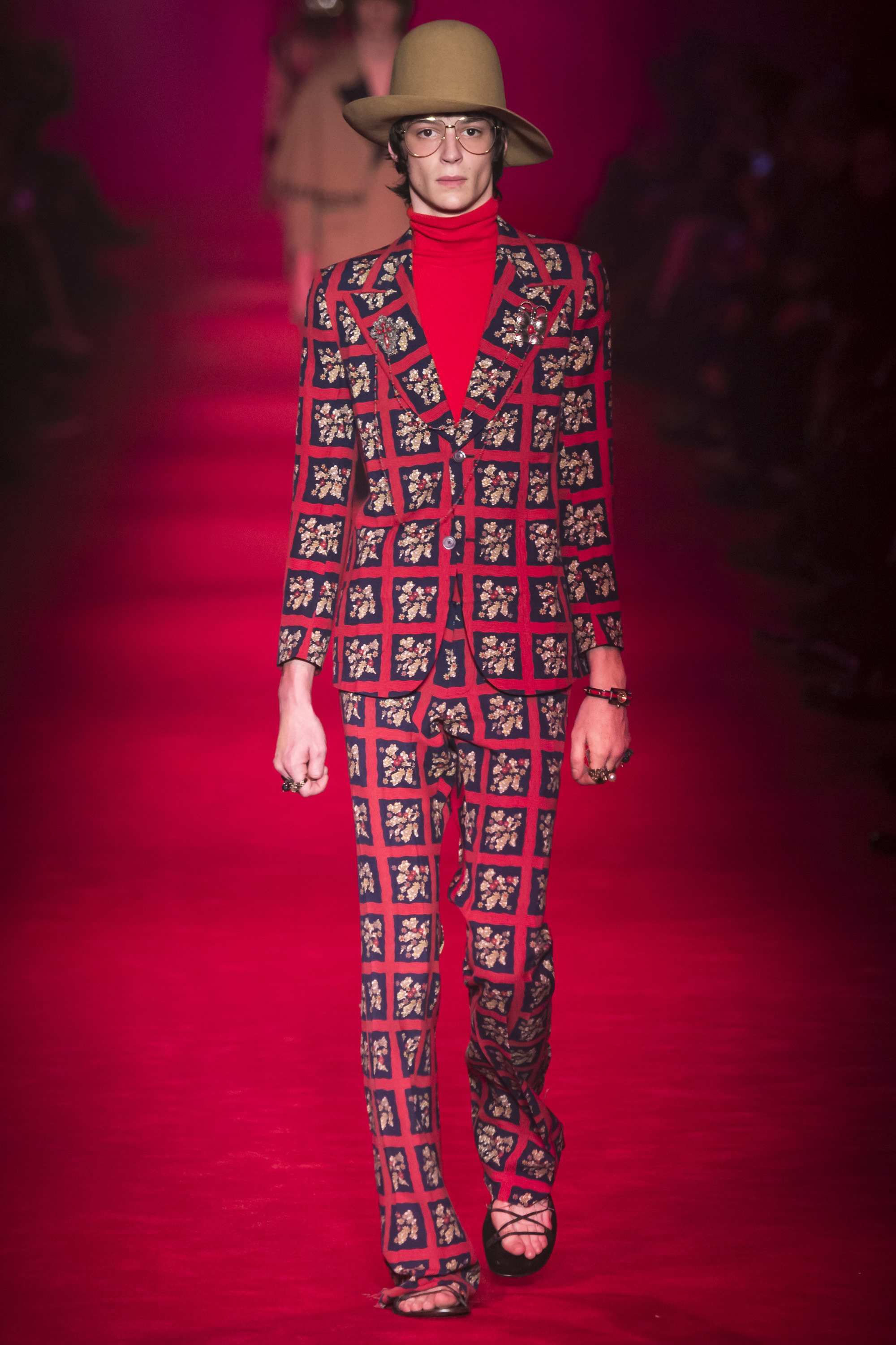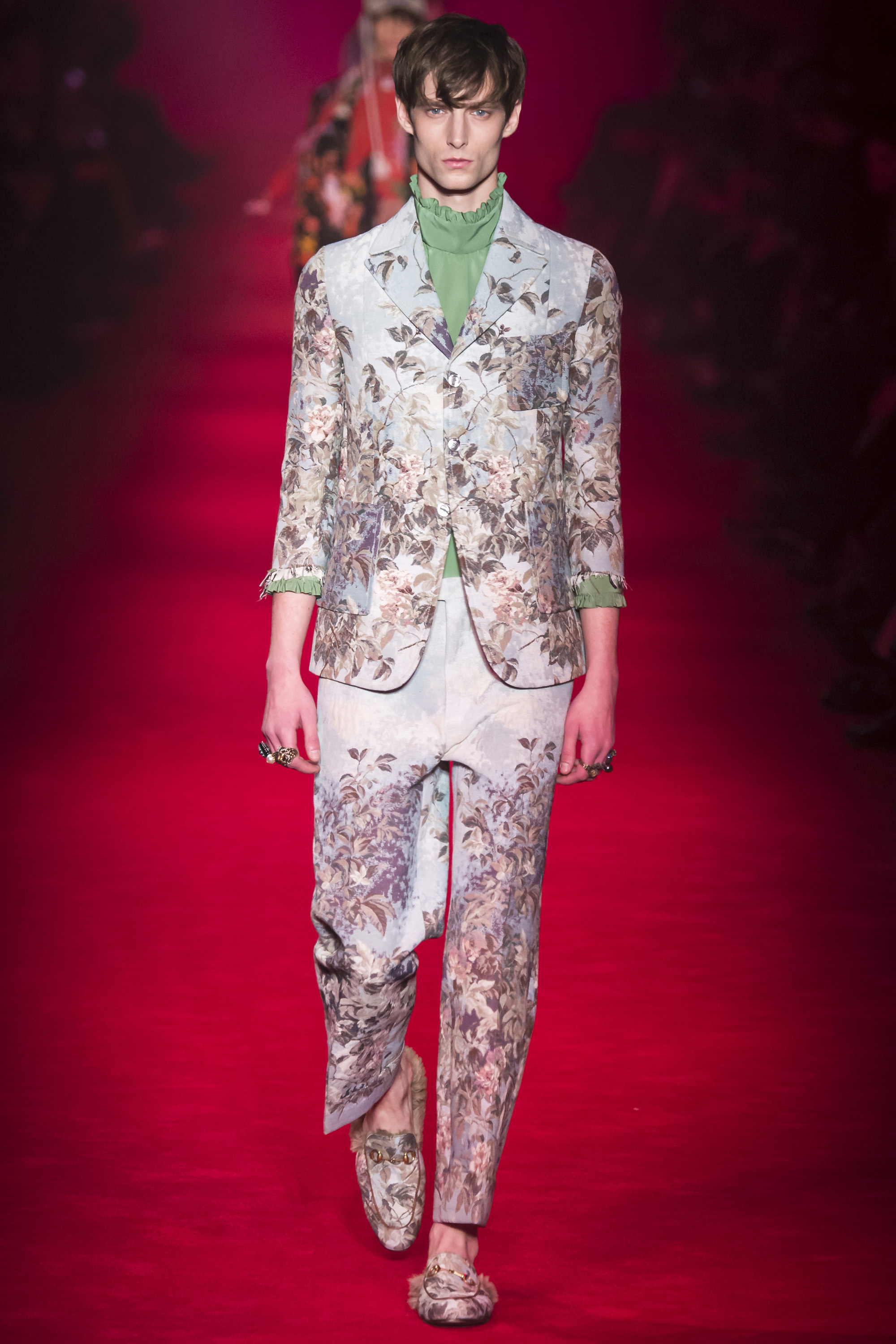 It is, however, terribly Gucci, and remarkably Italian. “A little Schiaparelli,” murmured Michele, fingering an embroidered crystal eye on one piece. “I was thinking of Walter Albini,” he said of another. Neither are the Italian designers that immediately leap to mind. “There is a stereotype of Italian fashion, of houses like Gucci,” said Michele thoughtfully. “We have more than people think. I have a lot of things in my mind from the archive, but I don’t want to be a prisoner of the archive. It’s always the ‘idea’ that I have of the archive . . .” The idea of memory, rather than the actuality of history. And Gucci these days has no walls—genderless, seasonless, formal and casual mixed. It’s about a freedom. And that is, I think, why so many people find it invigorating, and ignore perhaps the fact that, as individual garments, Michele is offering not invention but reinvention, revival, and rehash.
