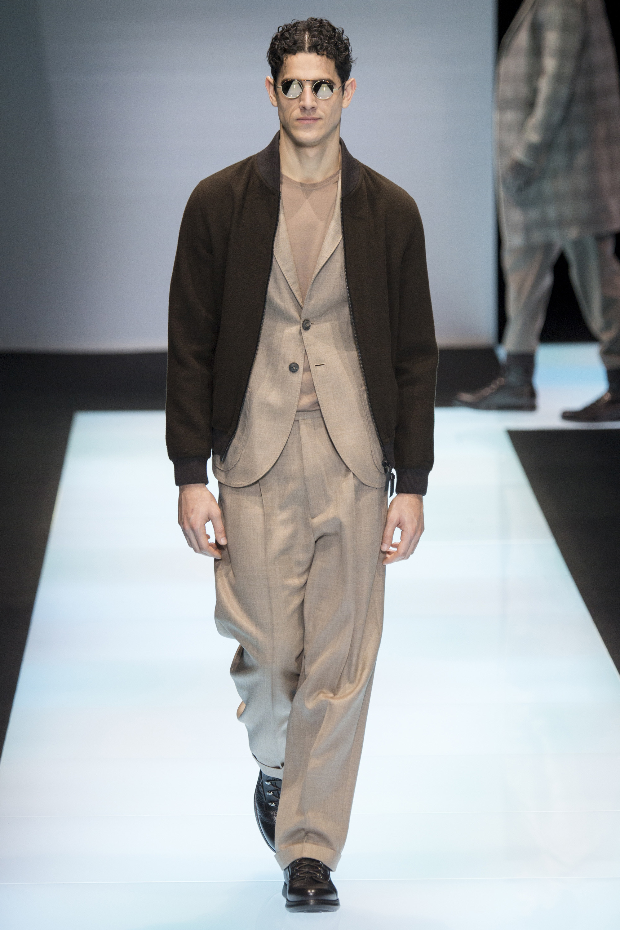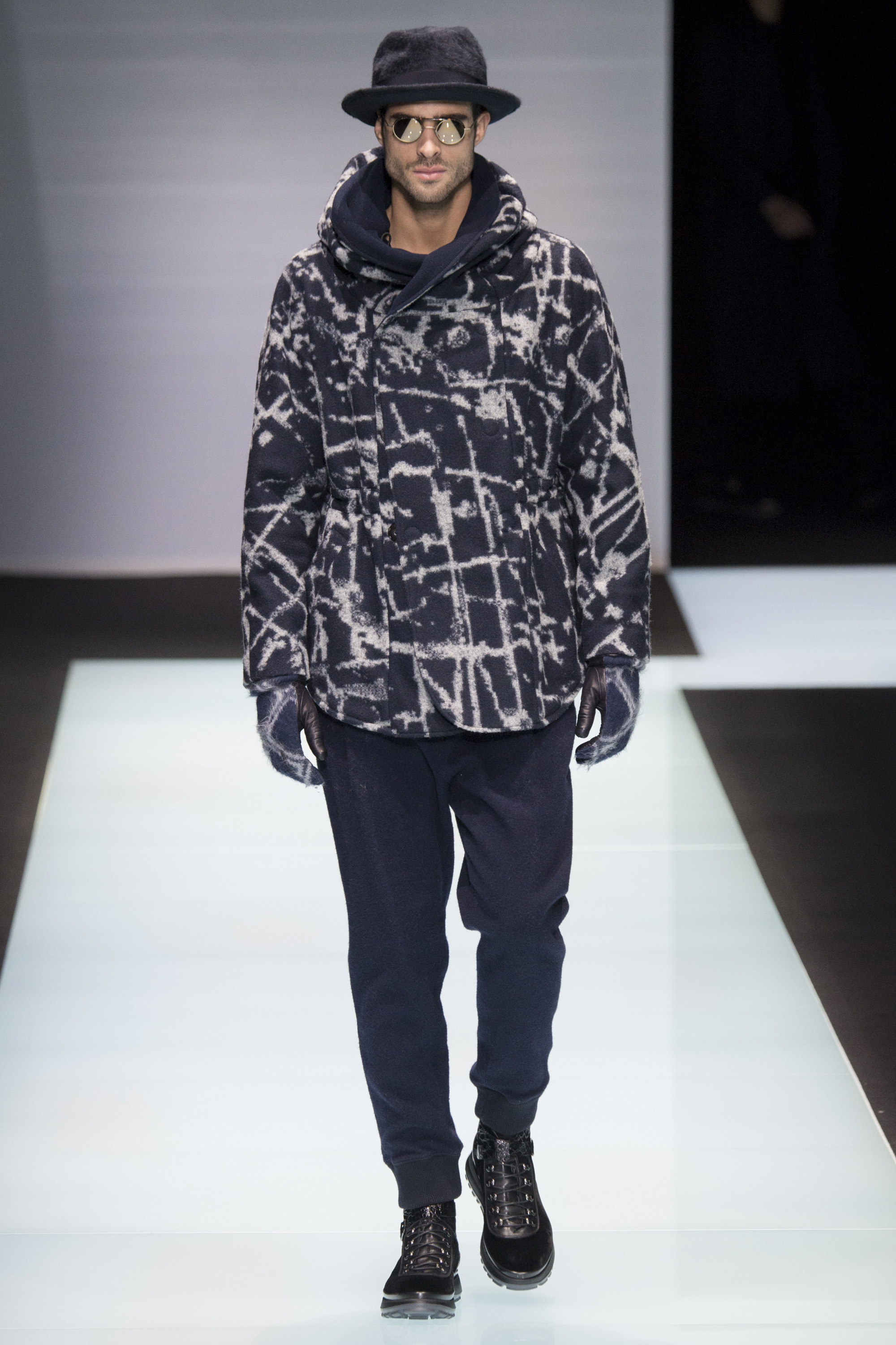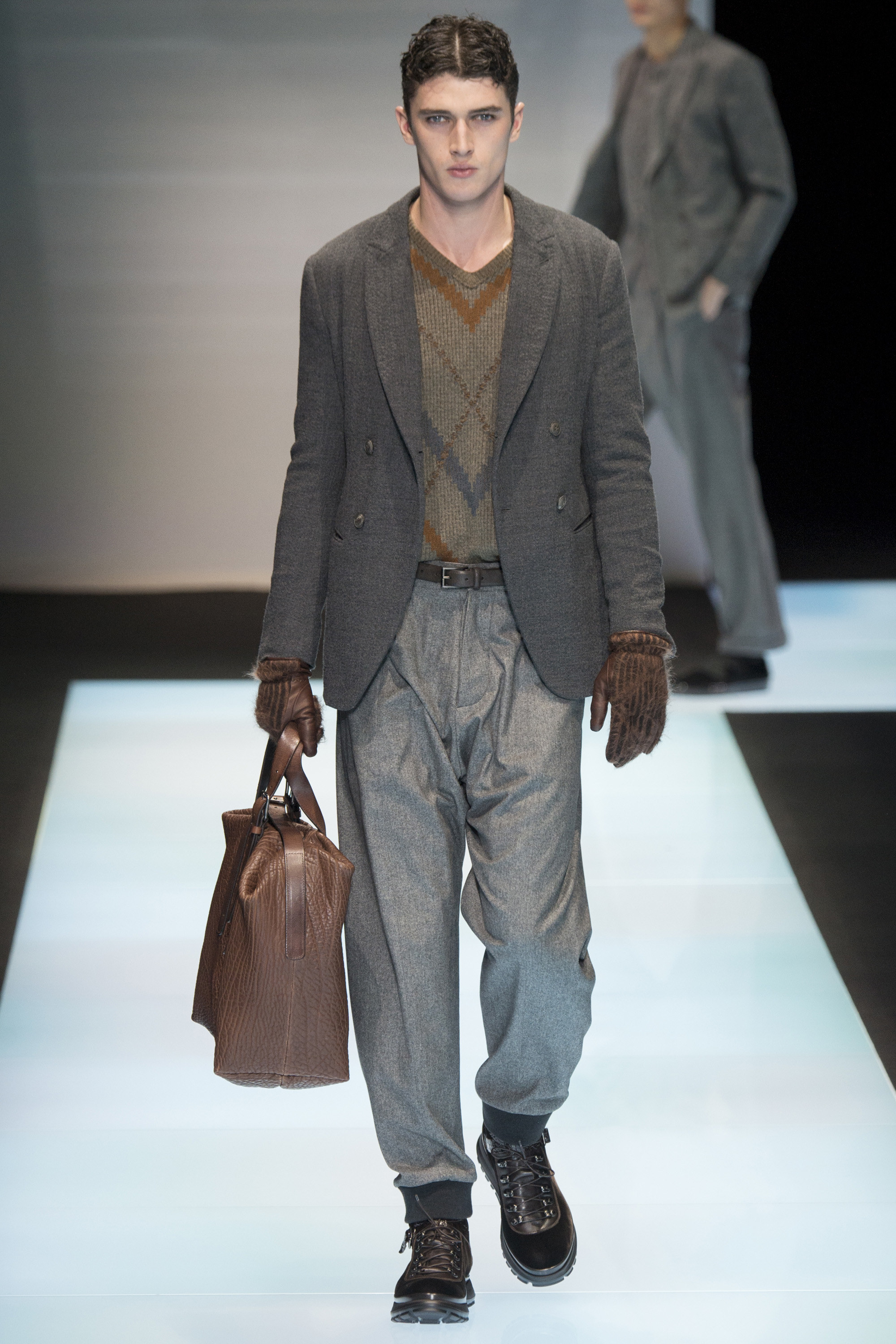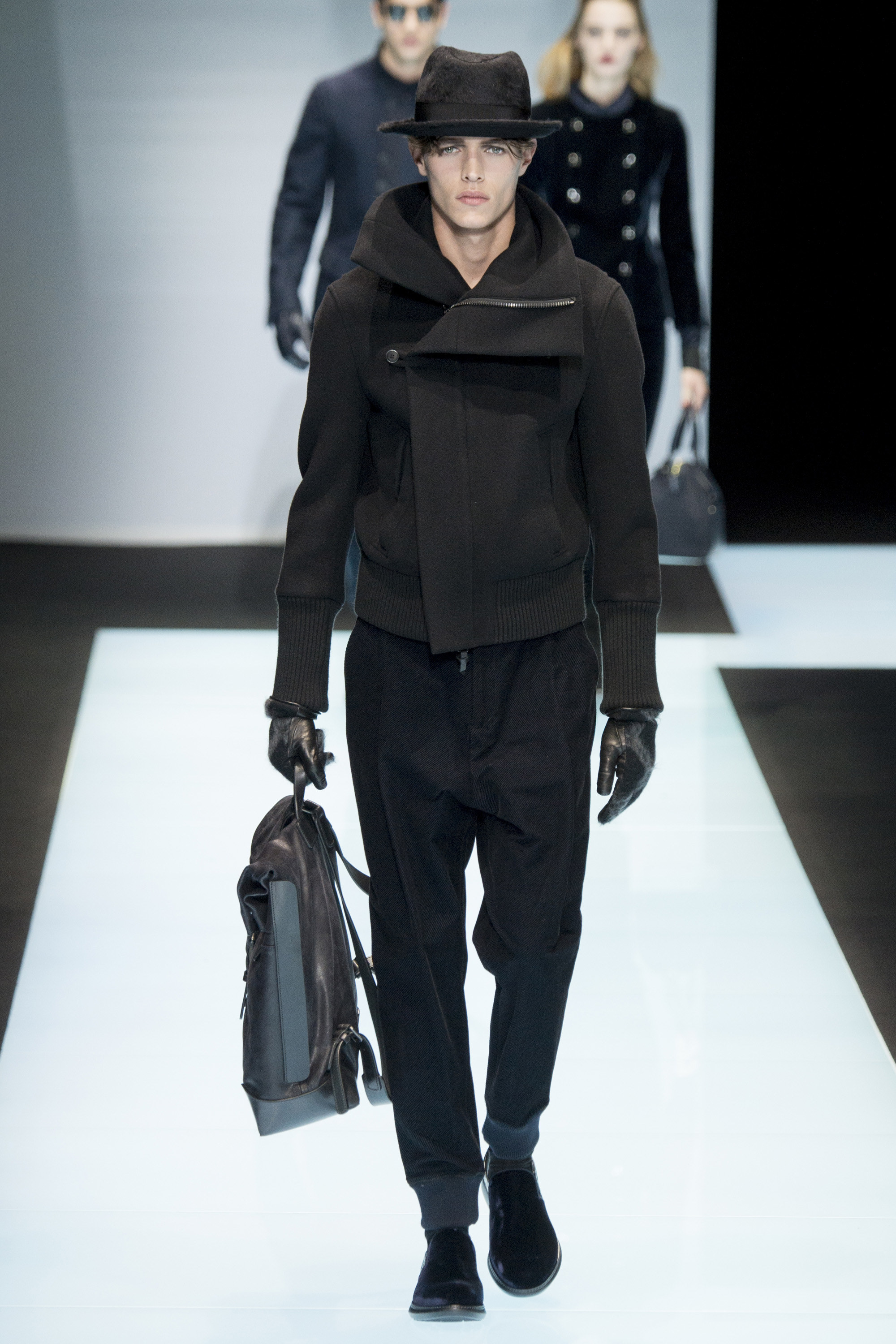 Is Armani interested in time? In 2015 he celebrated 40 years in the business, the year after his 80th birthday. As other designers discuss the reworking of historical styles to create modern garments, Armani essentially rediscovers his own history, season after season, refining his classics, creating the future from his own past. Armani stated that this collection, interspersed with motifs culled from northern Africa and the Mediterranean, and inspired by imagery of William S. Burroughs in a crumpled suit somewhere in Tangier, was about a journey. A voyage into Armani—a slow trek, a midnight (blue) train to Giorgio.