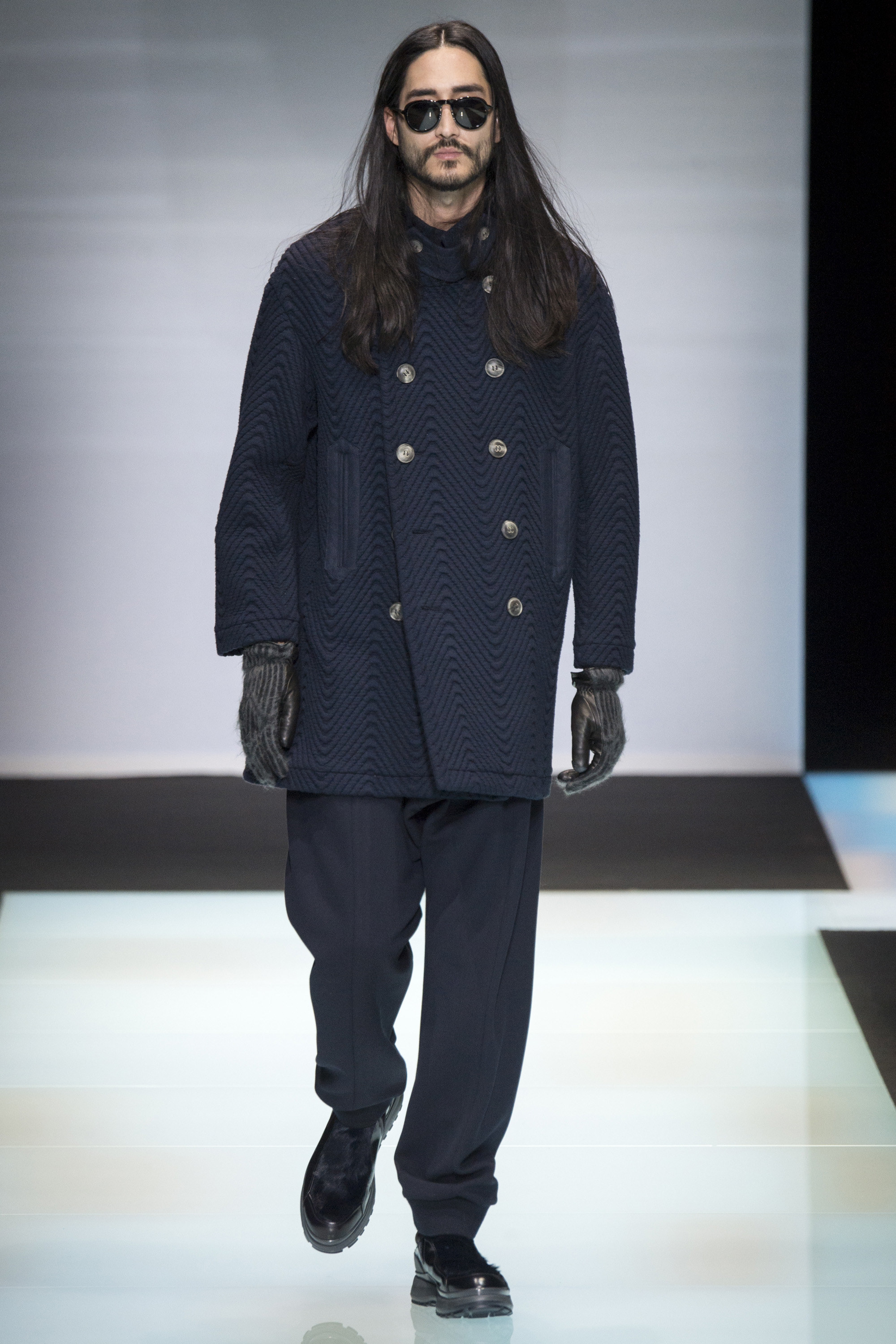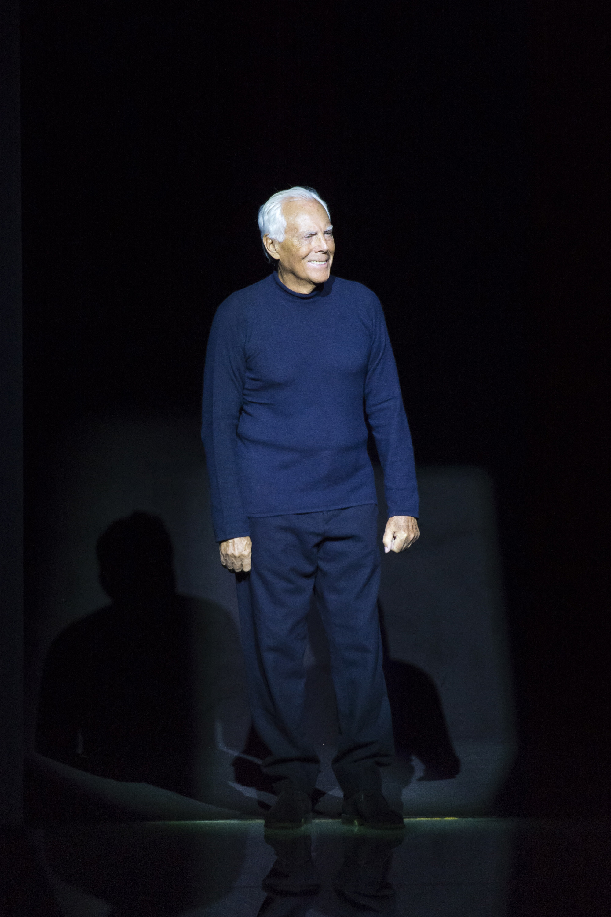 Habitually, Giorgio Armani takes his runway bows in Milan sporting navy—a sweater or a T-shirt. The hue was the linchpin of his Fall 2016 collection, as it has underpinned his career and the wardrobe of the Armani man. Why? Because navy is classic, unobtrusive, and universally appealing, all timeless hallmarks of the Armani aesthetic.