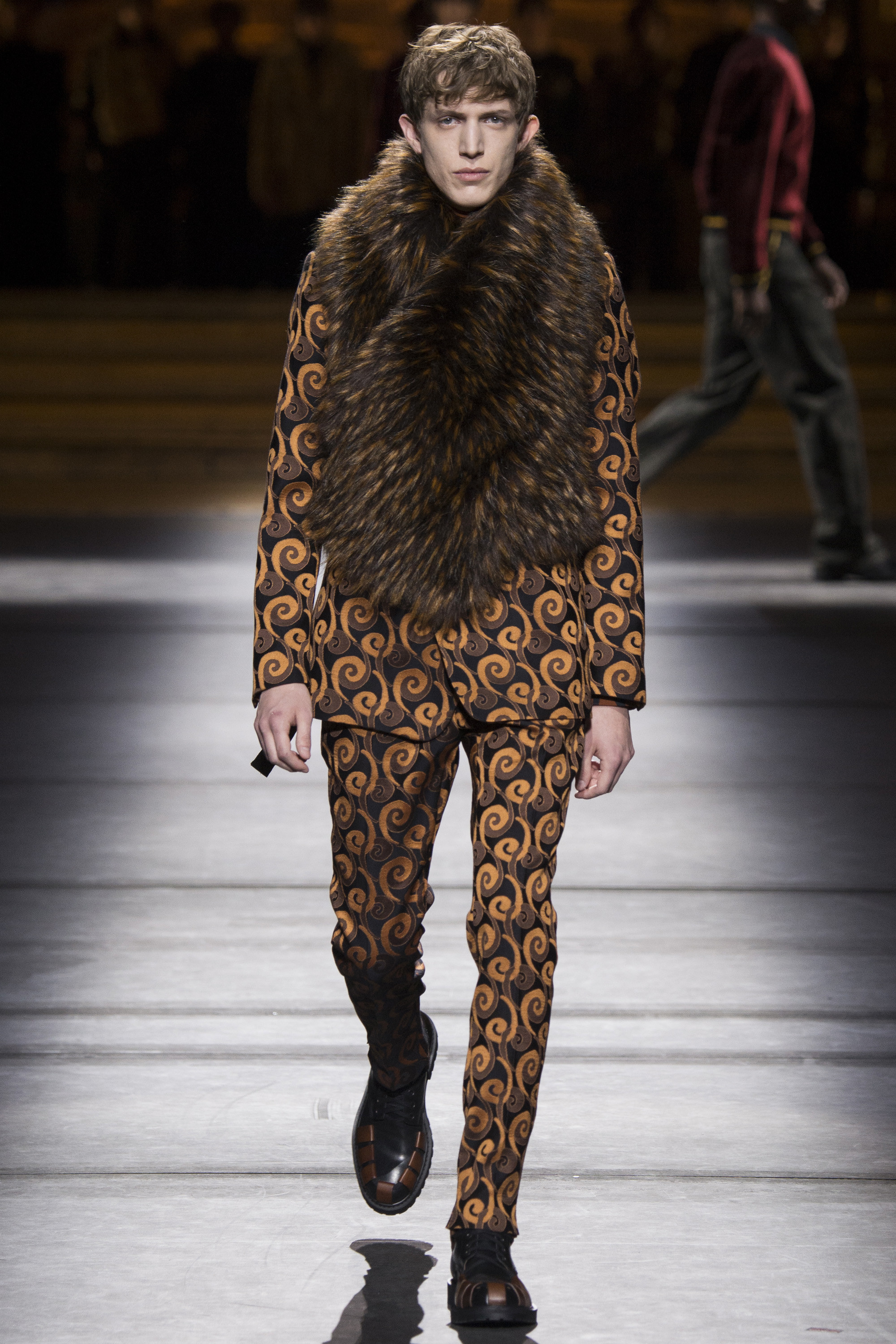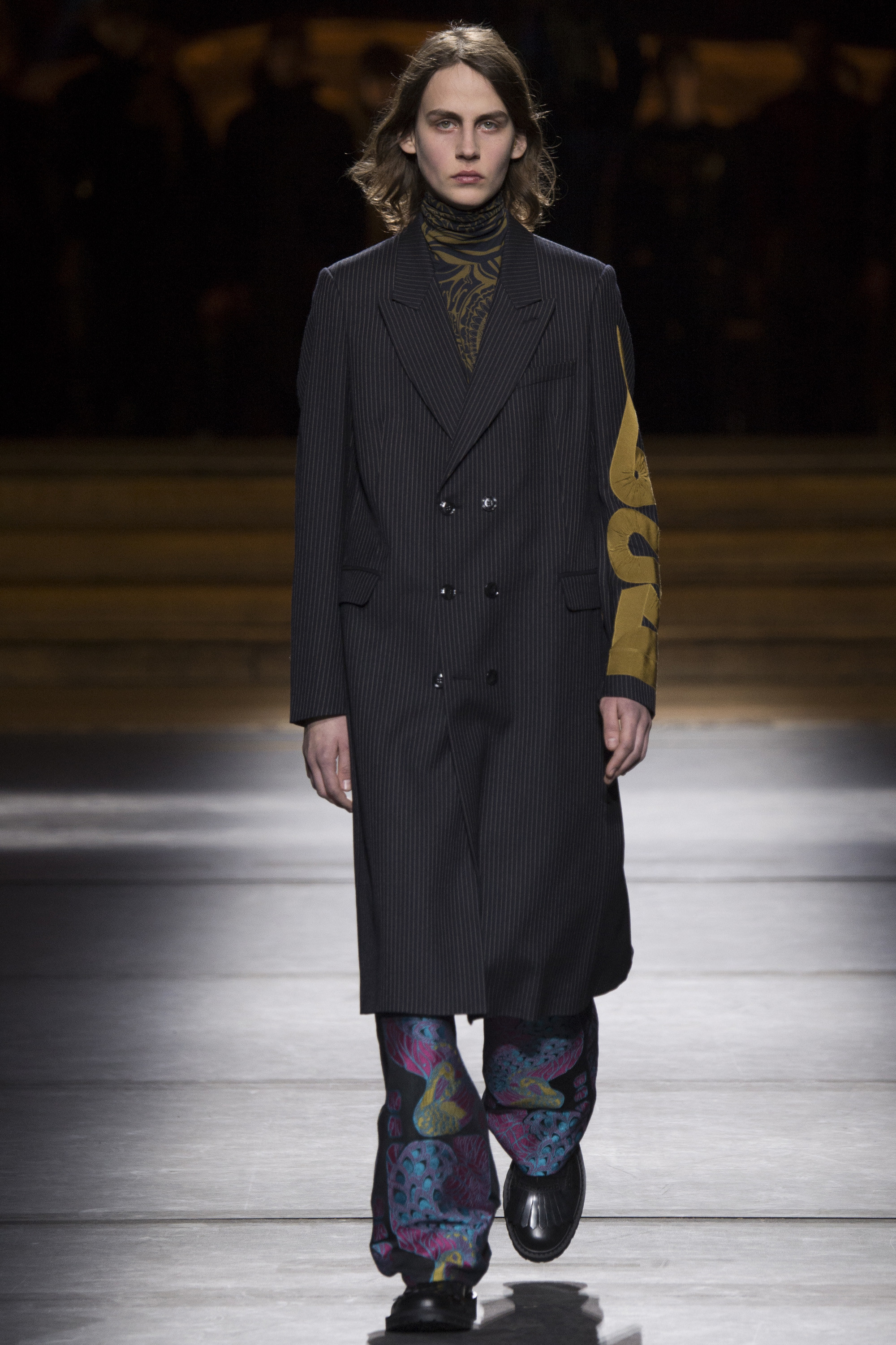 Van Noten left no stone unturned to communicate this gentle soldiers’ nonconformist nature. Crushed velvet bathrobes and boxy pajama suits rounded off the accomplished show.